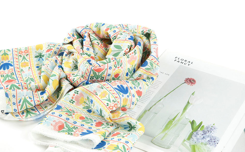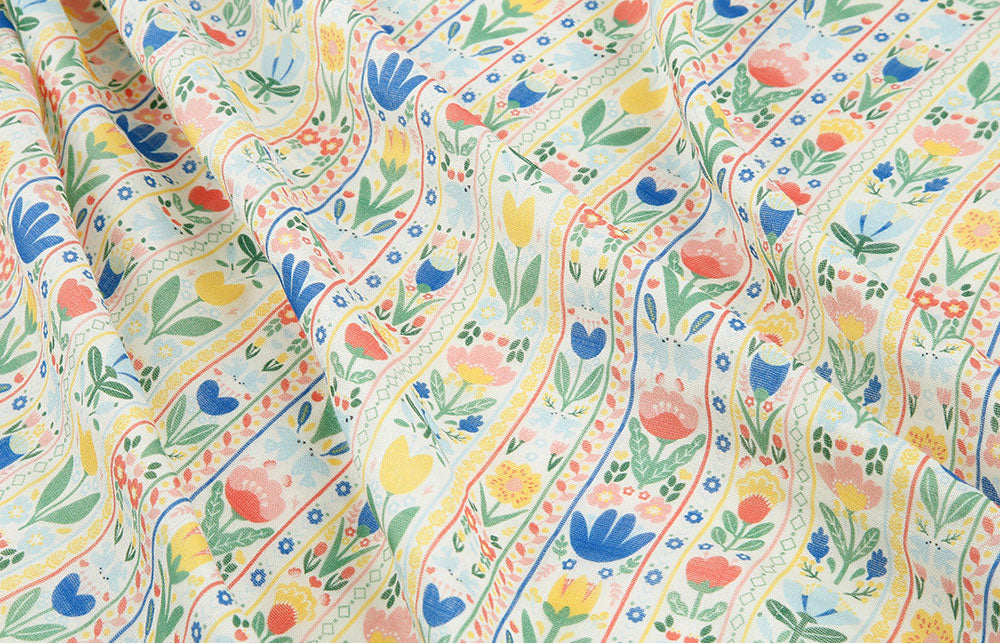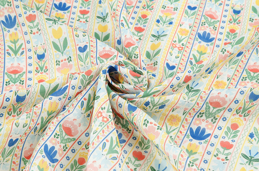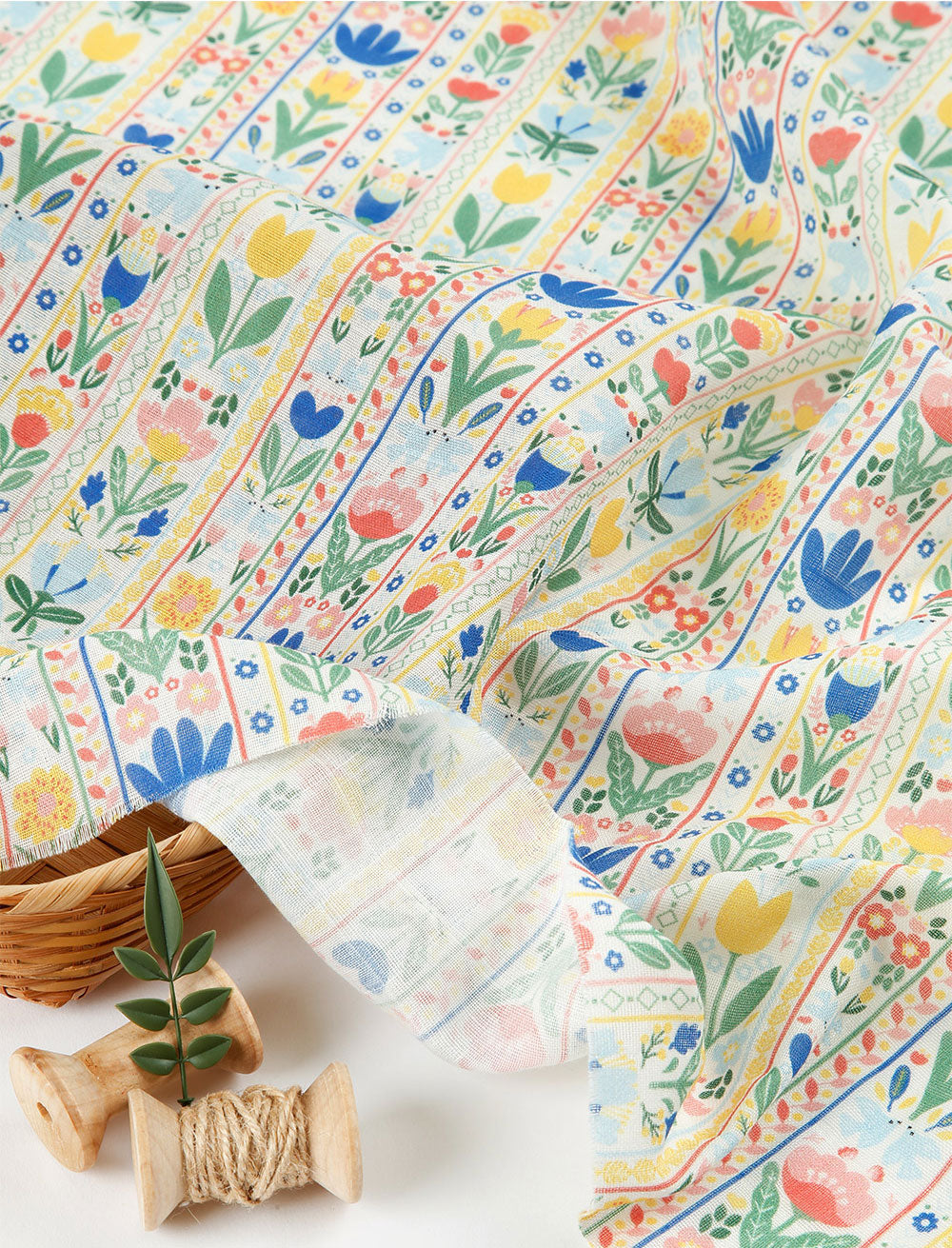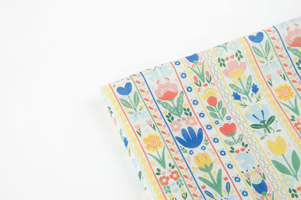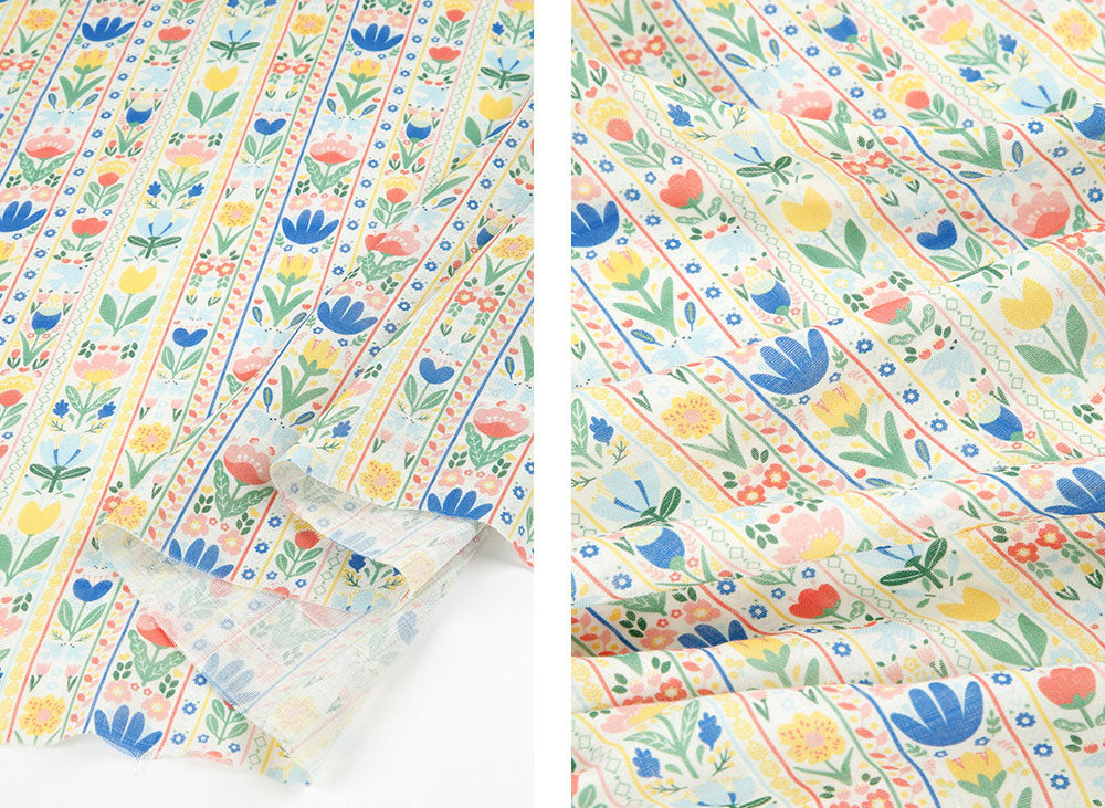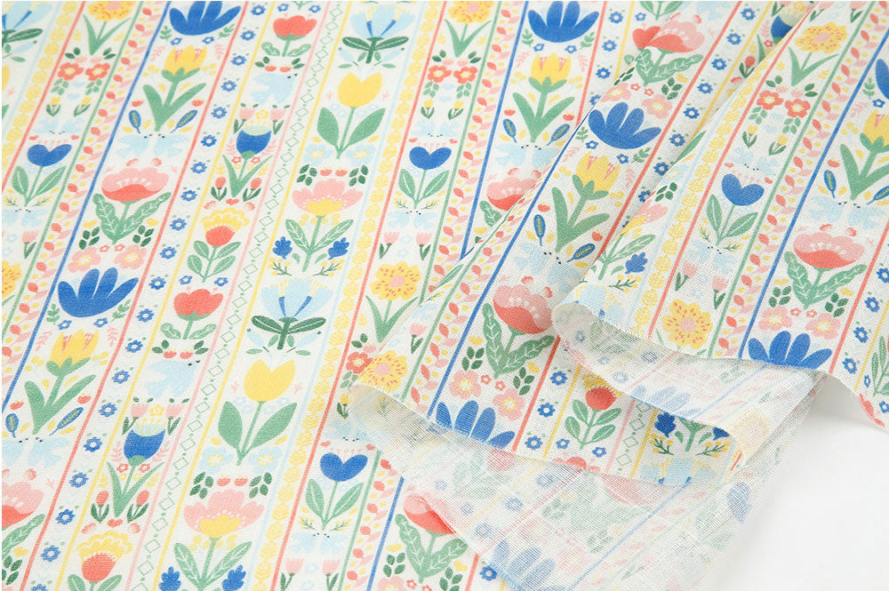 Avantgarde Tulip Flower Stripe Patterned Double Gauze Fabric - Korean Fabric