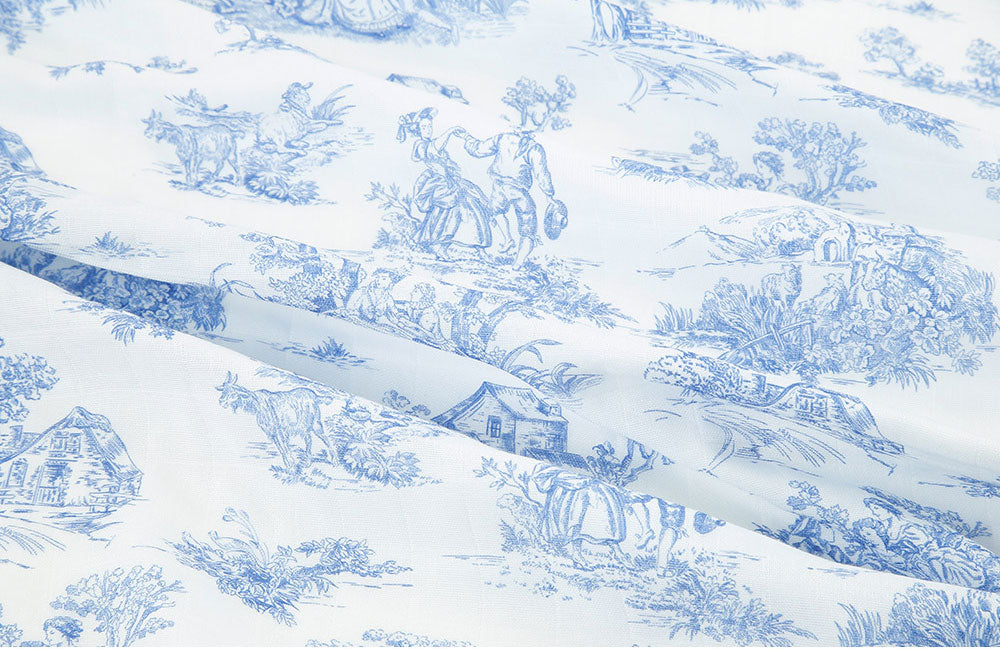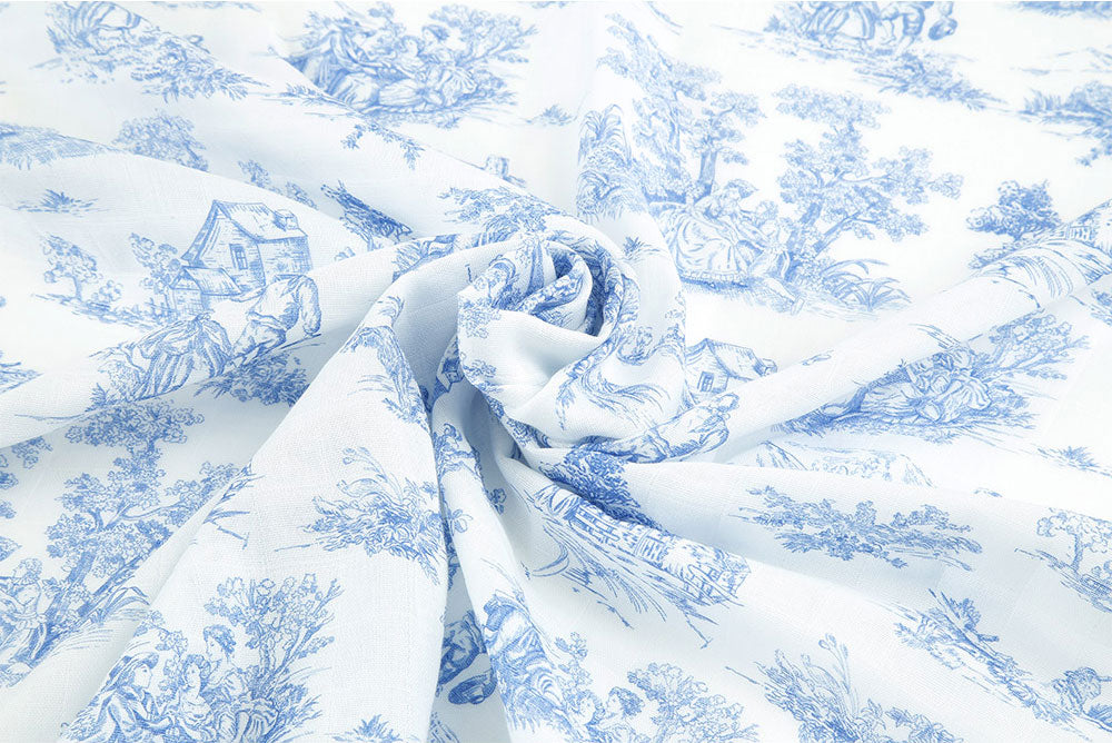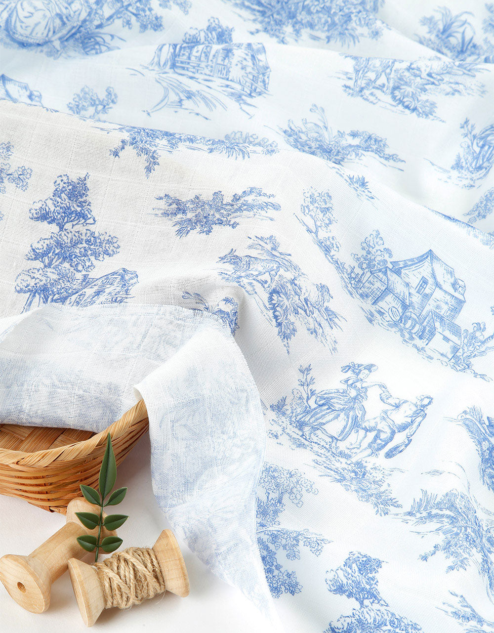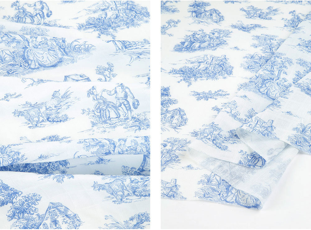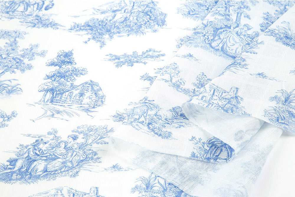 Vintage Toile de Jouy Blois Shateauw Patterned Double Gauze Fabric - Korean Fabric
