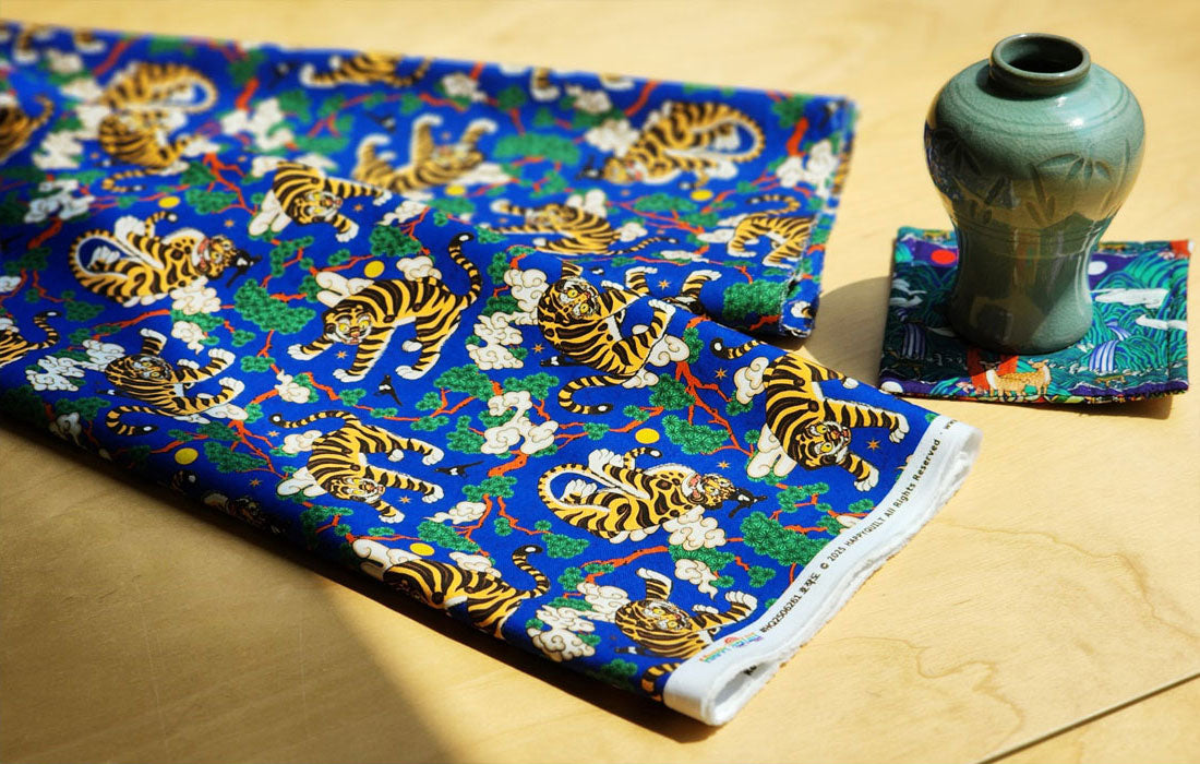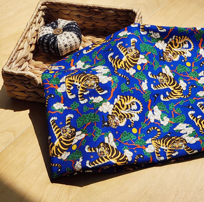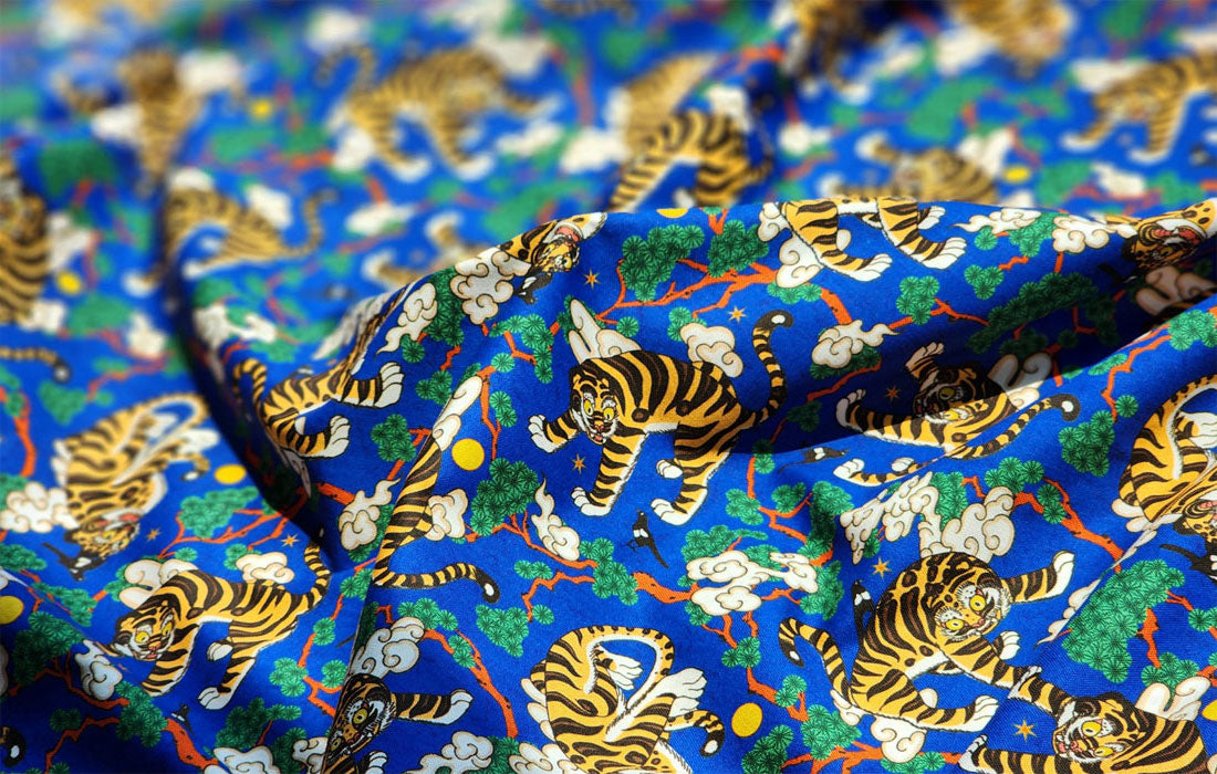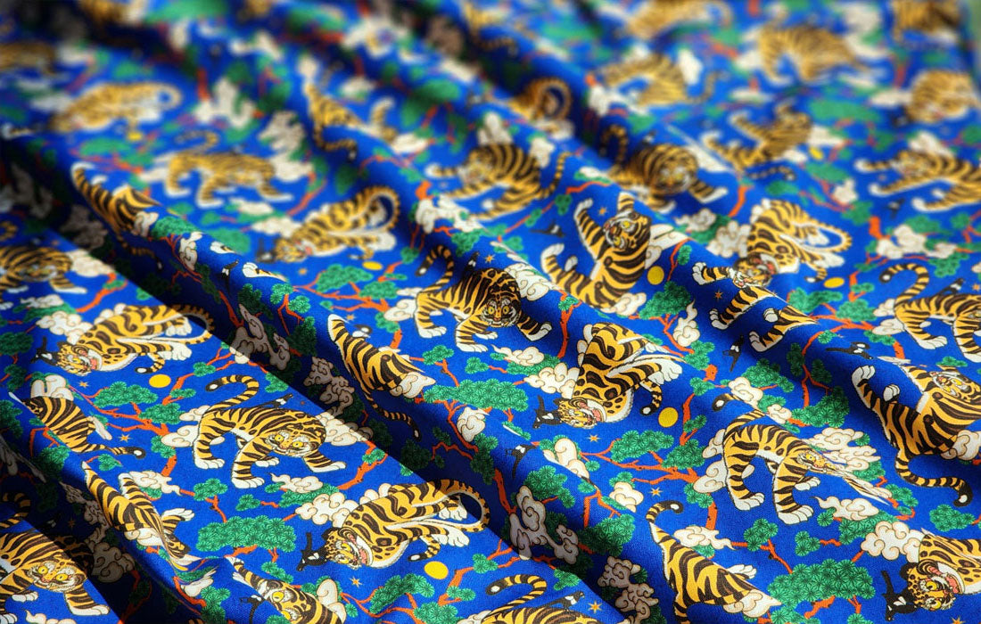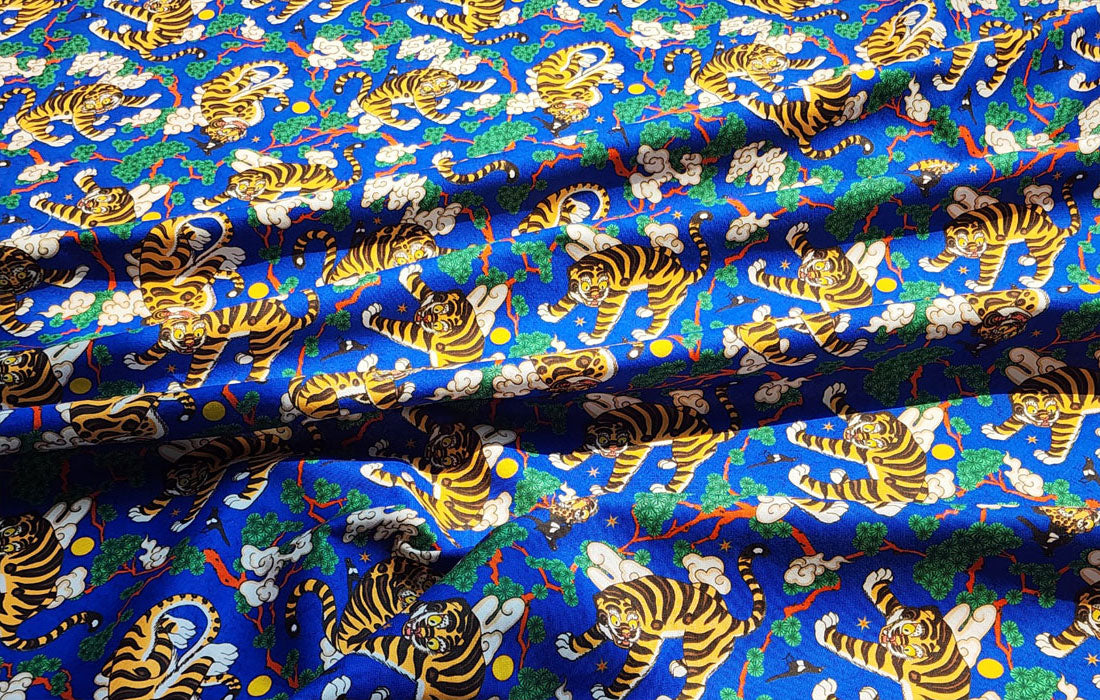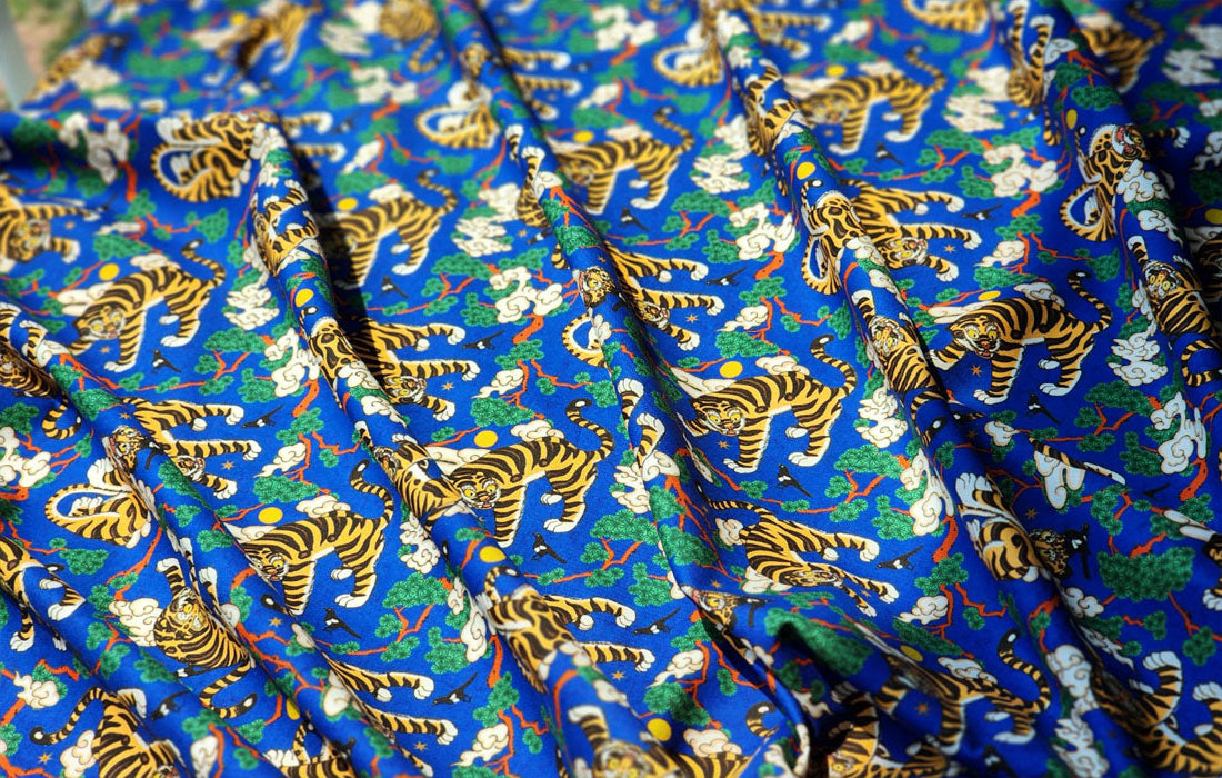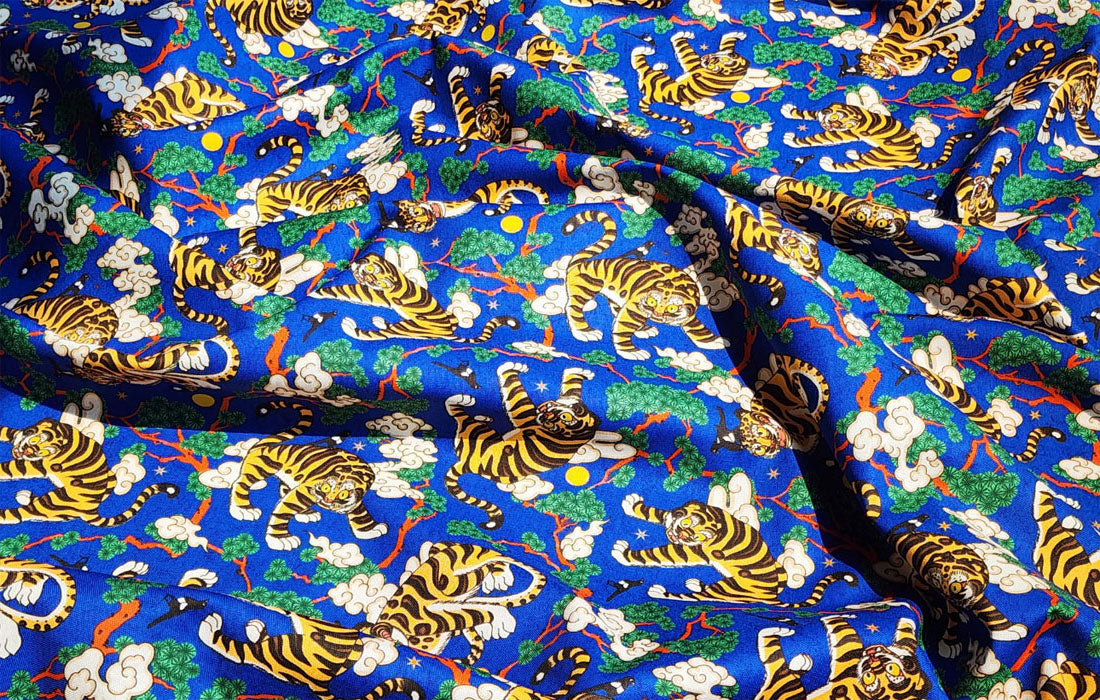 Korean Traditional Folk Painting of Magpie & Derpy Tiger Pattern Fabric Korean Fabric