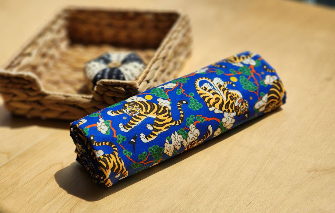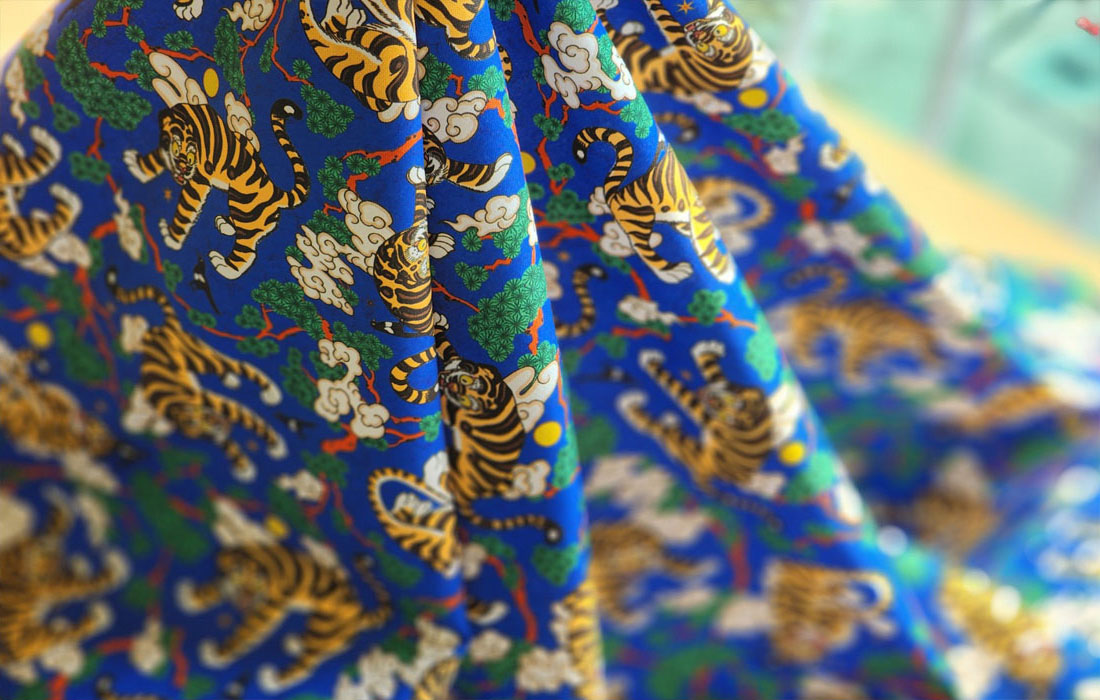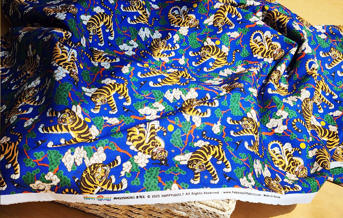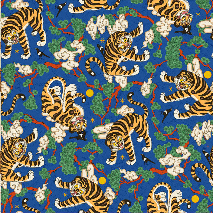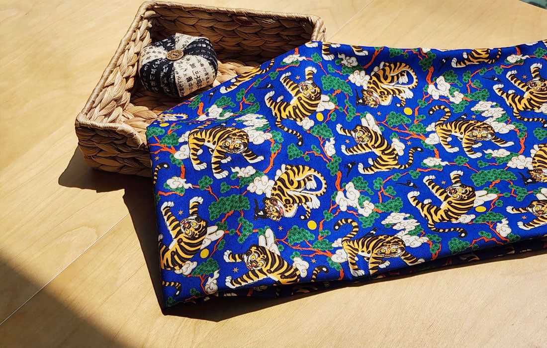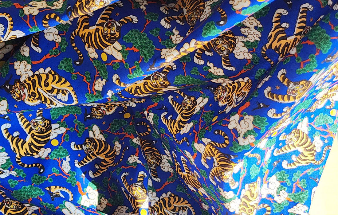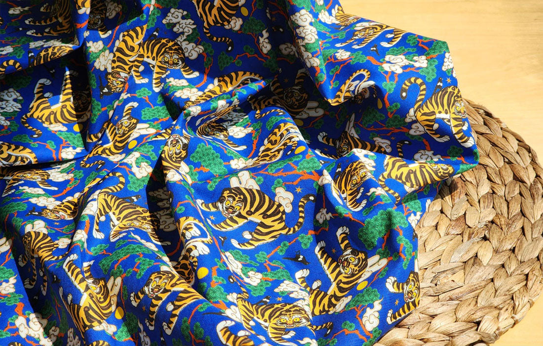 Korean Traditional Folk Painting of Magpie & Derpy Tiger Pattern Fabric Korean Fabric