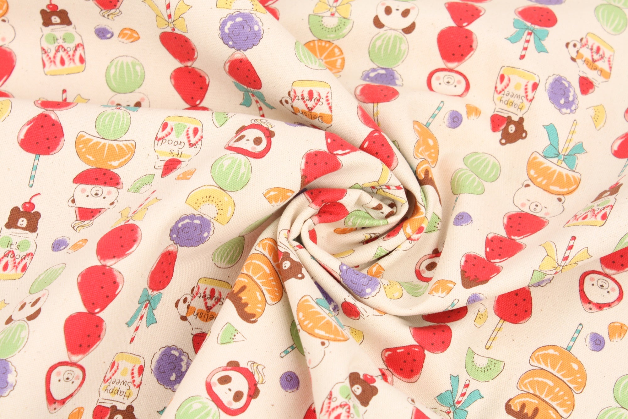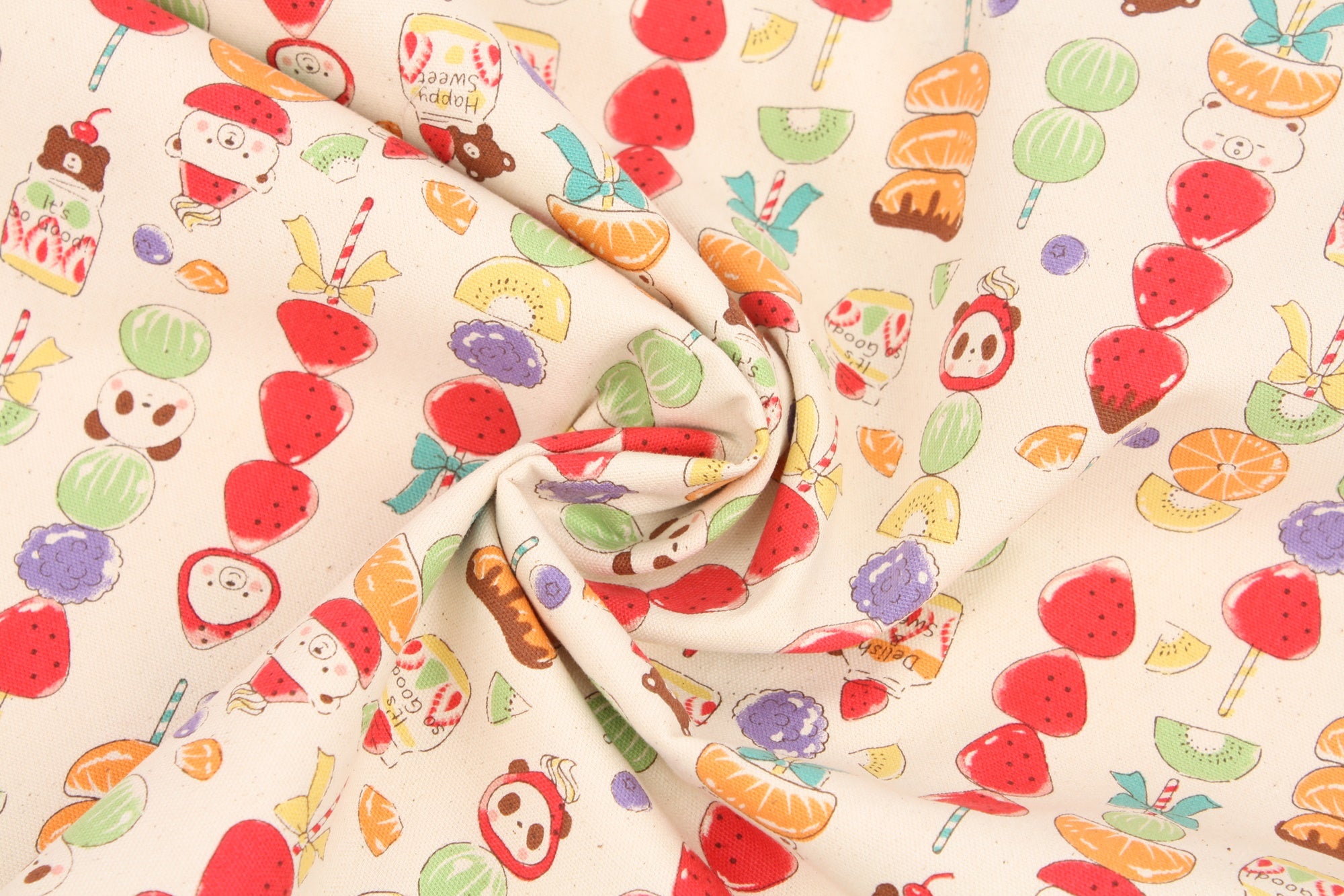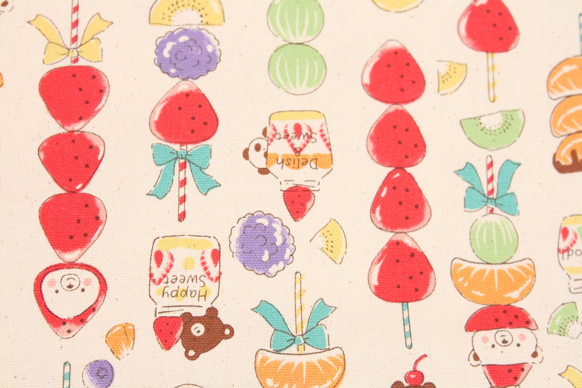 Cute Animals & Sweet Tanghulu Pattern Fabric - Japanese Fabric