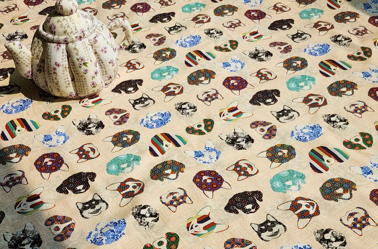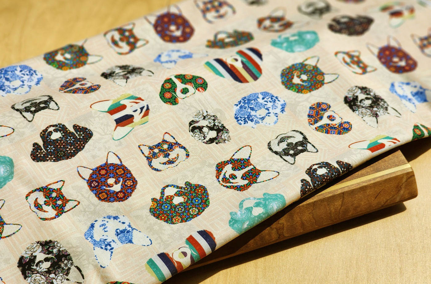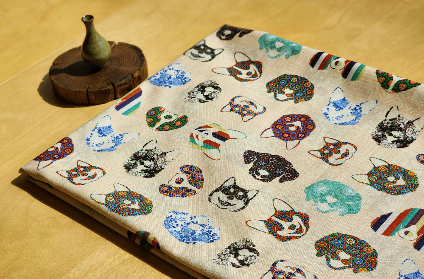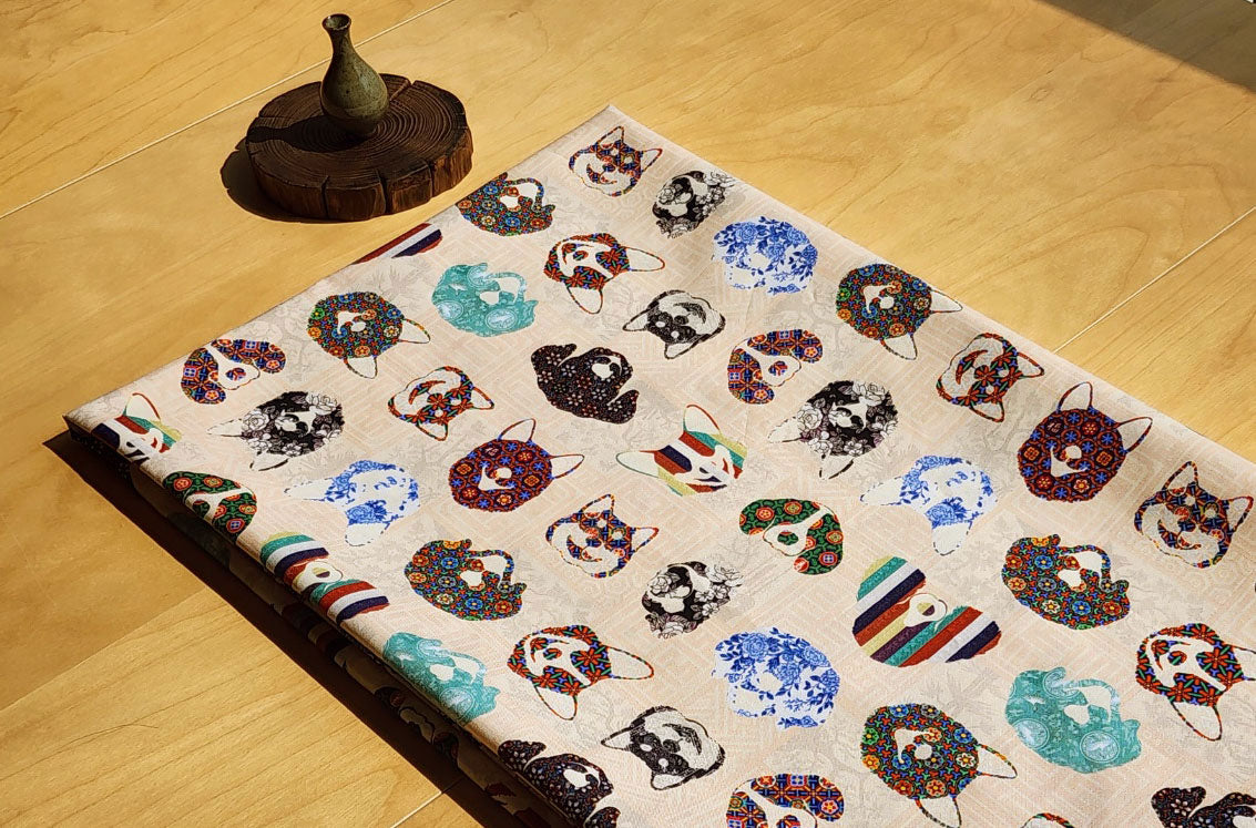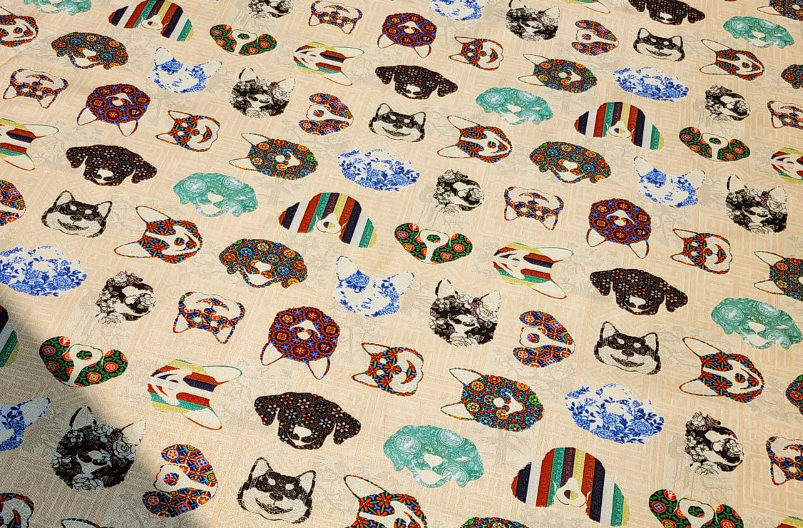 Korean Traditional Collage on Puppy Frame Pattern Fabric Korean Fabric