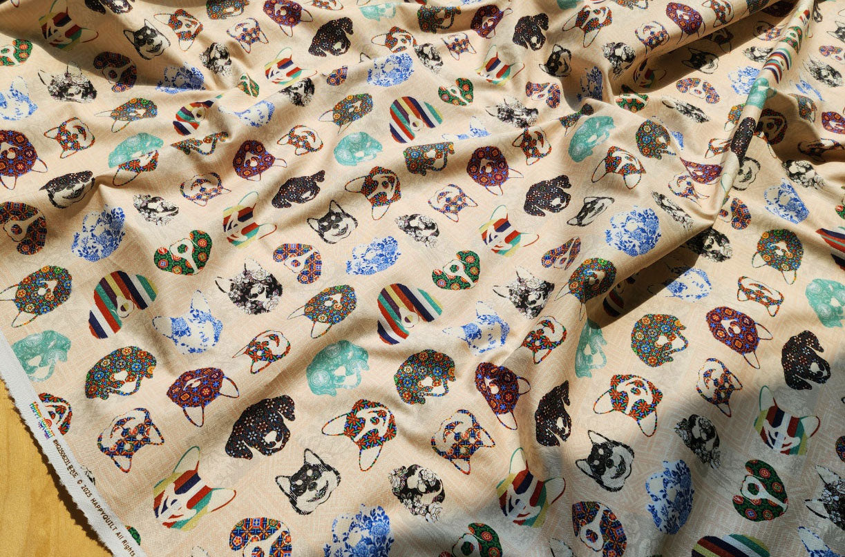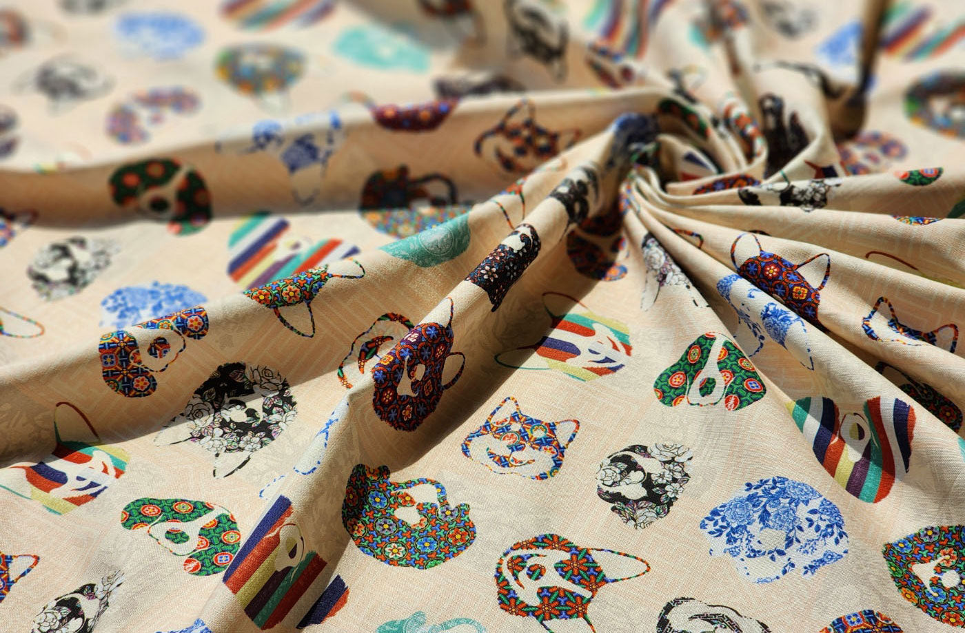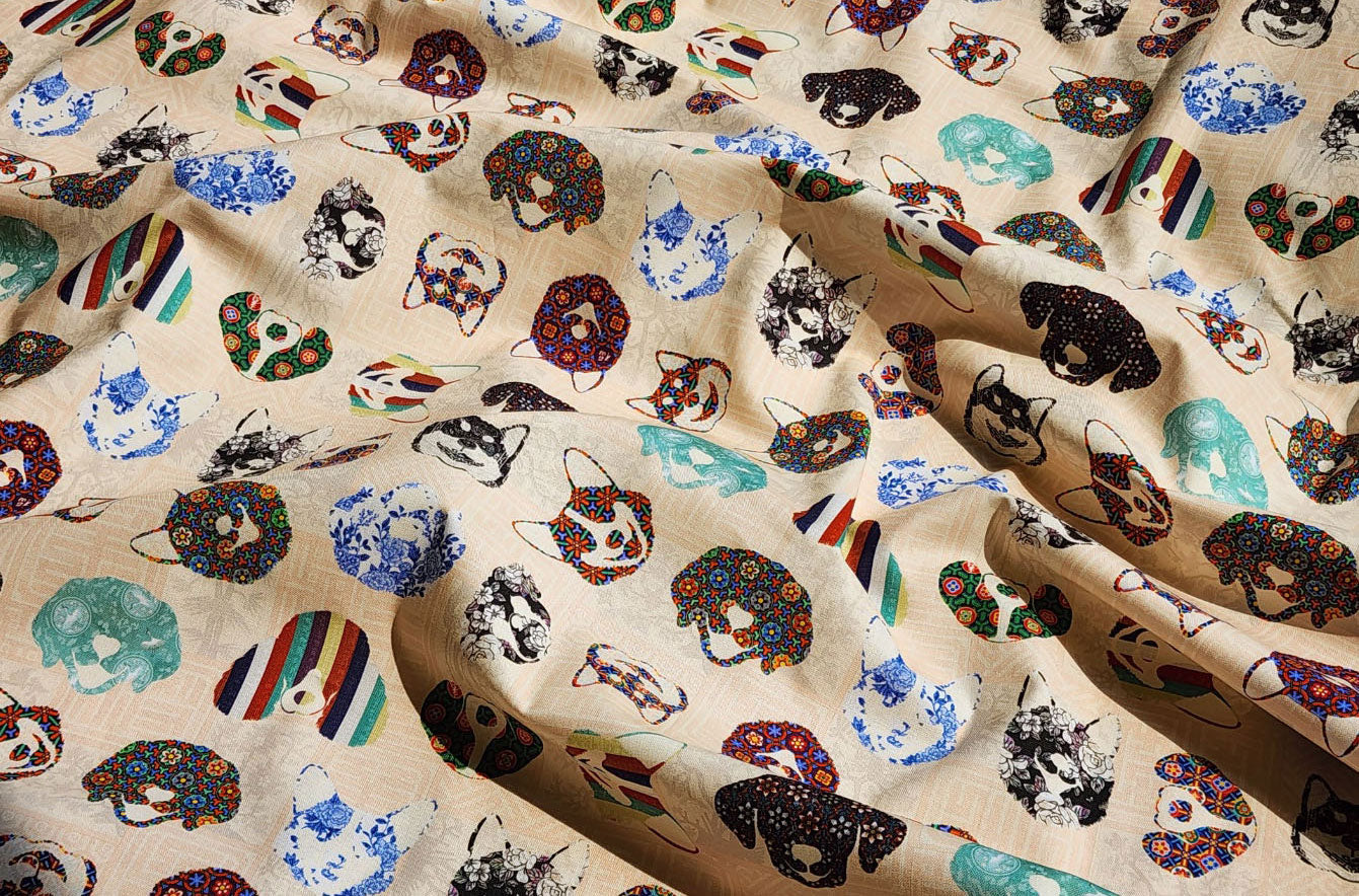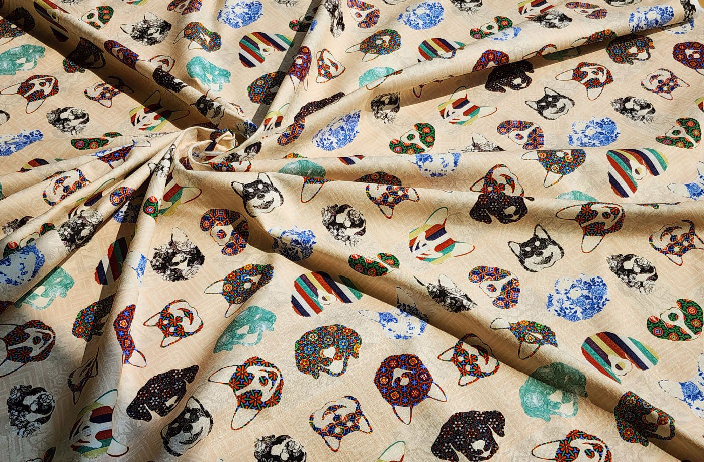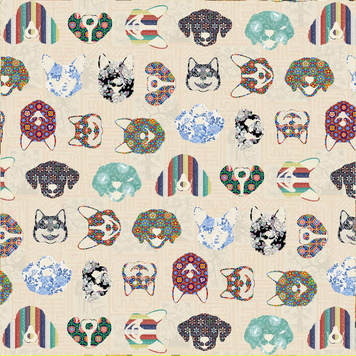 Korean Traditional Collage on Puppy Frame Pattern Fabric Korean Fabric