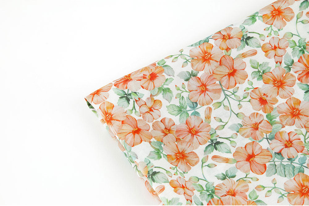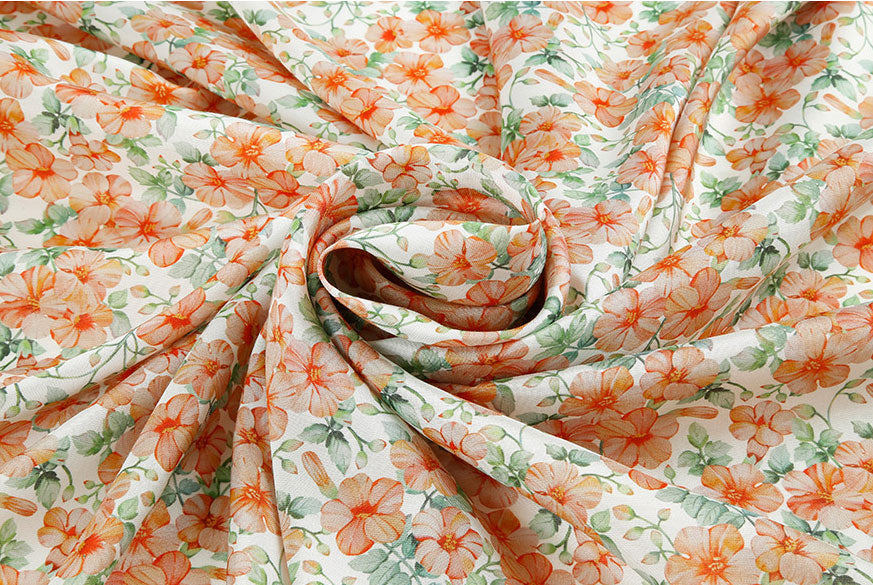 Apricot Flower Patterned Eco Friendly Mulberry Pulp Rayon Fabric made in Korea by the Yard