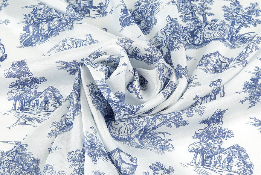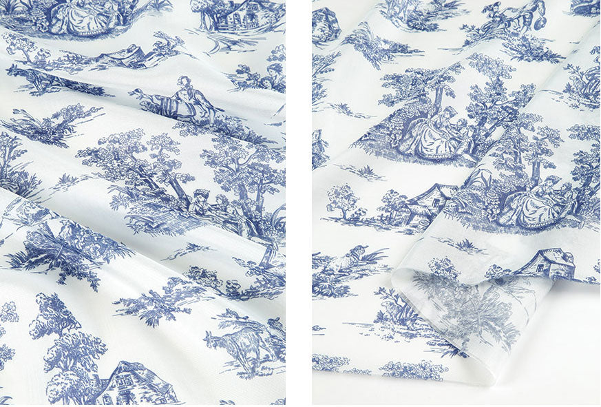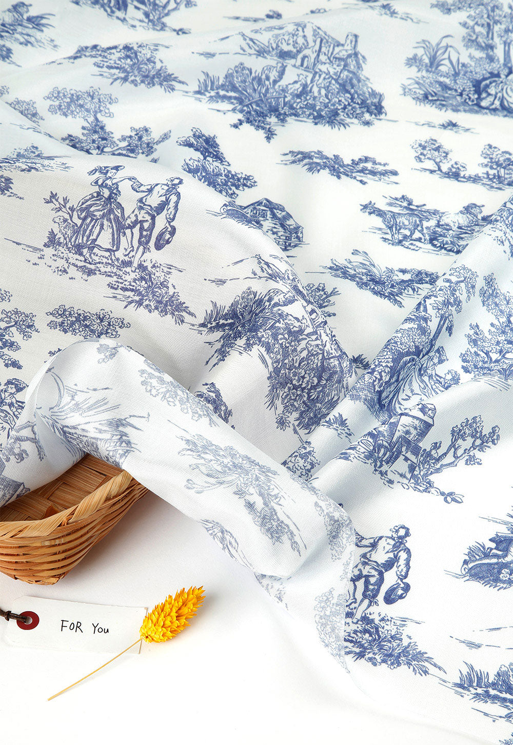Vintage Toiled de Jouy Blois Shateauw Patterned Eco Friendly Mulberry Pulp Rayon Fabric made in Korea by the Yard