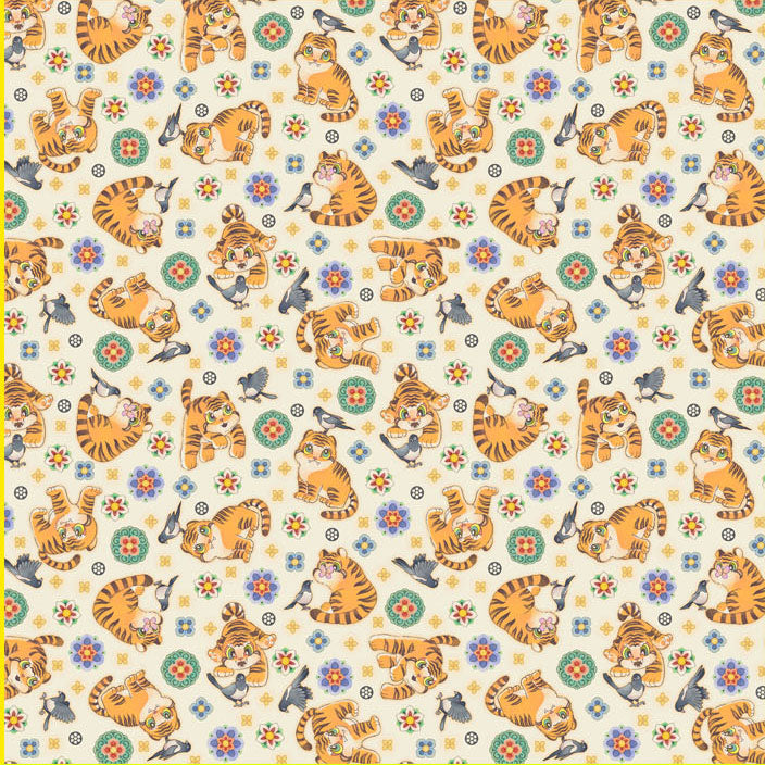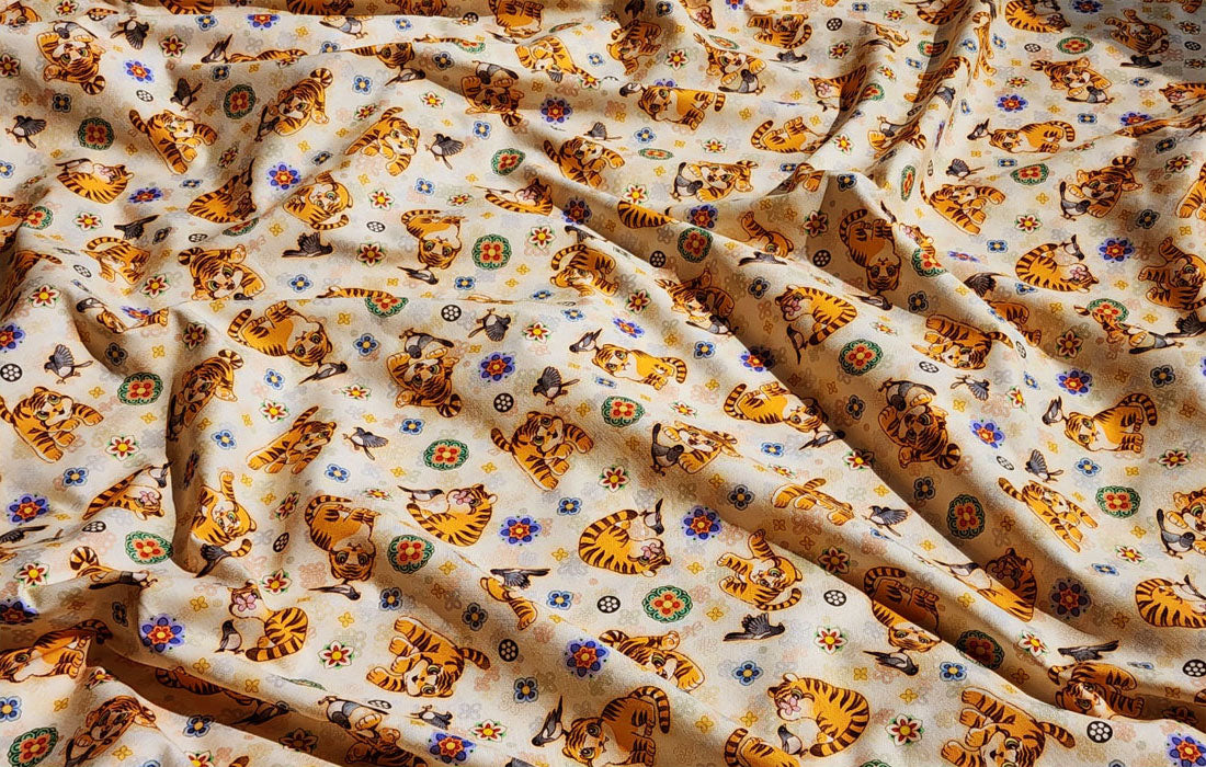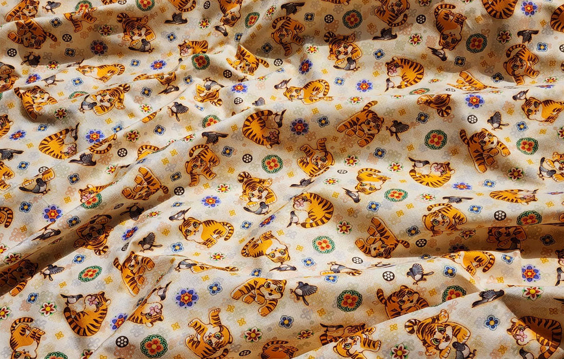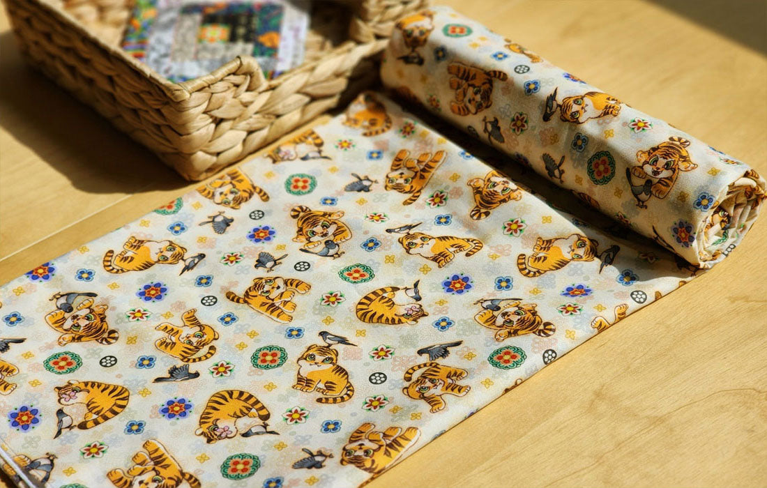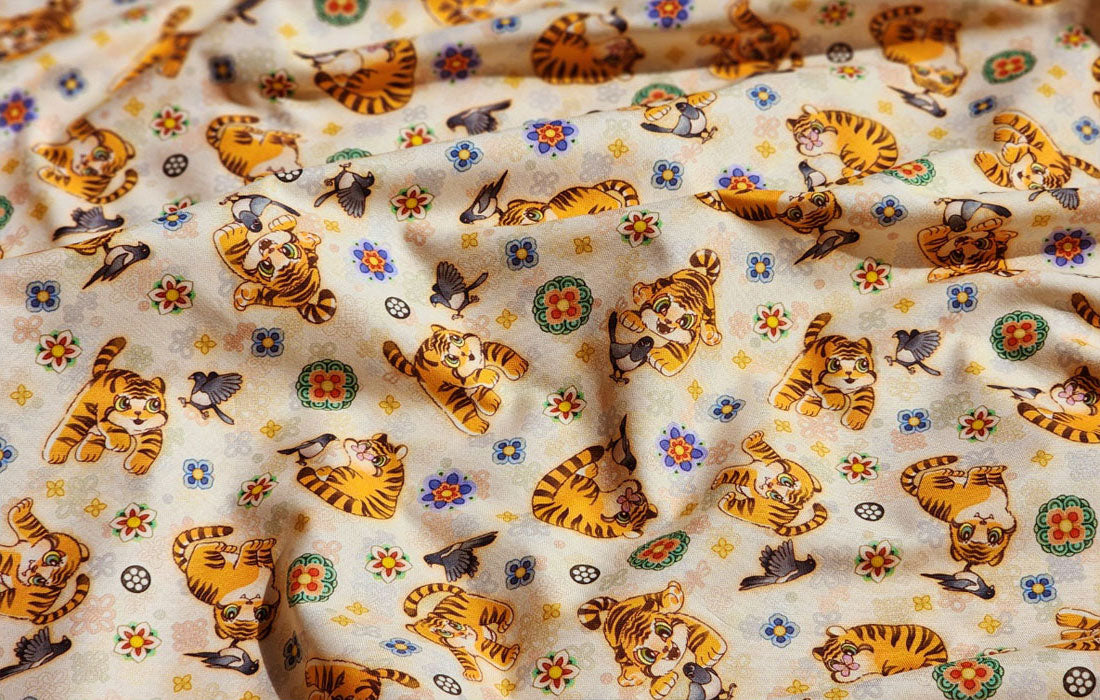 Korean Traditional Cute Baby Magpie & Derpy Tiger Pattern Fabric Korean Fabric