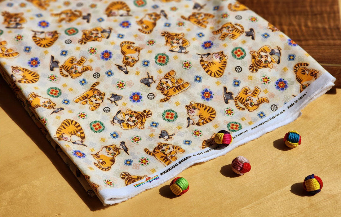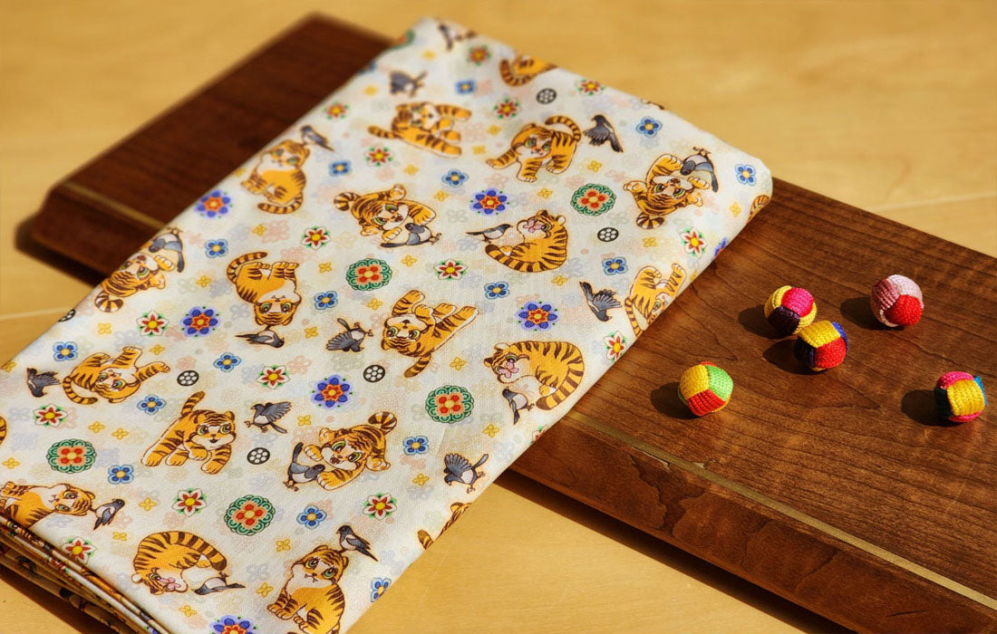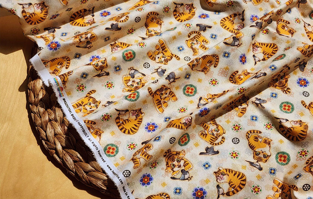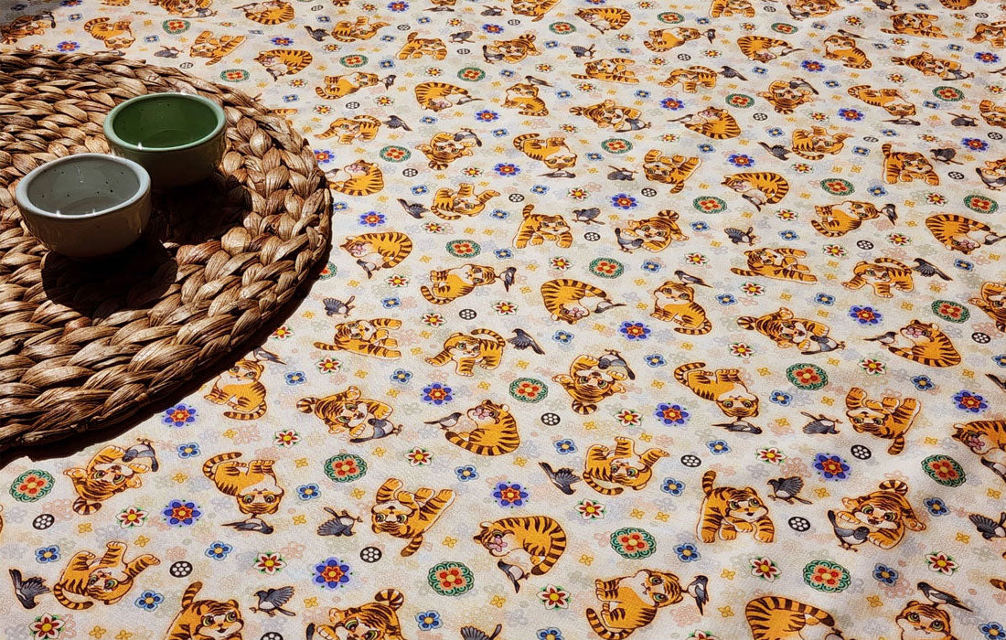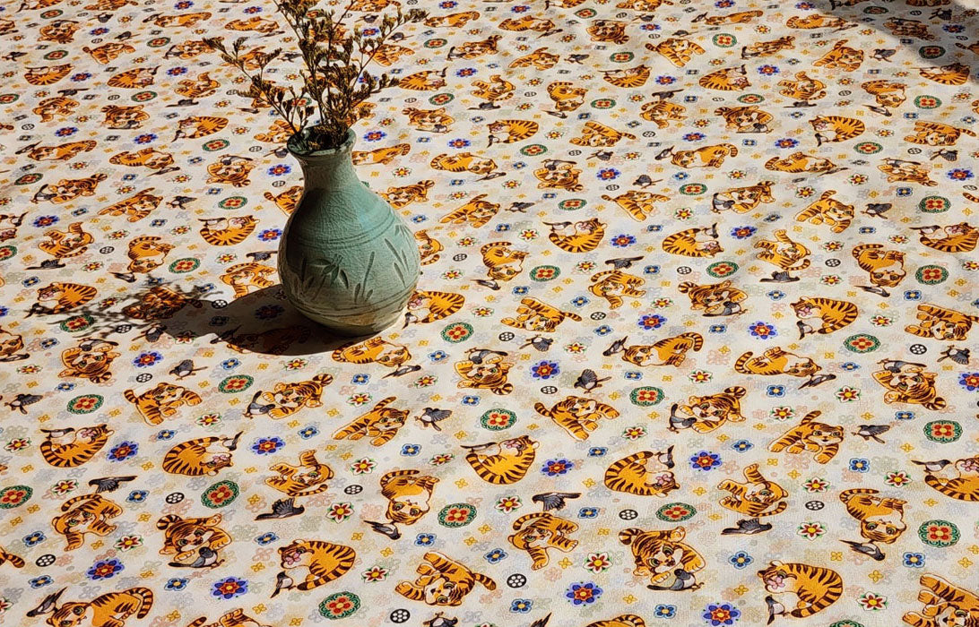 Korean Traditional Cute Baby Magpie & Derpy Tiger Pattern Fabric Korean Fabric