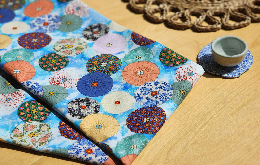 Korean Traditional Patterned Umbrella Cotton Fabric made in Korea by the Half Yard