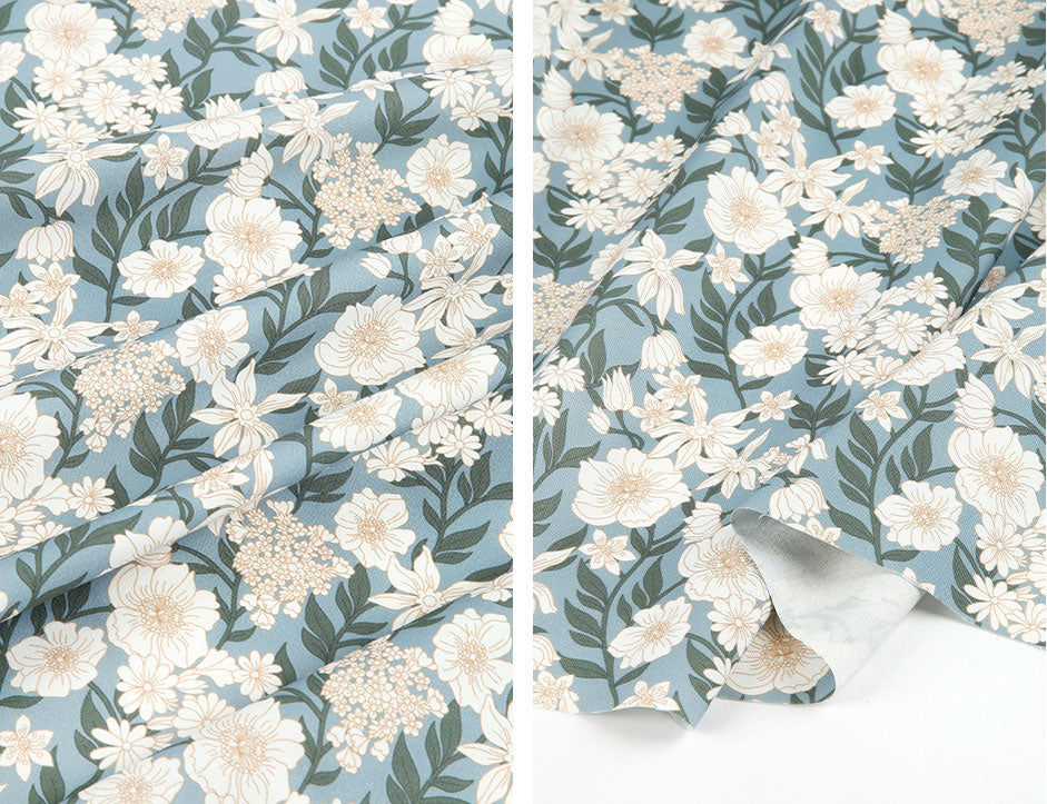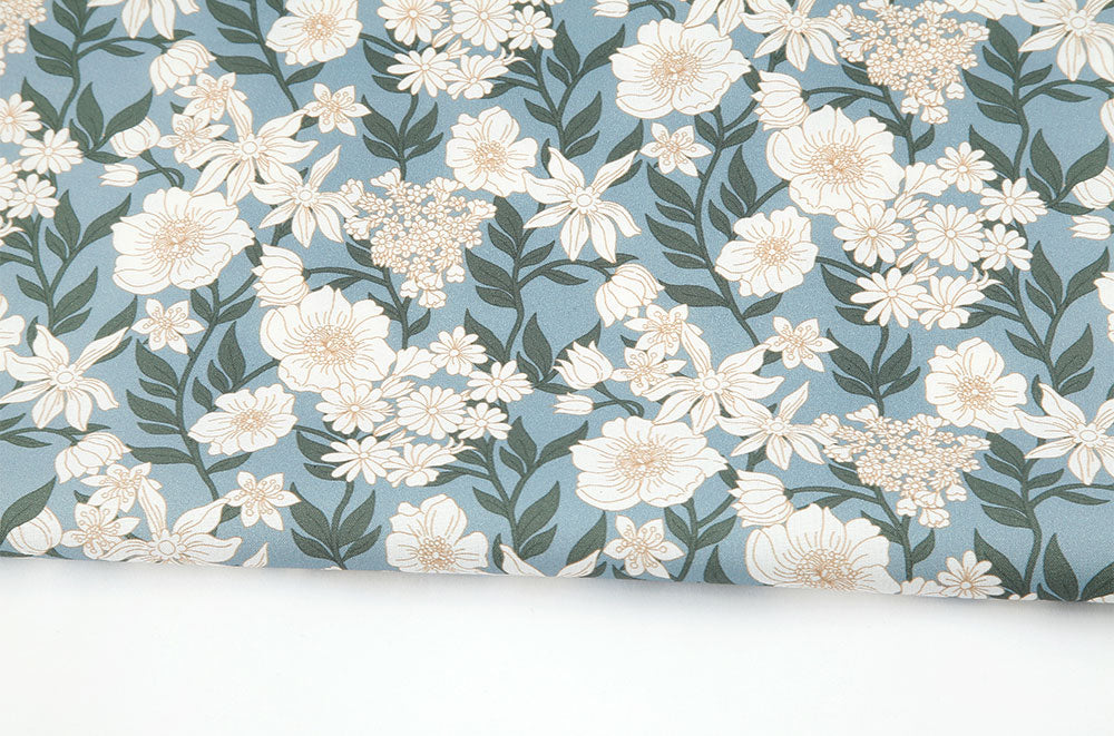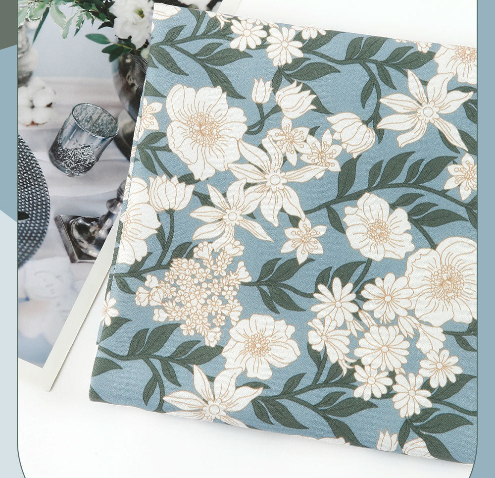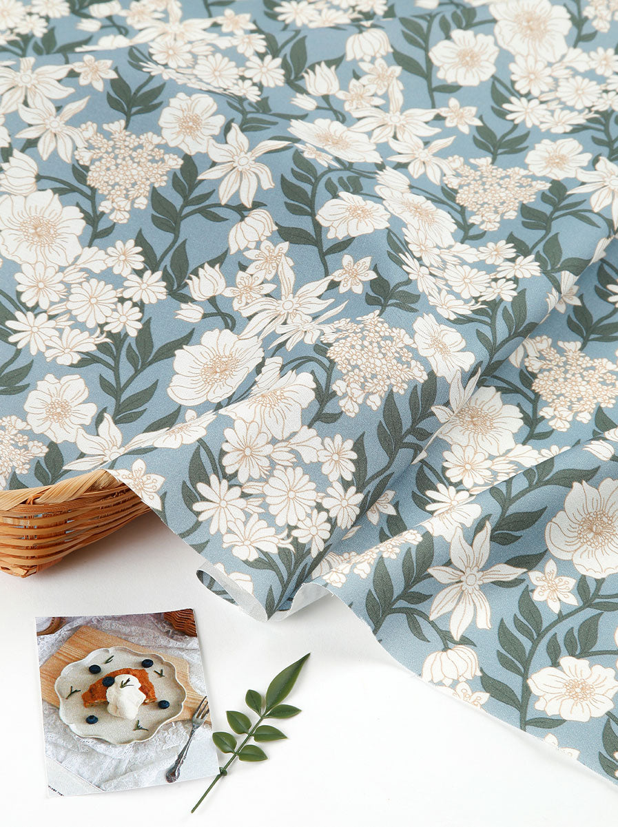 White Peony Lily Hydrangea Patterned fabric - Korean Fabric