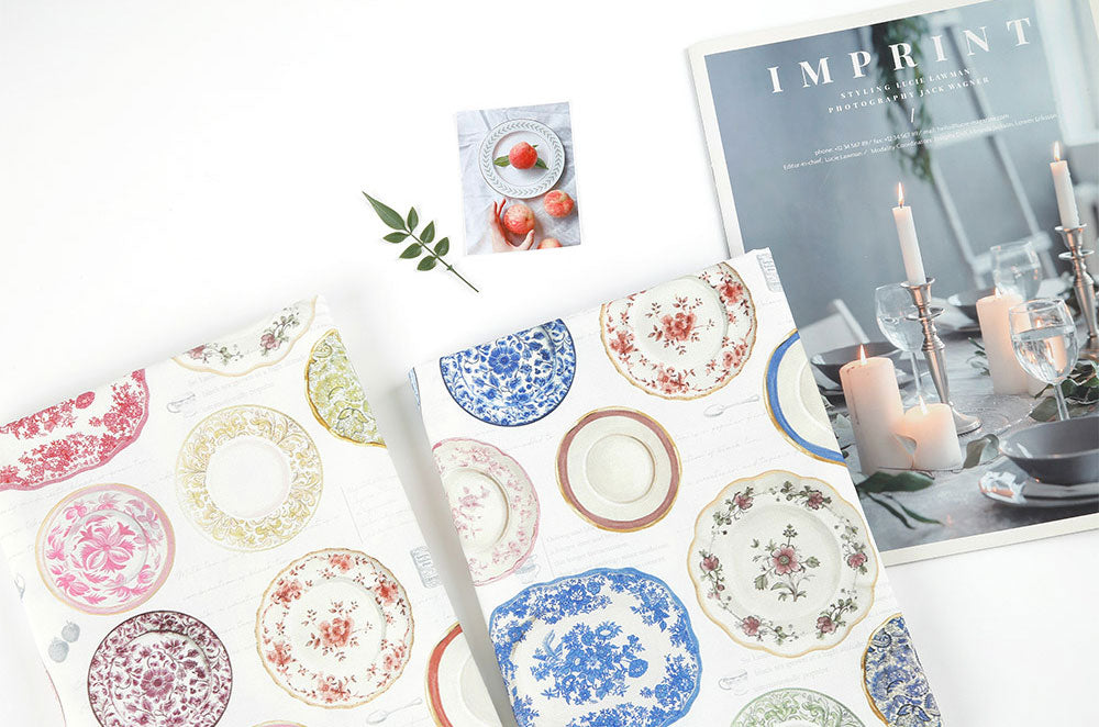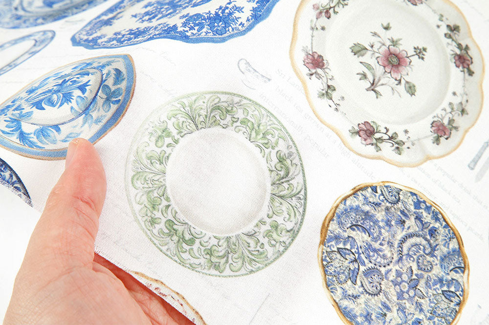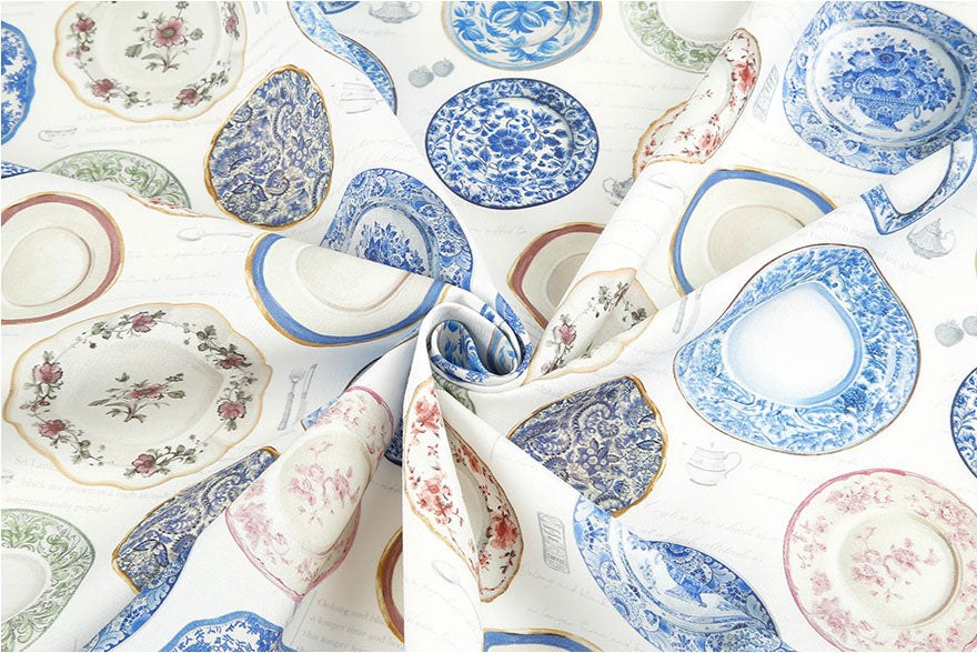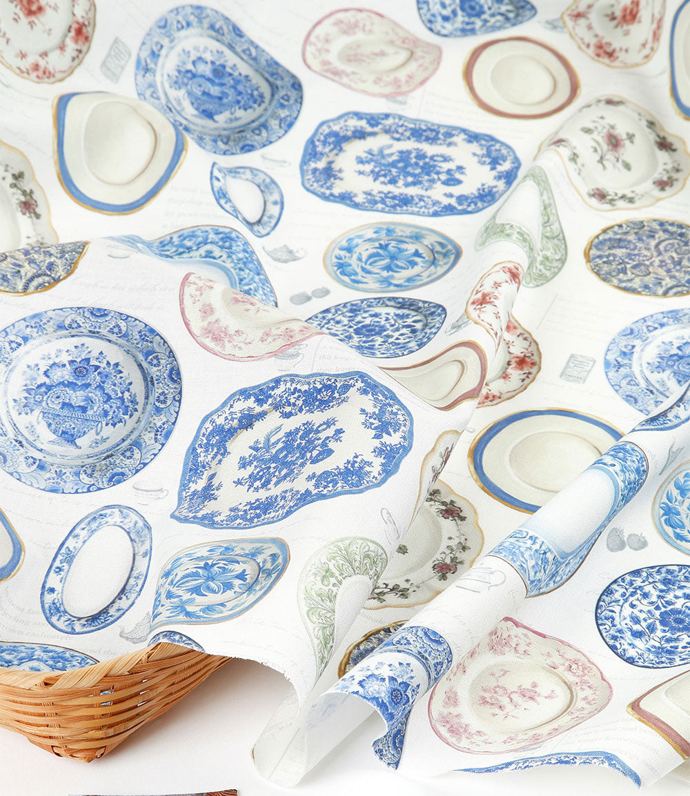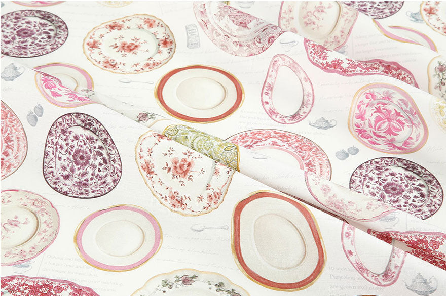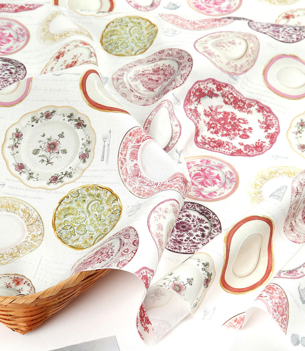 Vintage Plate Retro Designed Dishes Patterned fabric - Korean Fabric