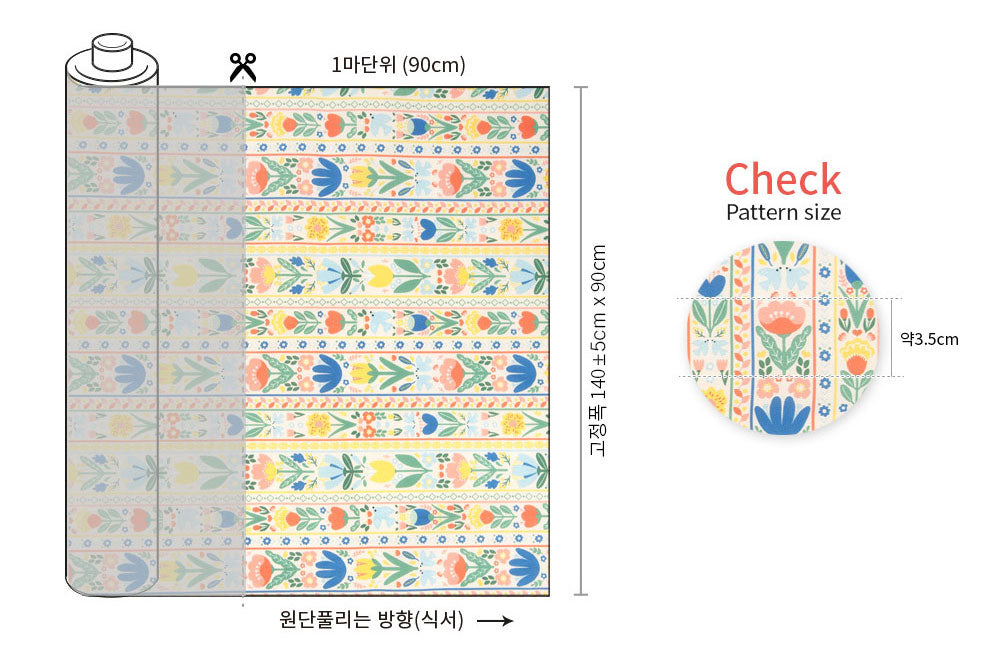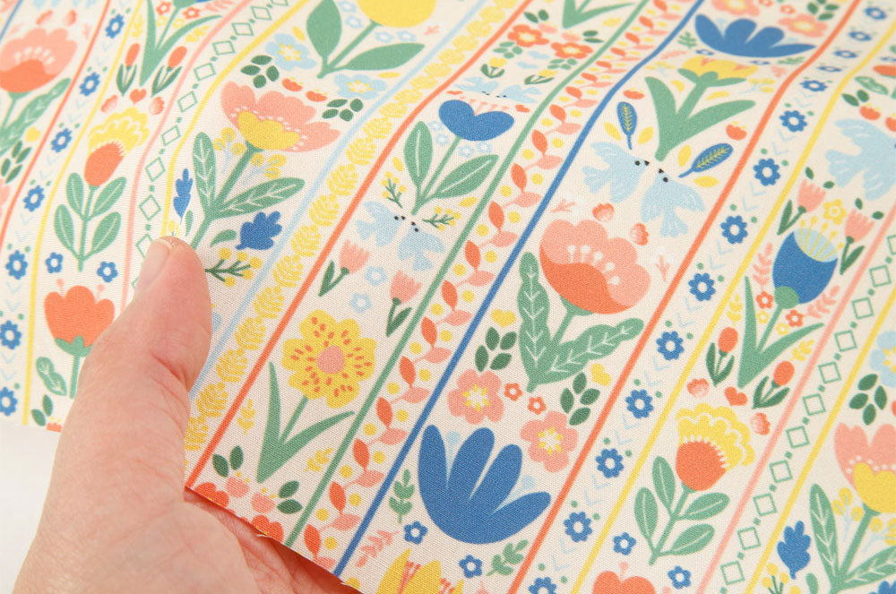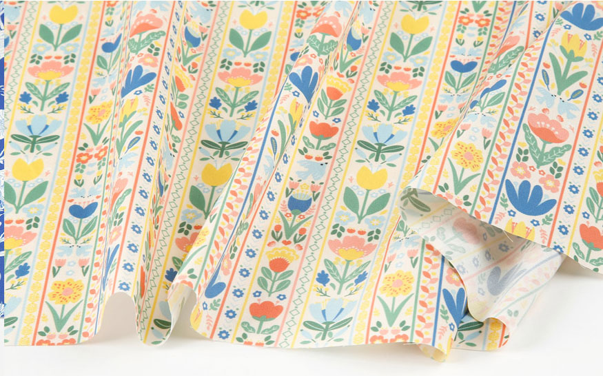 Avantgarde Tulip Flower Border Patterned fabric - Korean Fabric