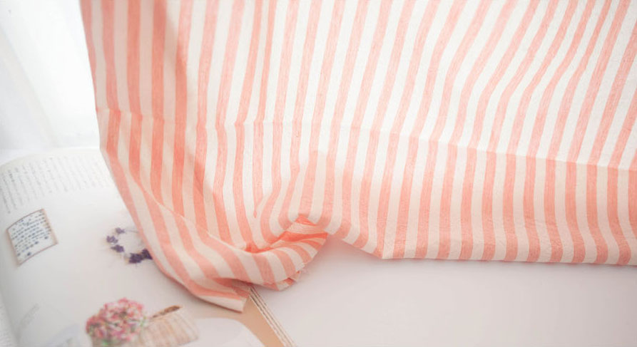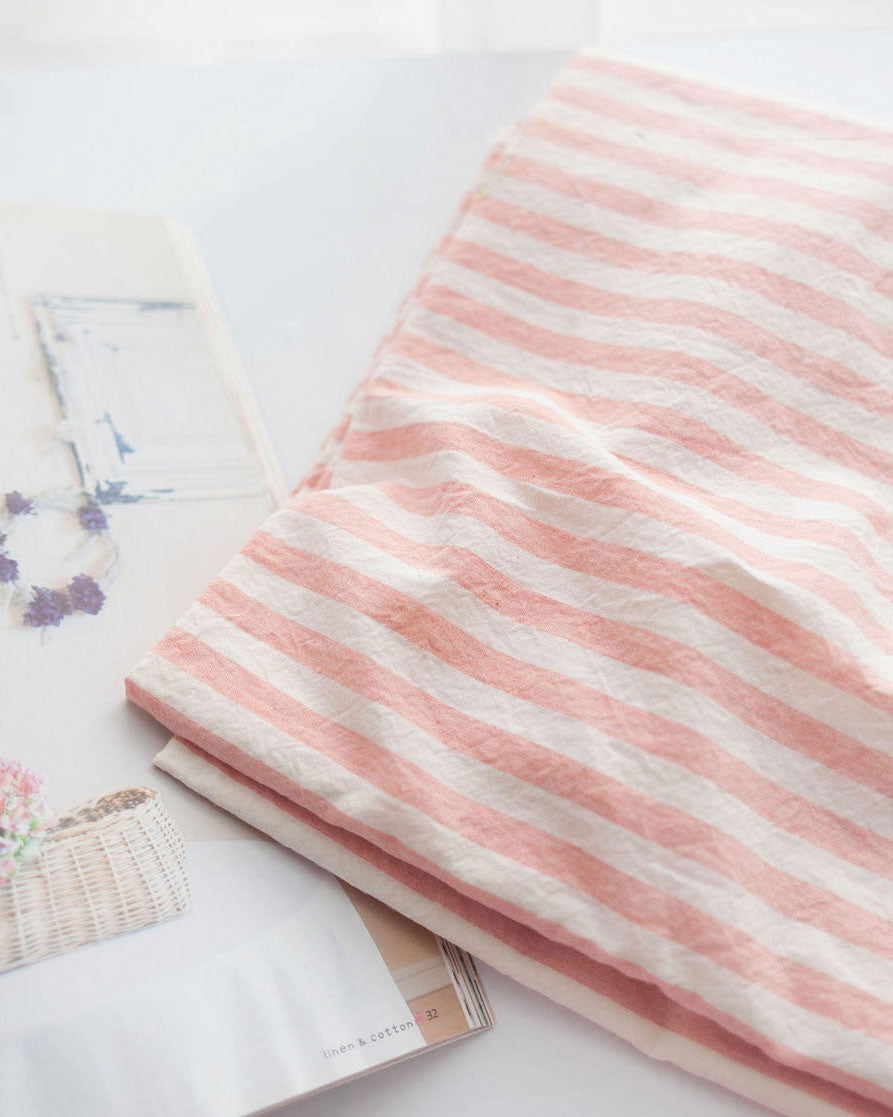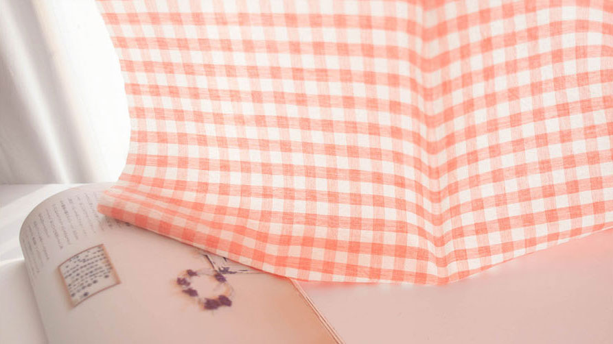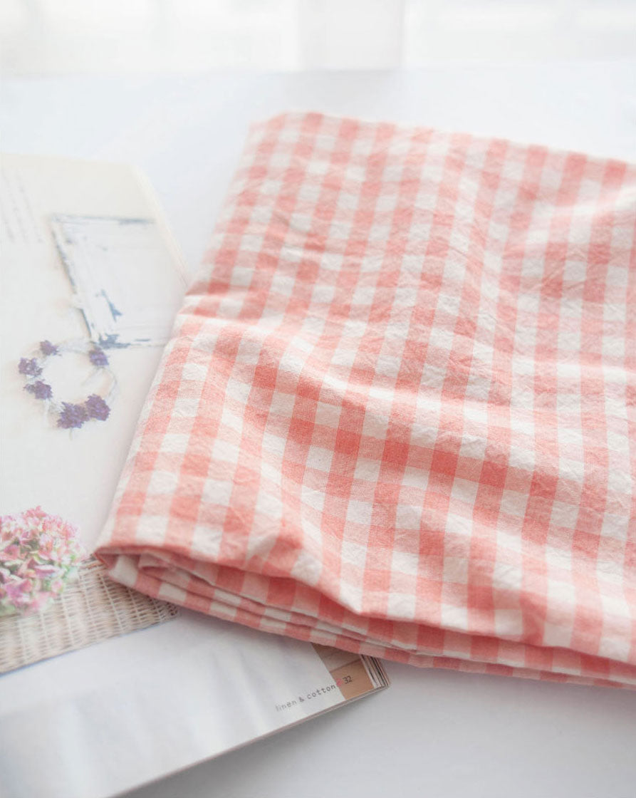 Peach Pink Gingham Check Stripe Solid Patterned Biowashed Fabric printed in Korea