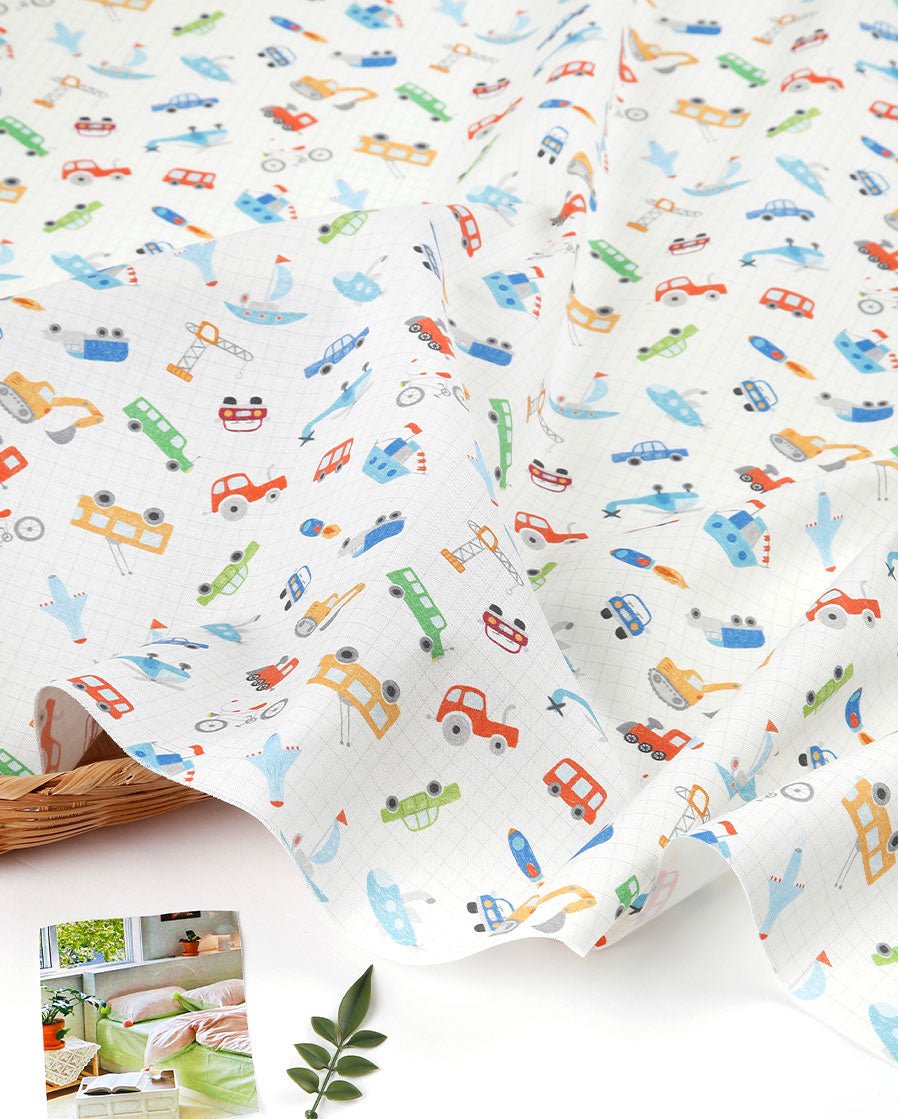Cute Little Vehicles Patterned Fabric- Korean Fabric