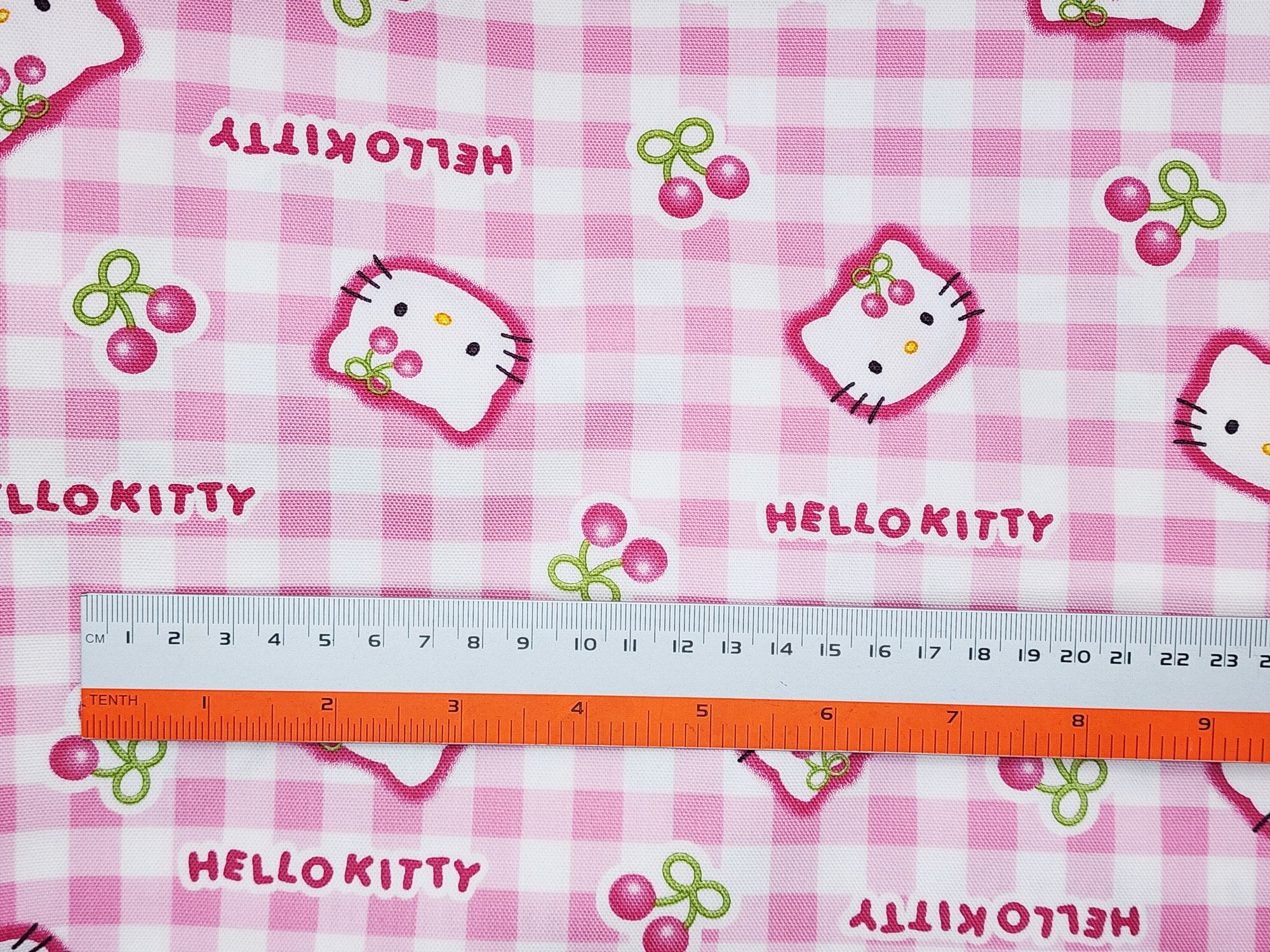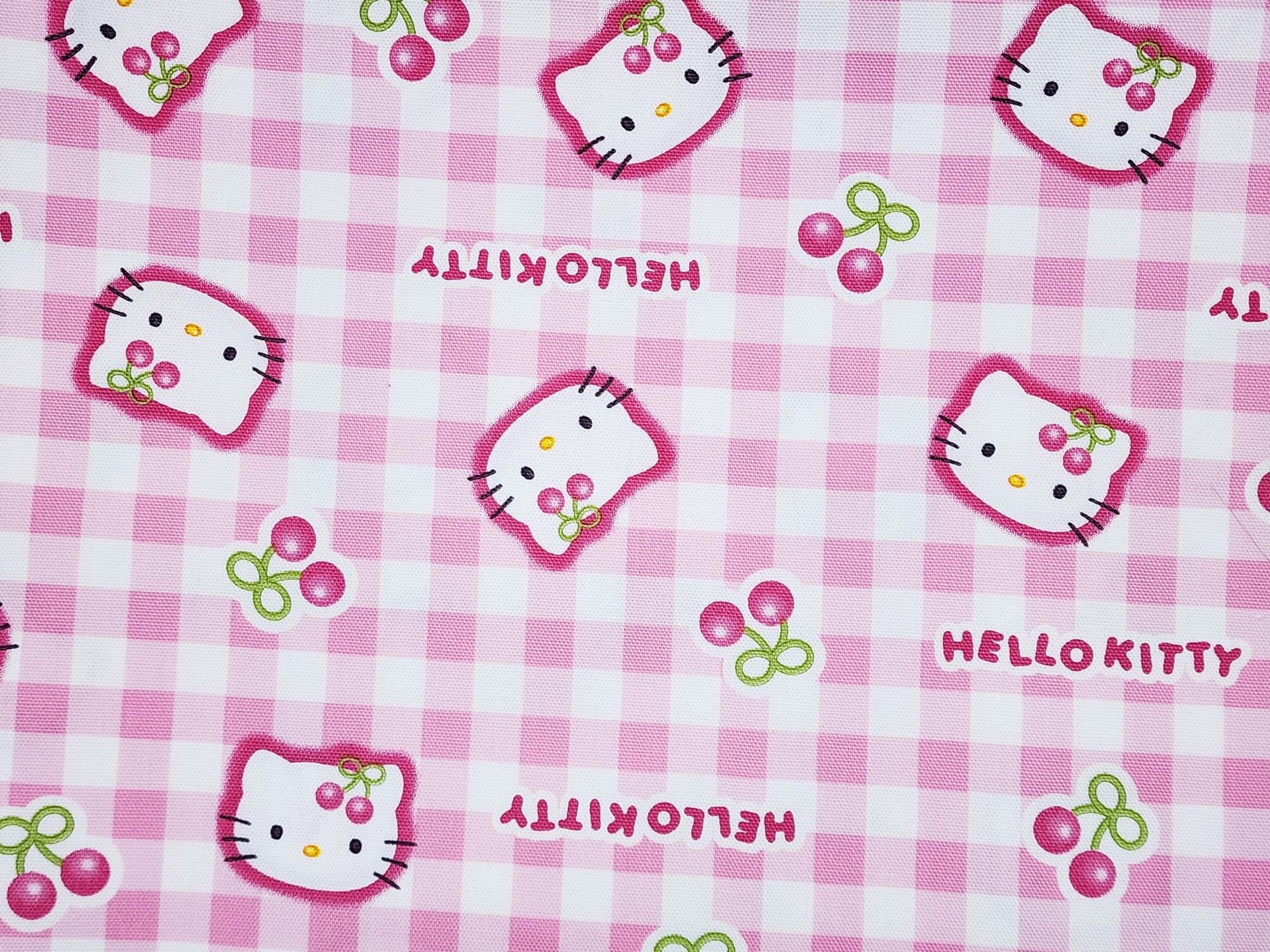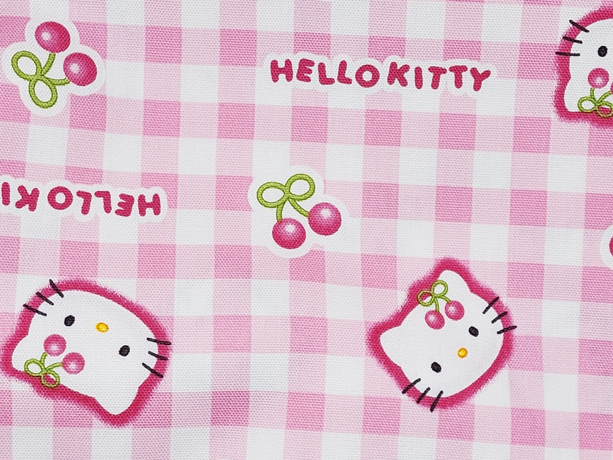Sanrio Character Hello Kitty Check Cherry Oxford - Japanese Fabric
