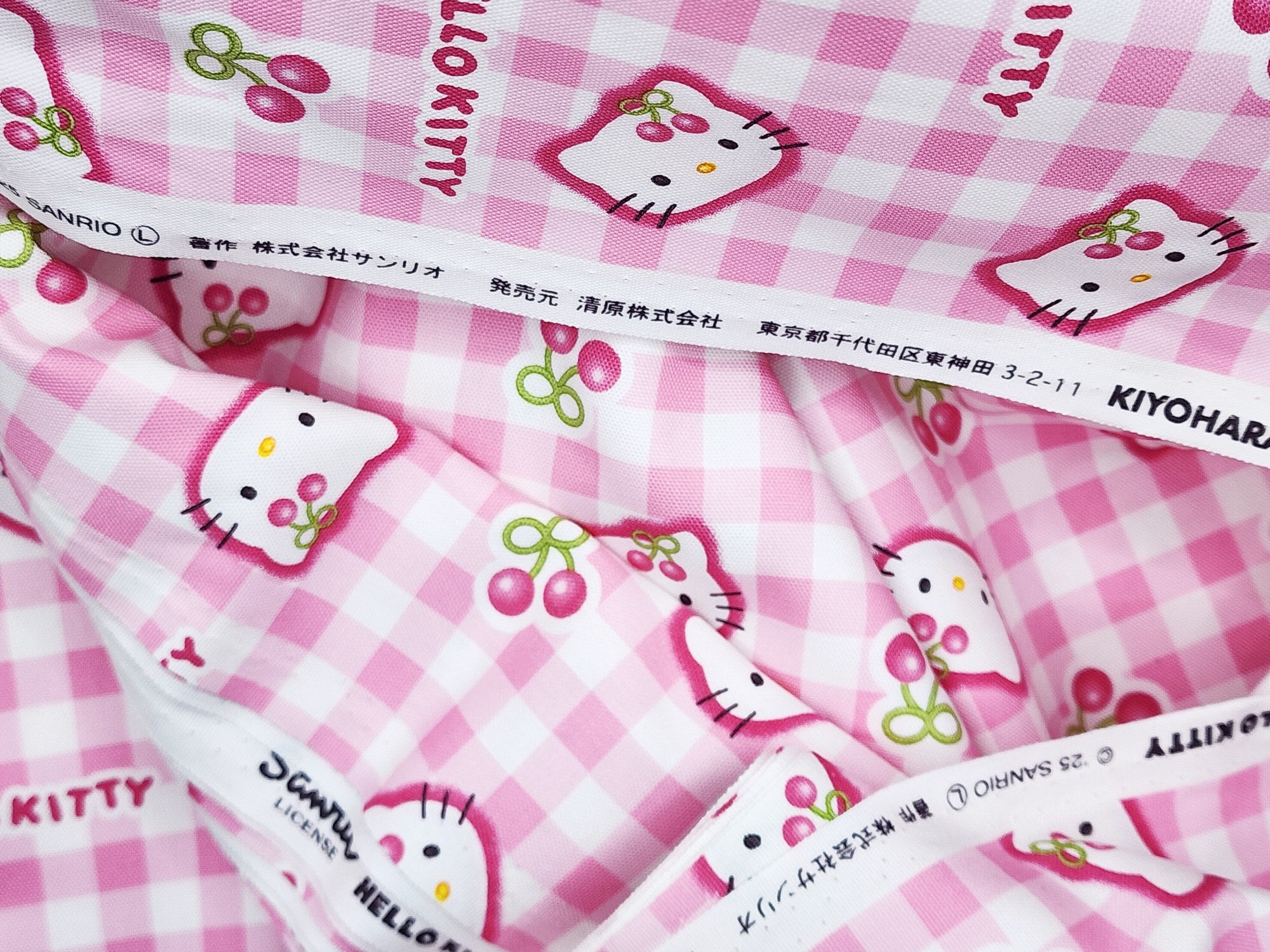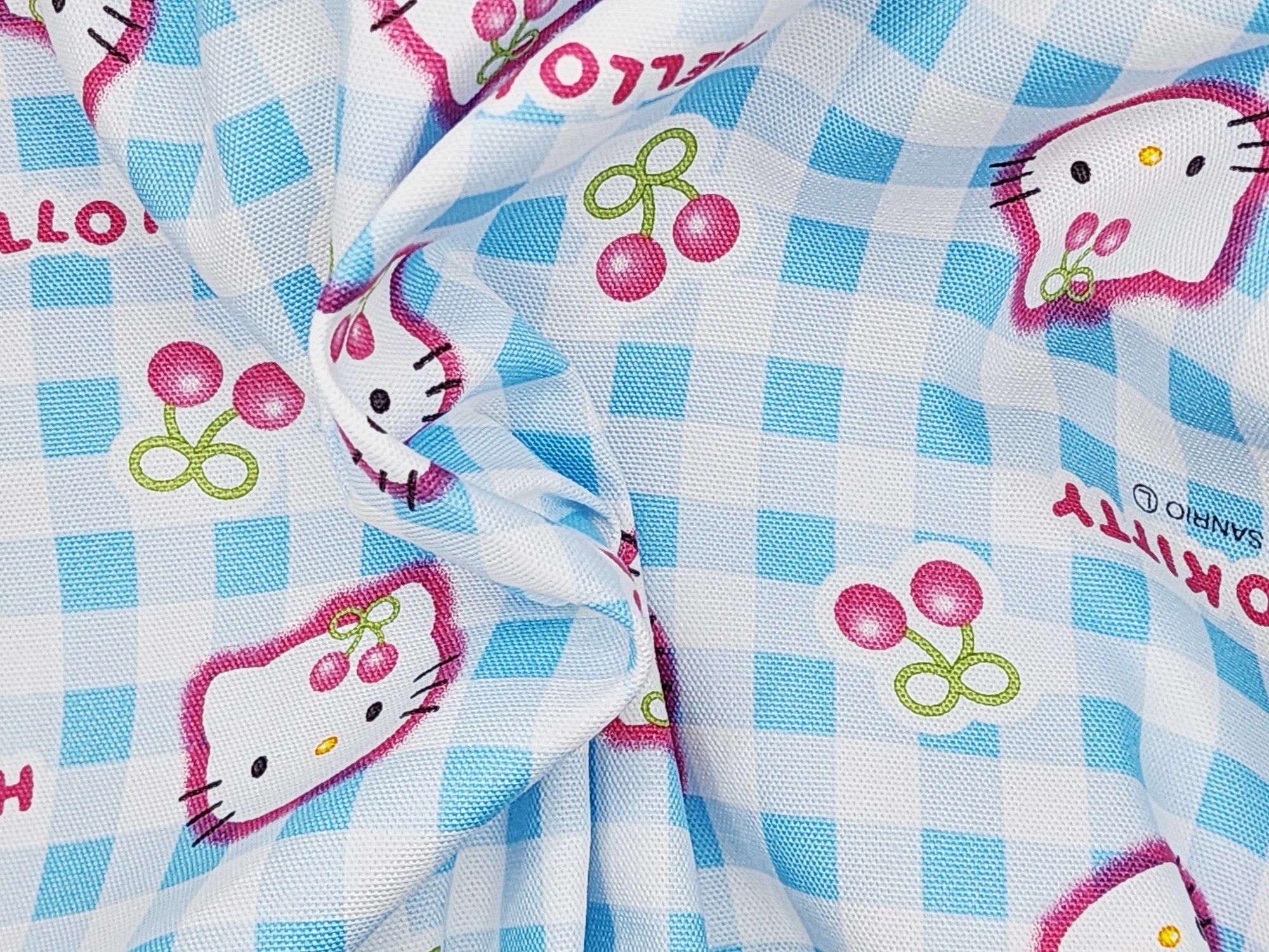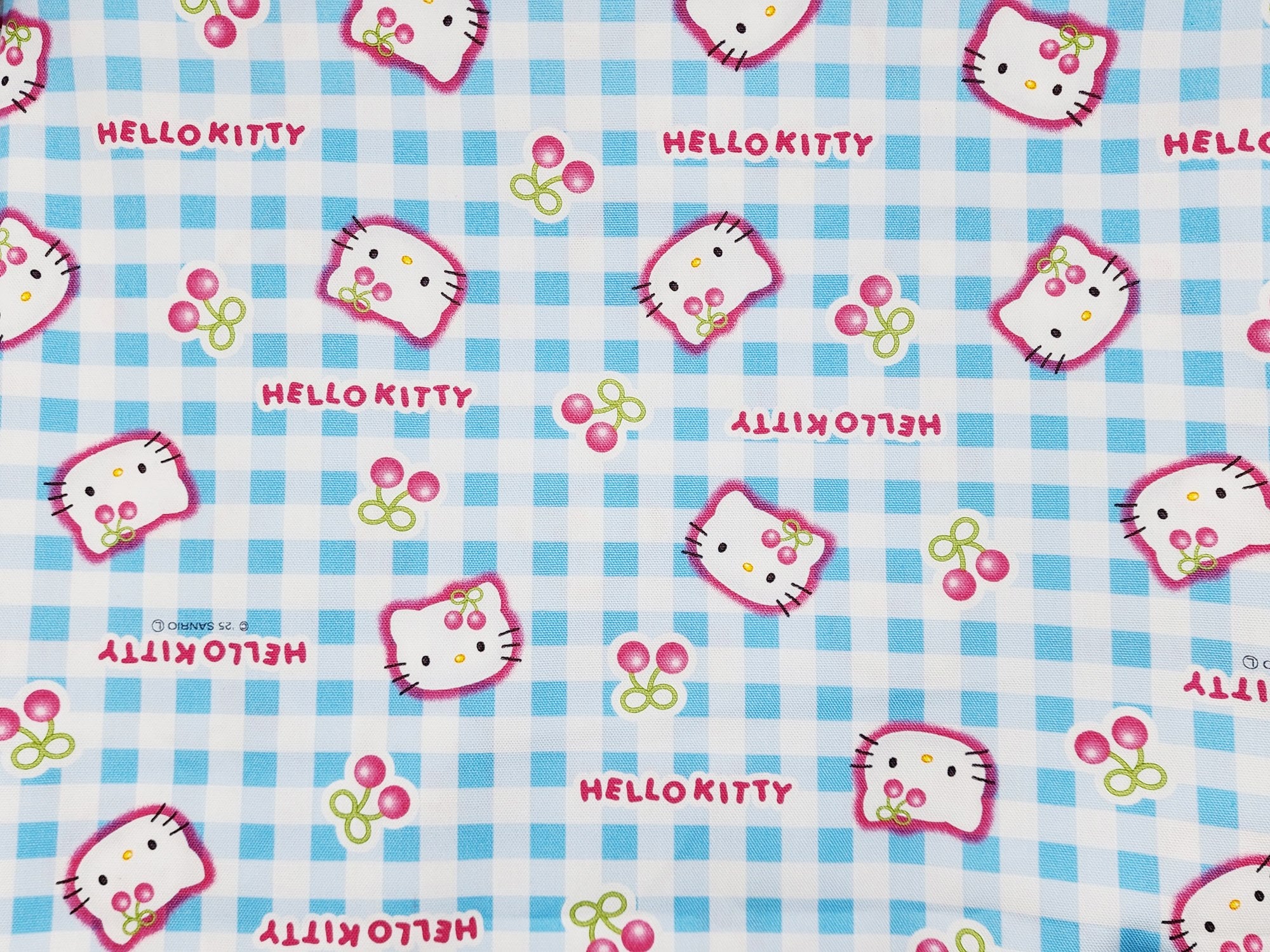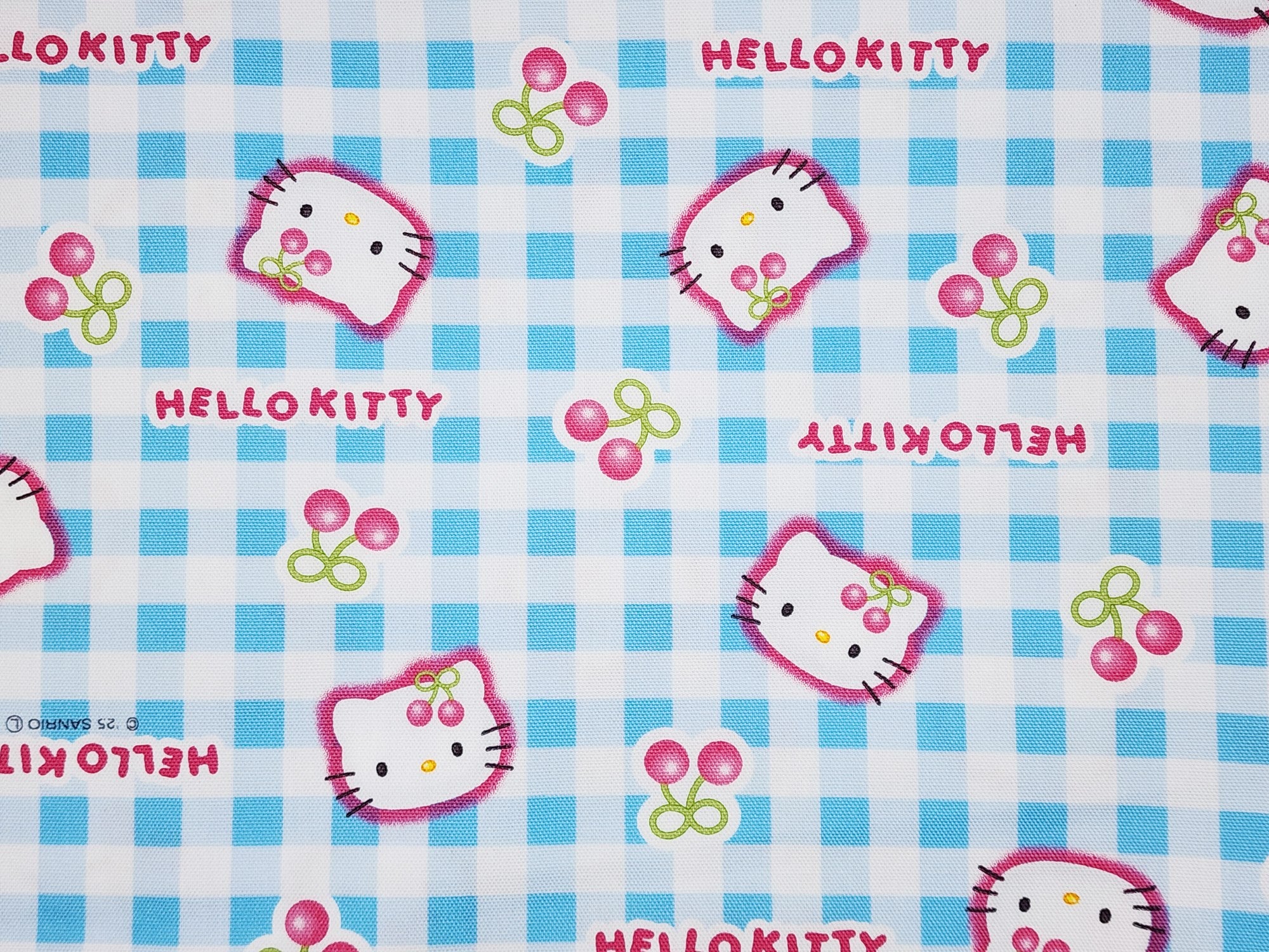 Sanrio Character Hello Kitty Check Cherry Oxford - Japanese Fabric