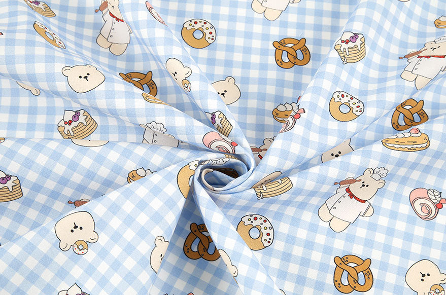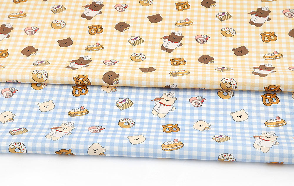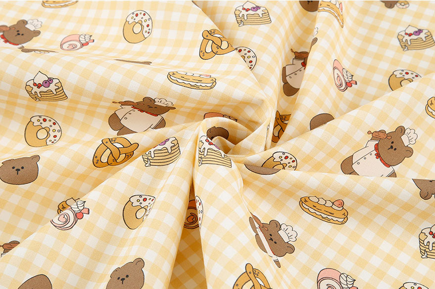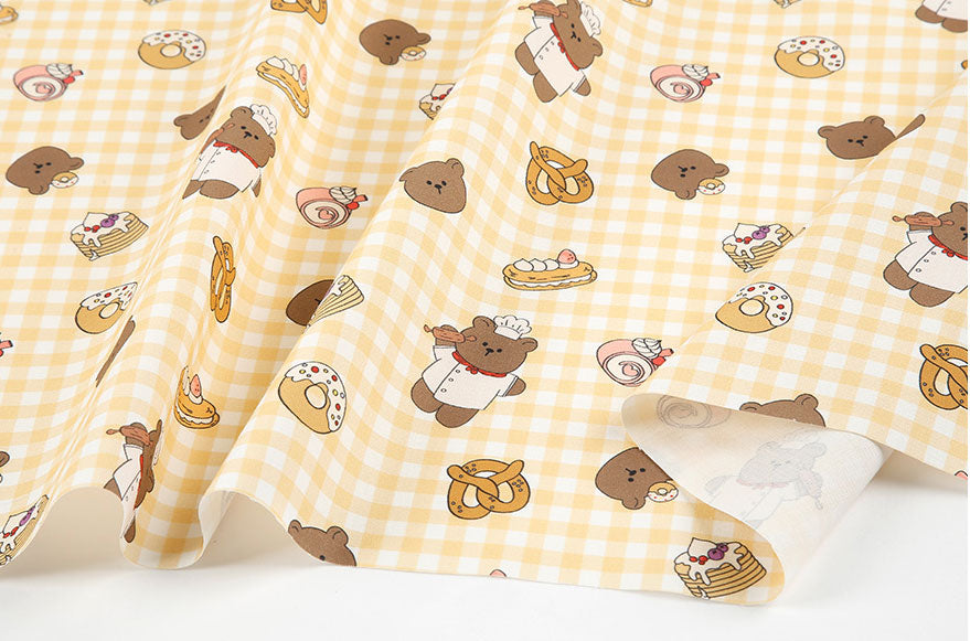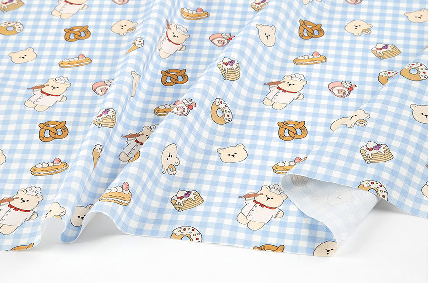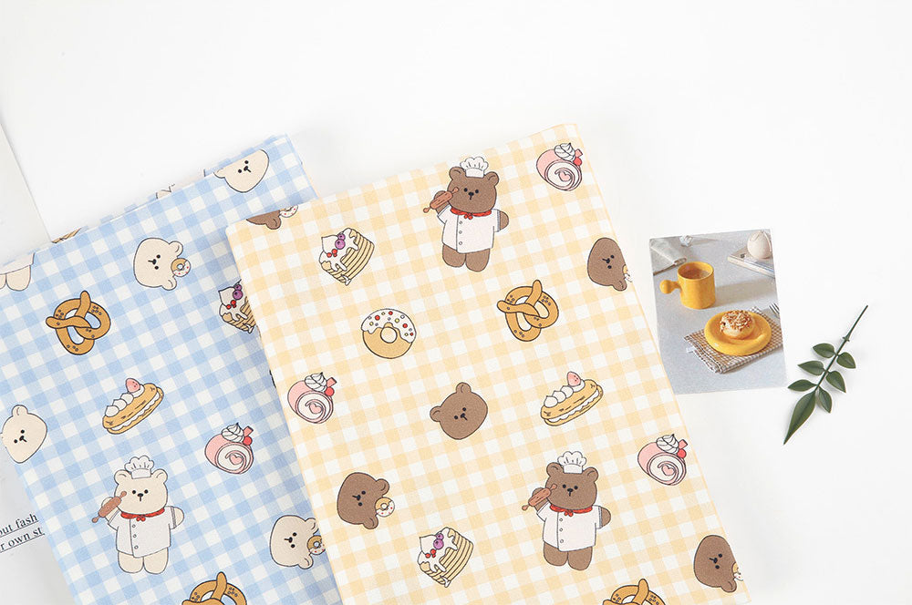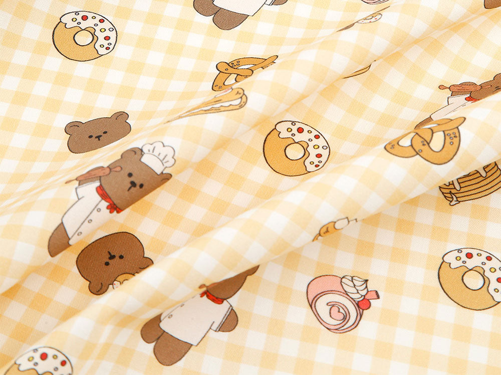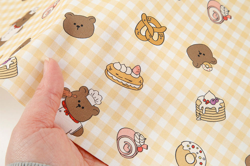 Check Bakery Teddy bear Patterned Fabric- Korean Fabric
