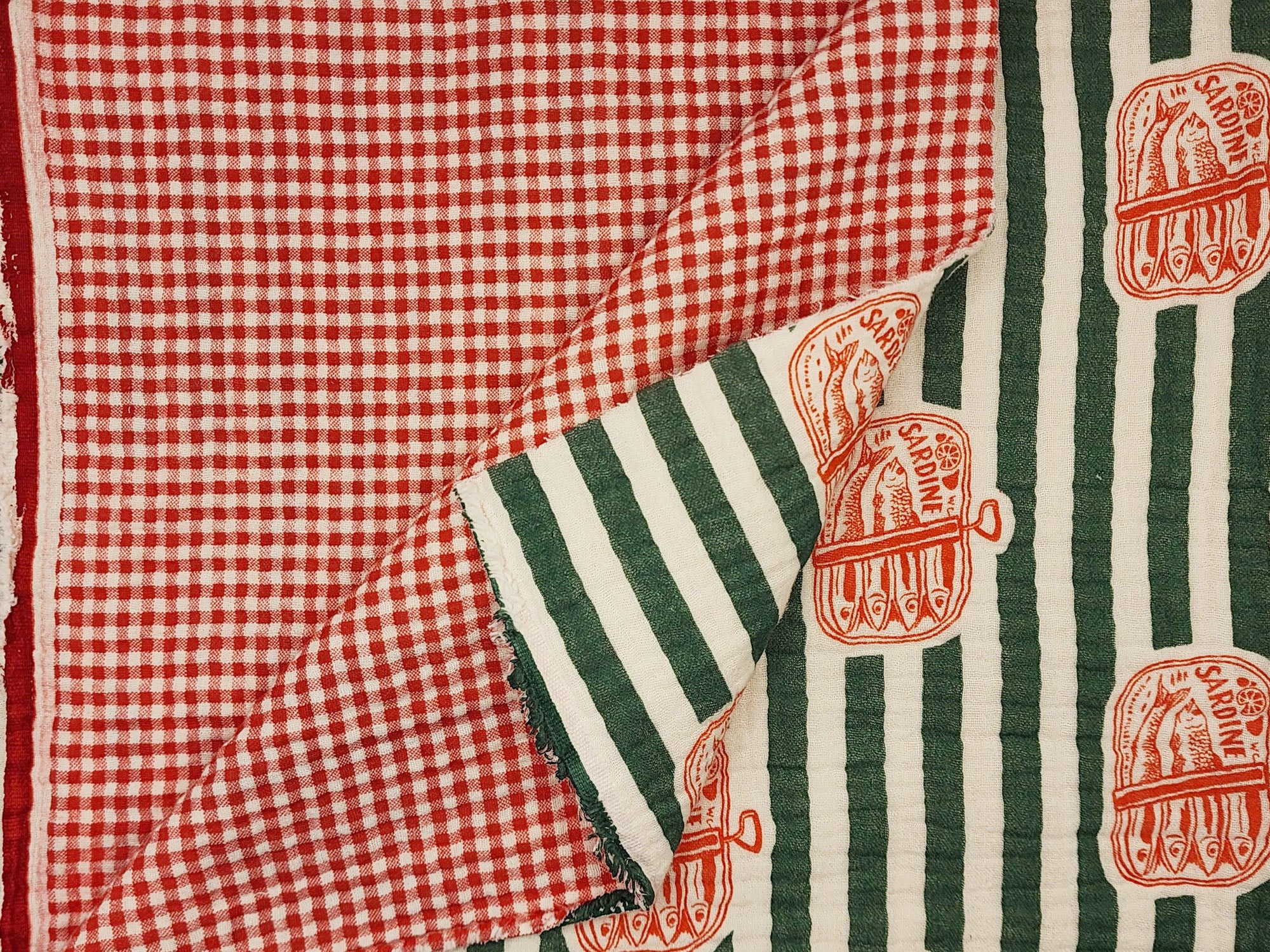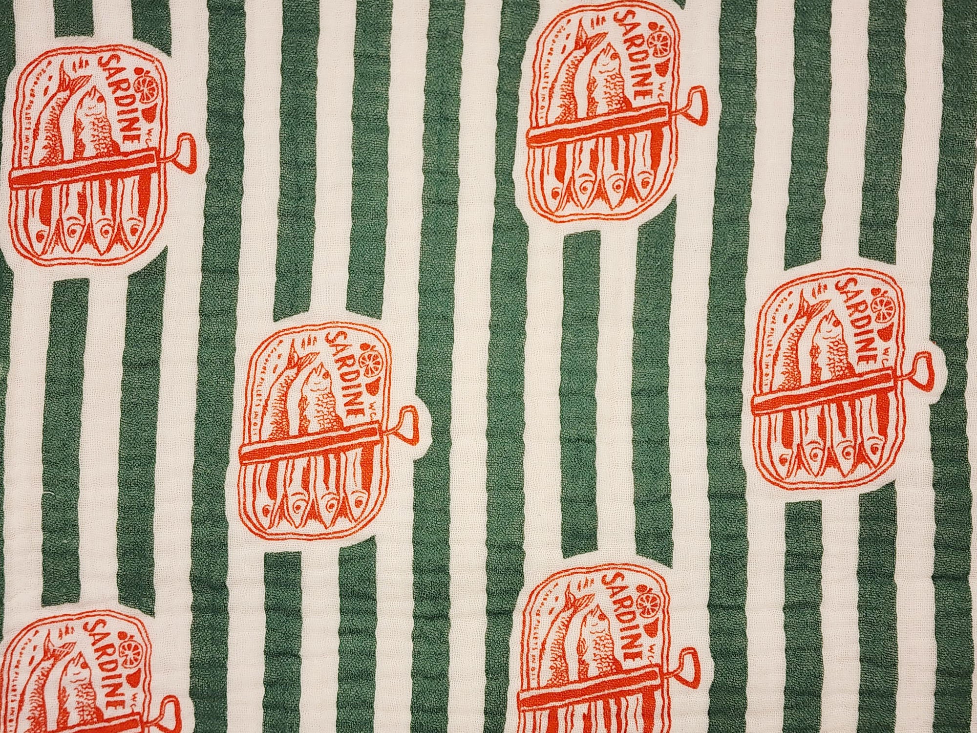 Canned Sardines Patterned Crinkle Quadruple Gauze Fabric - Korean Fabric