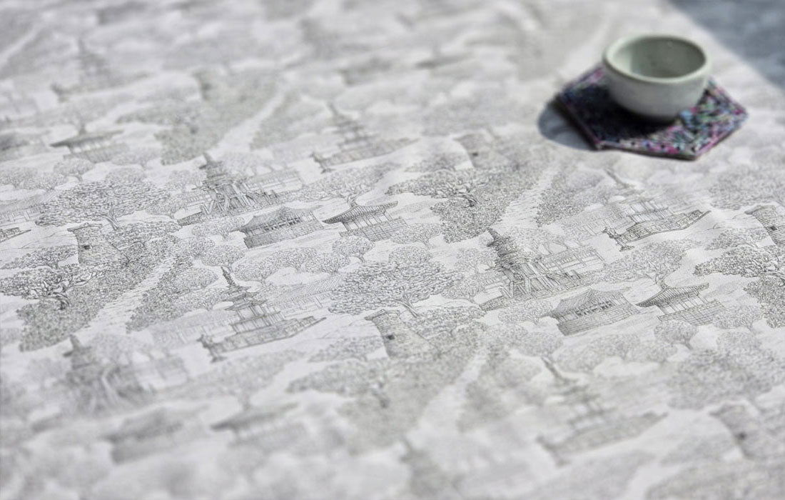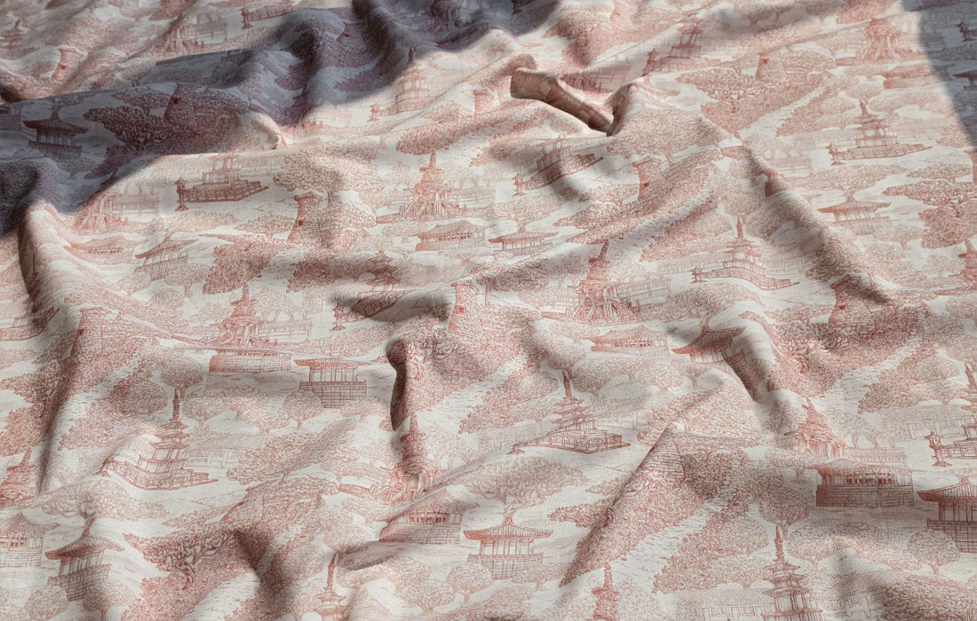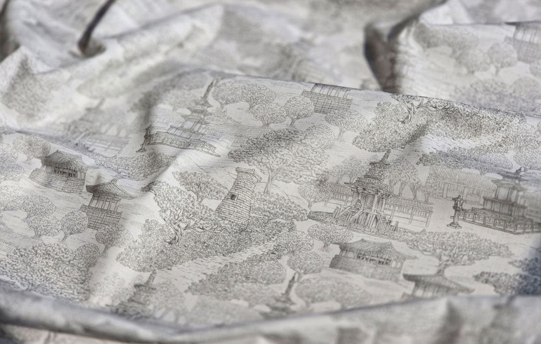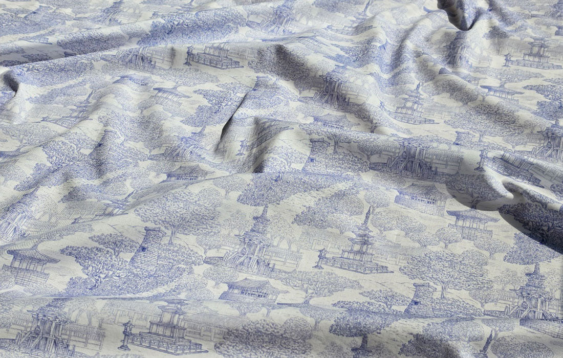 Korean Traditional Toile de Jouy Style Gyeongju City Pattern Fabric Korean Fabric