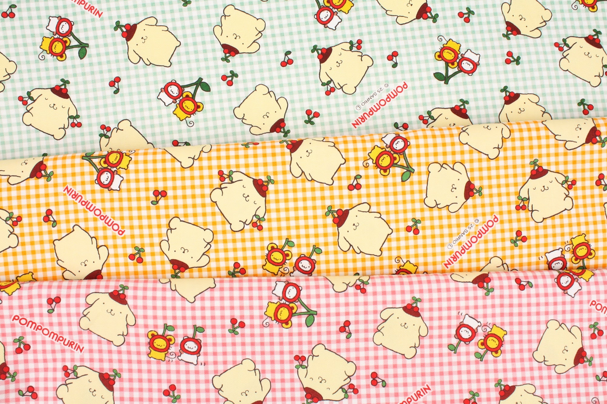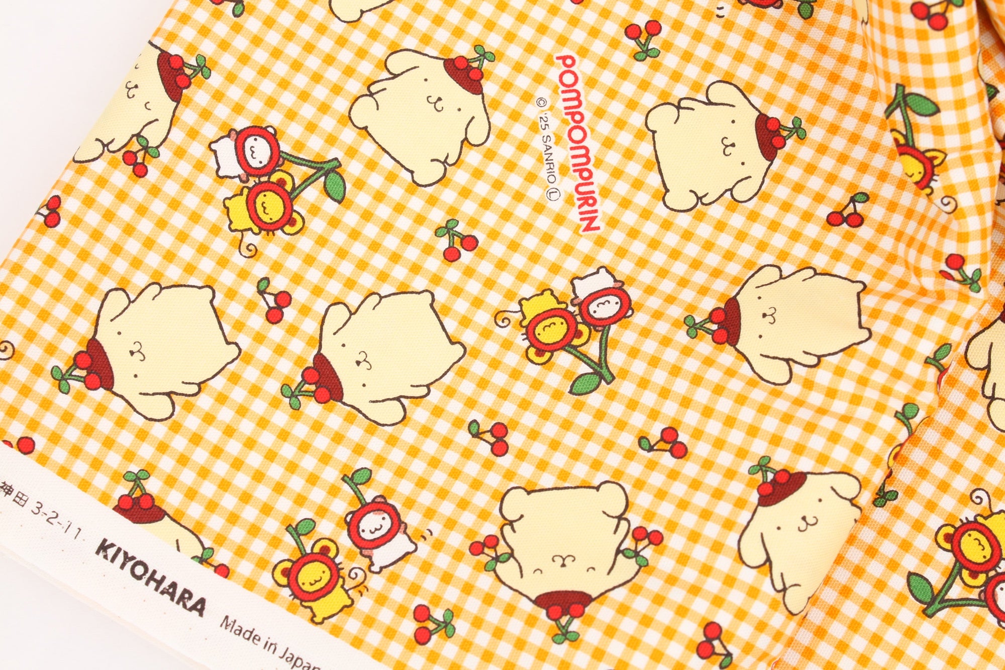 Sanrio Character Pompompurin Cherry Oxford - Japanese Fabric