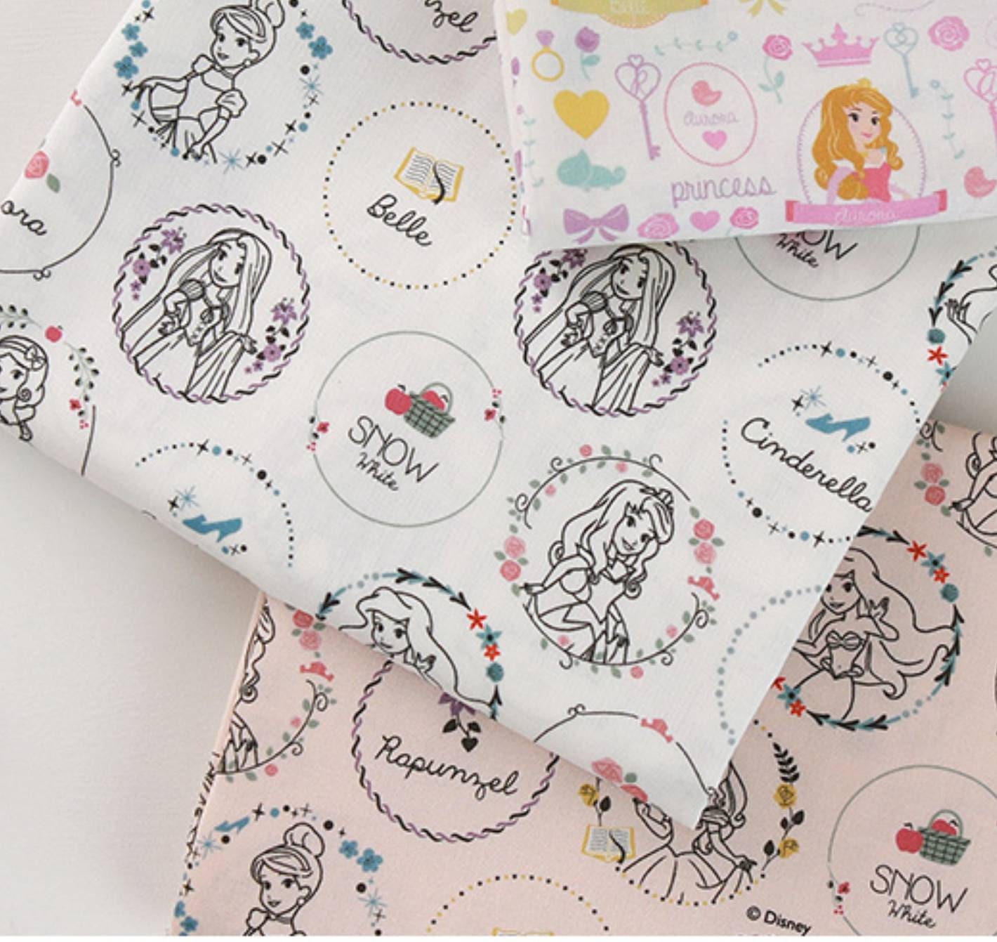 Disney Princess Cinderella Snow white Belle Rapunzel Fabric printed in Korea