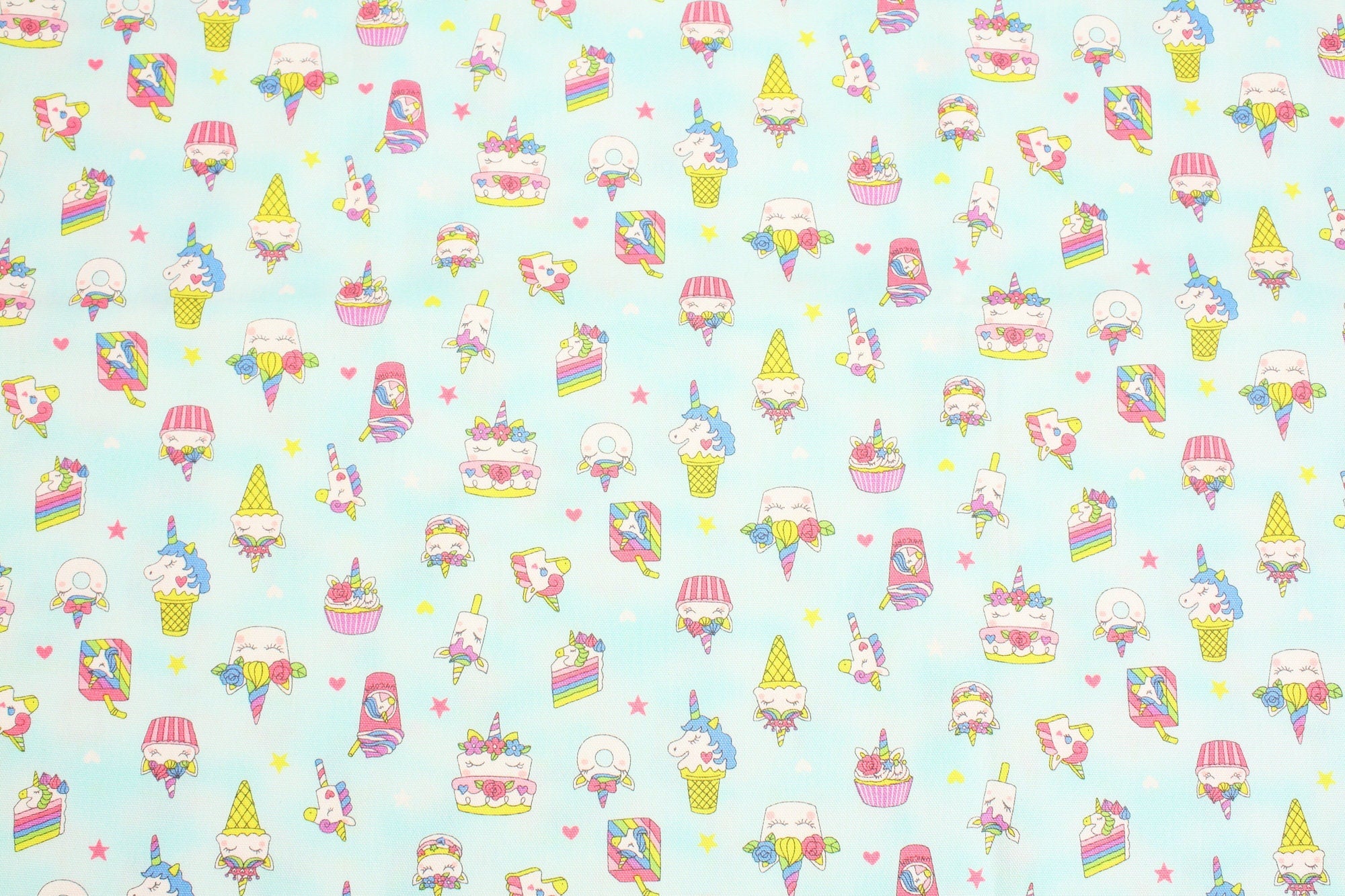Pastel Unicorn Icecream Cake Fabric - Japanese Fabric