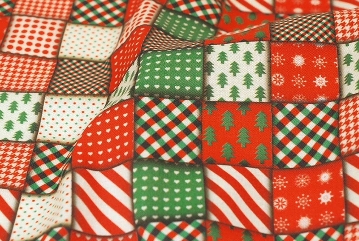 Christmas check Patterned Fabric, Cute, sewing, Quilt - Korean Fabric