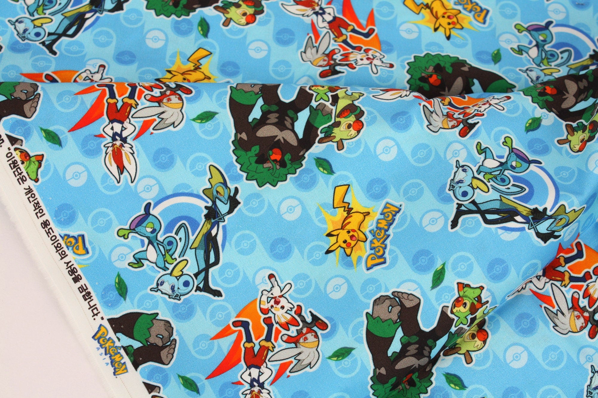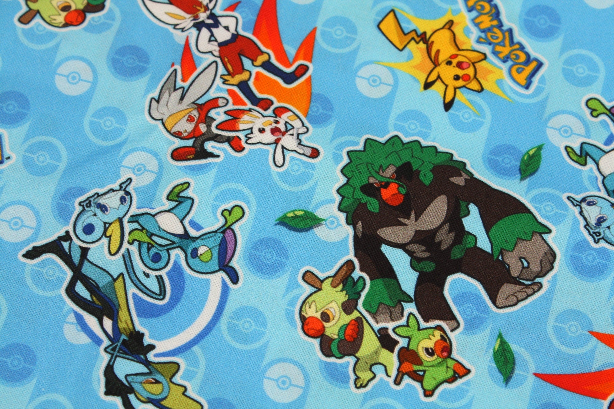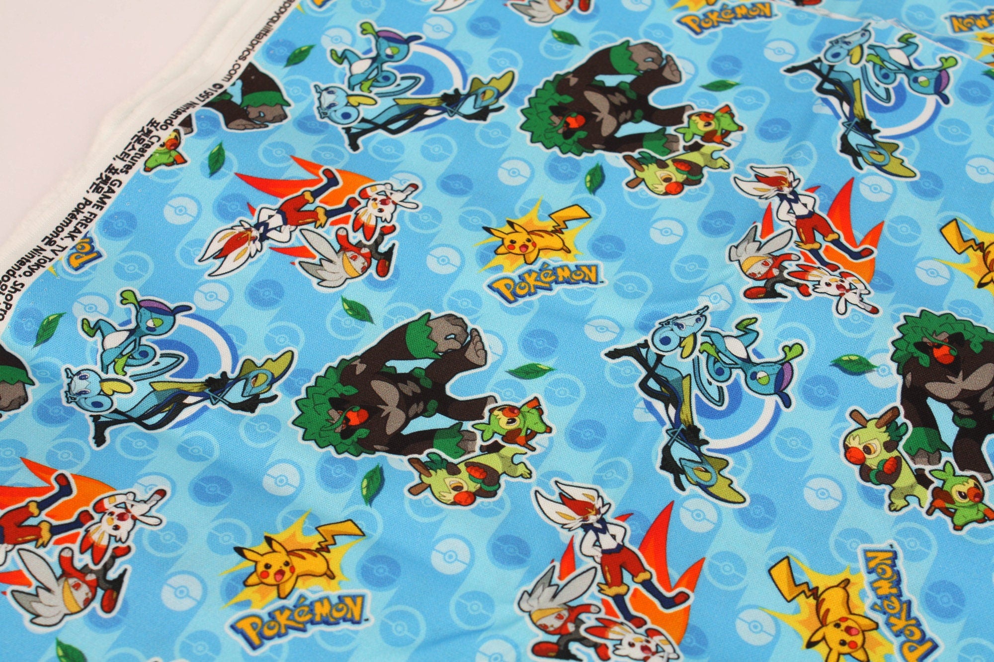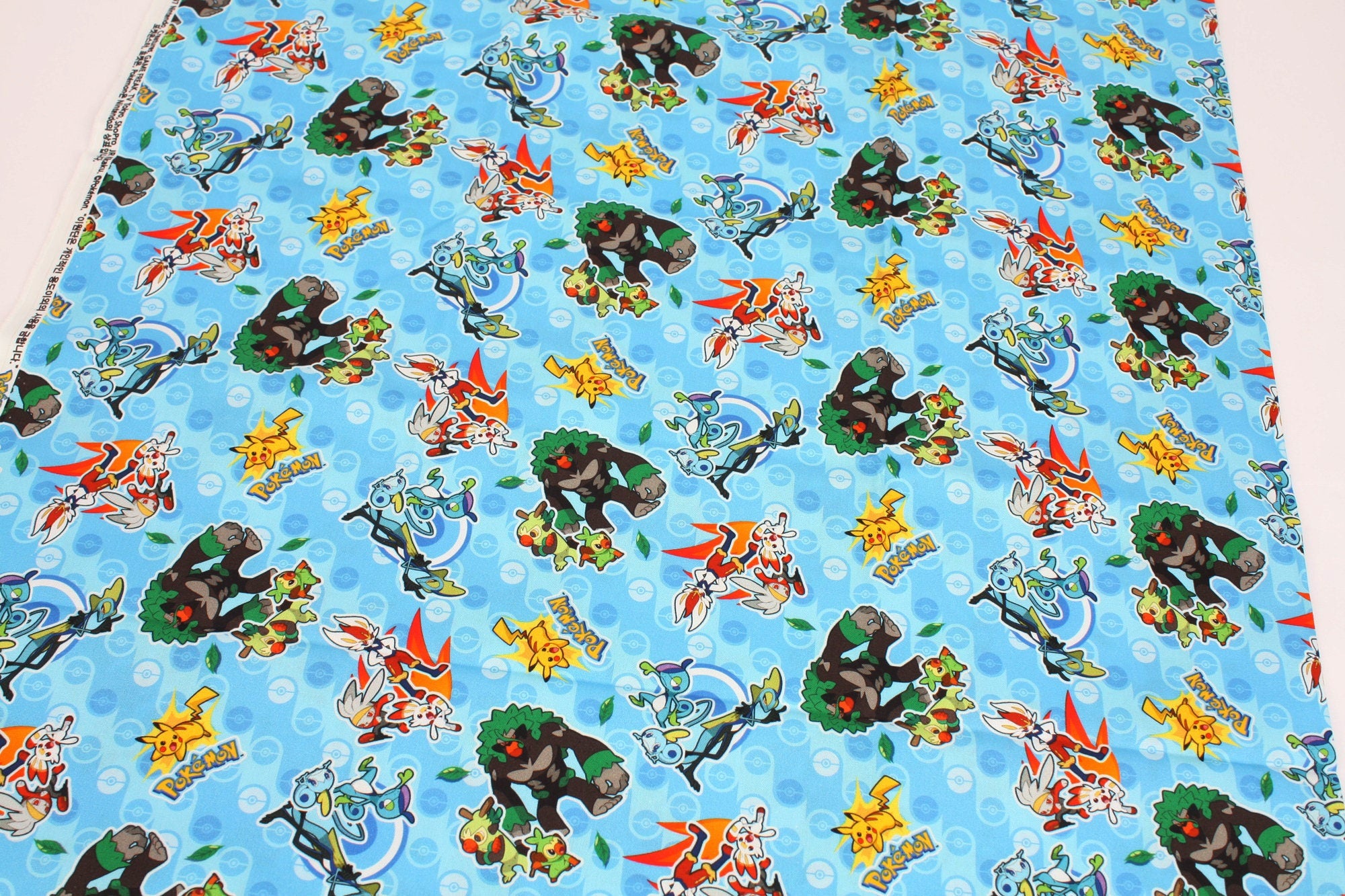 Pocket Monster, Pokemon Evolution, Grookey, Scorbunny, Sobble With Pikachu Character Fabric made in Korea