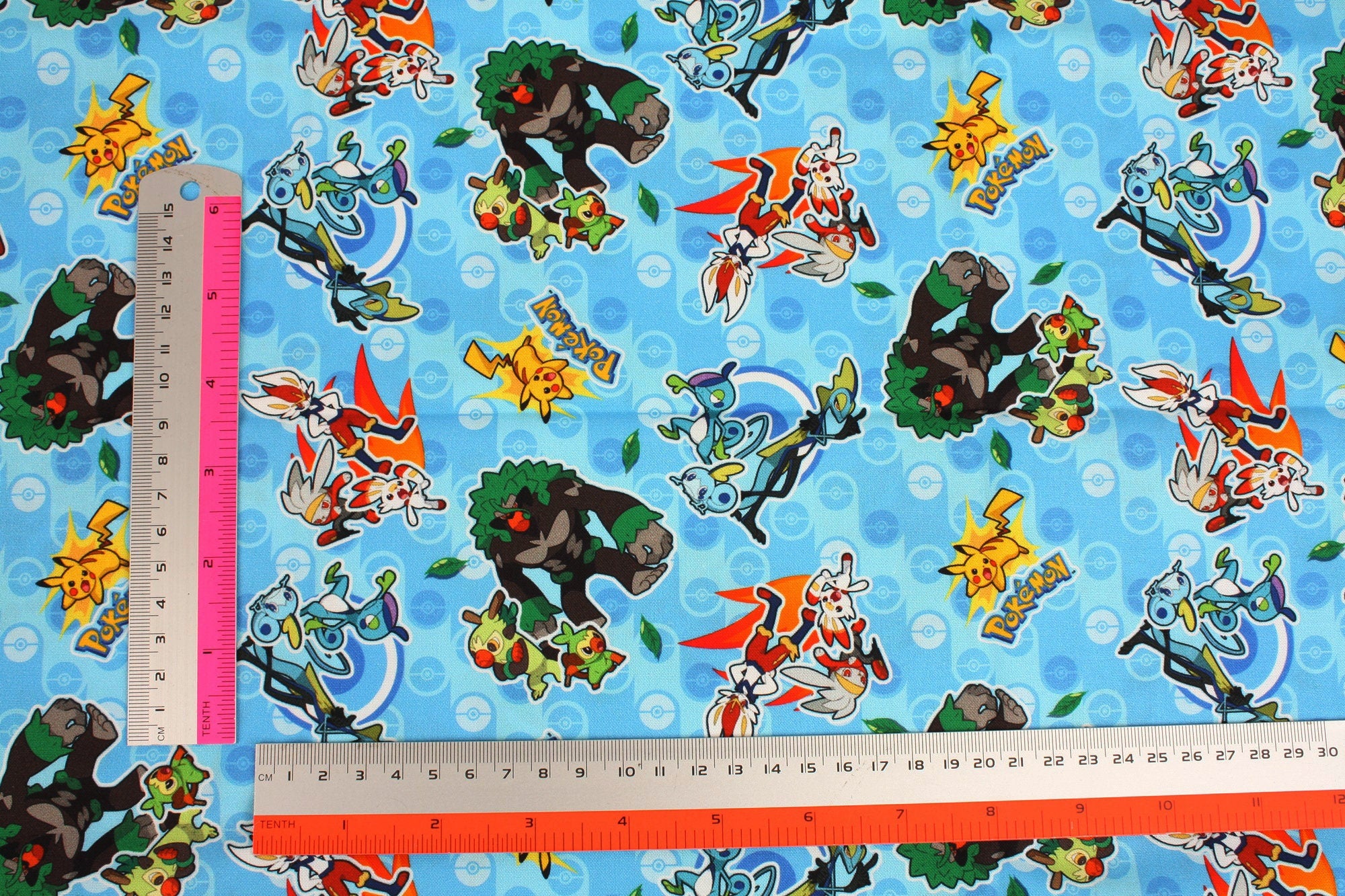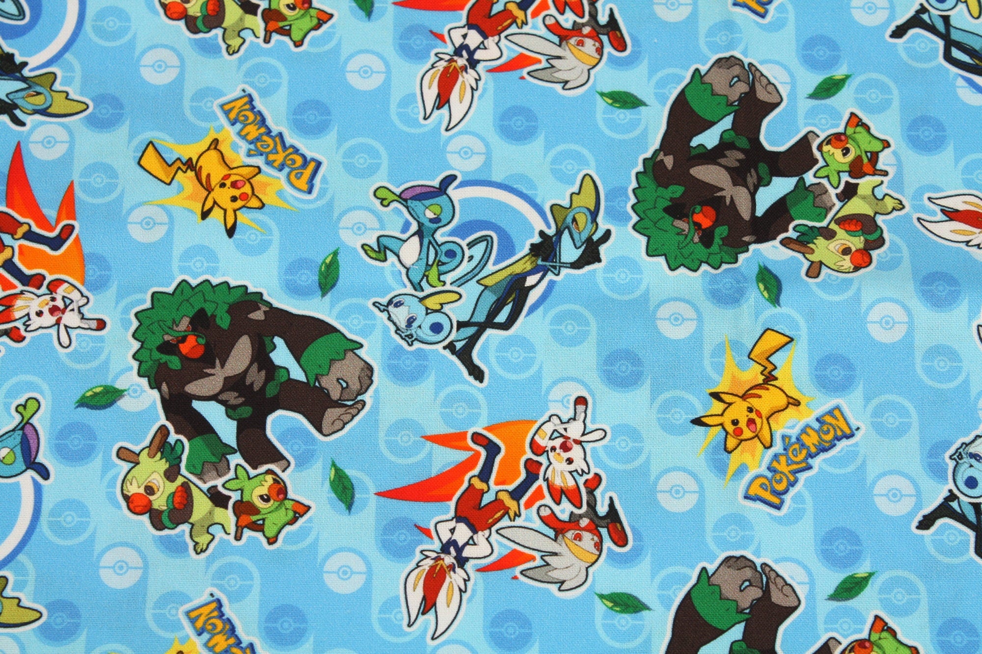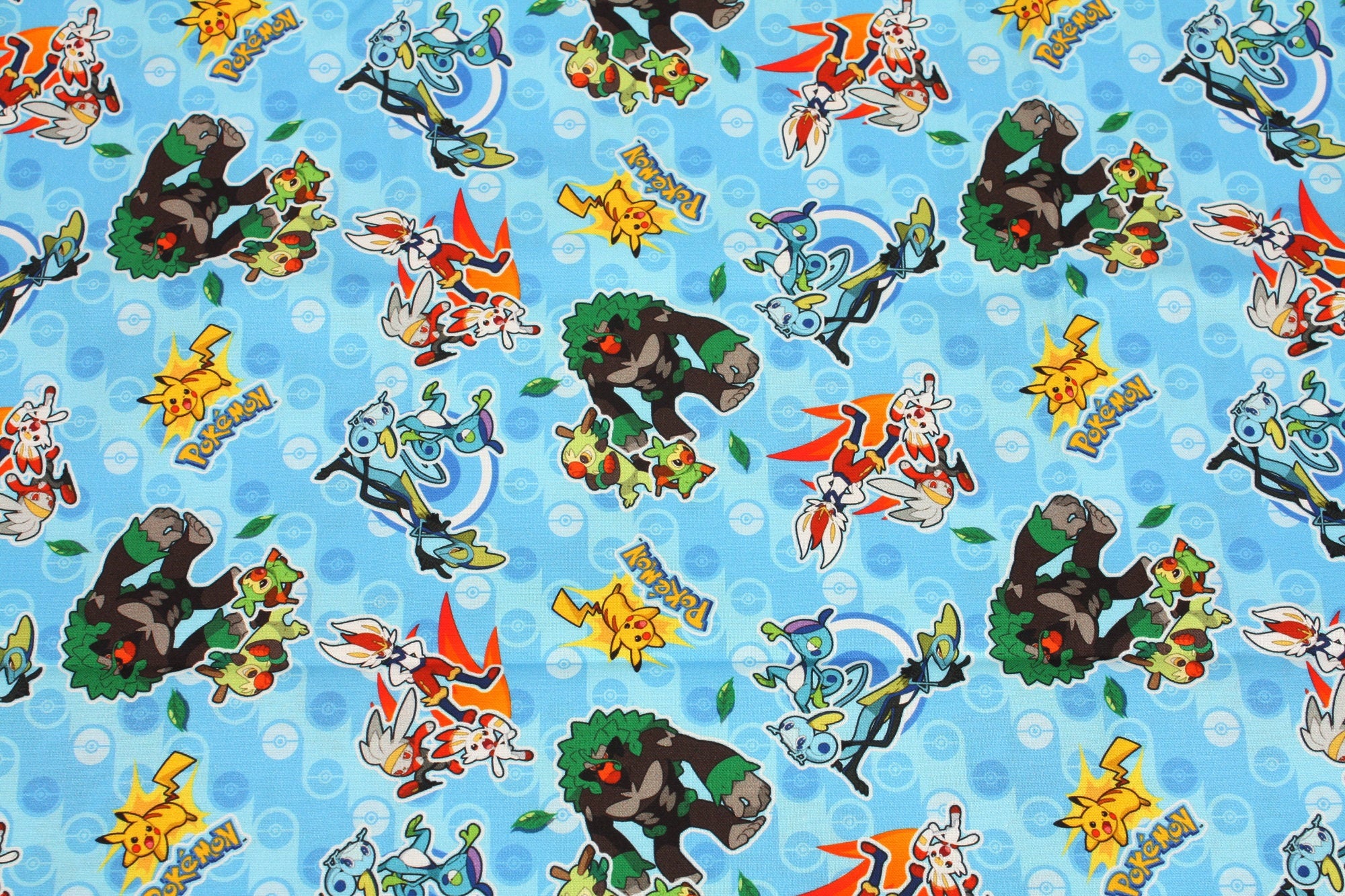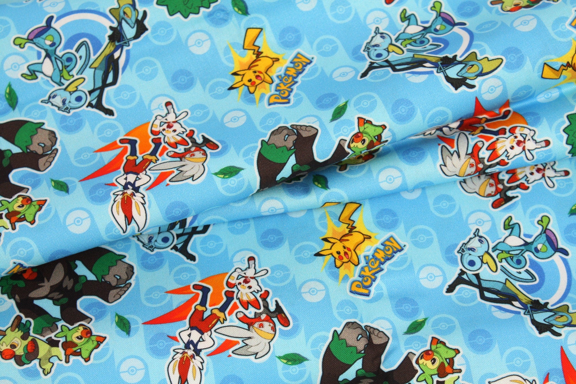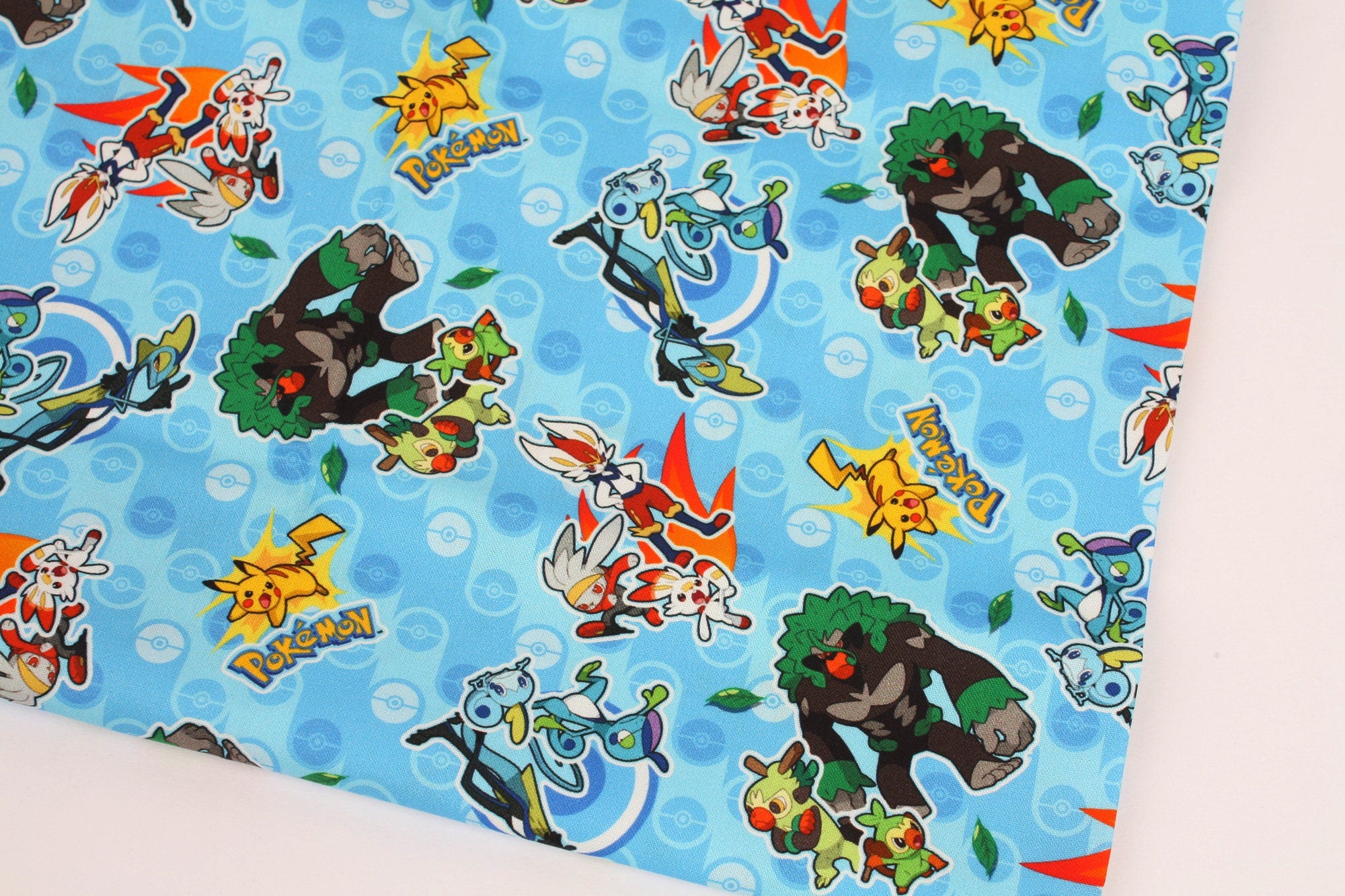 Pocket Monster, Pokemon Evolution, Grookey, Scorbunny, Sobble With Pikachu Character Fabric made in Korea