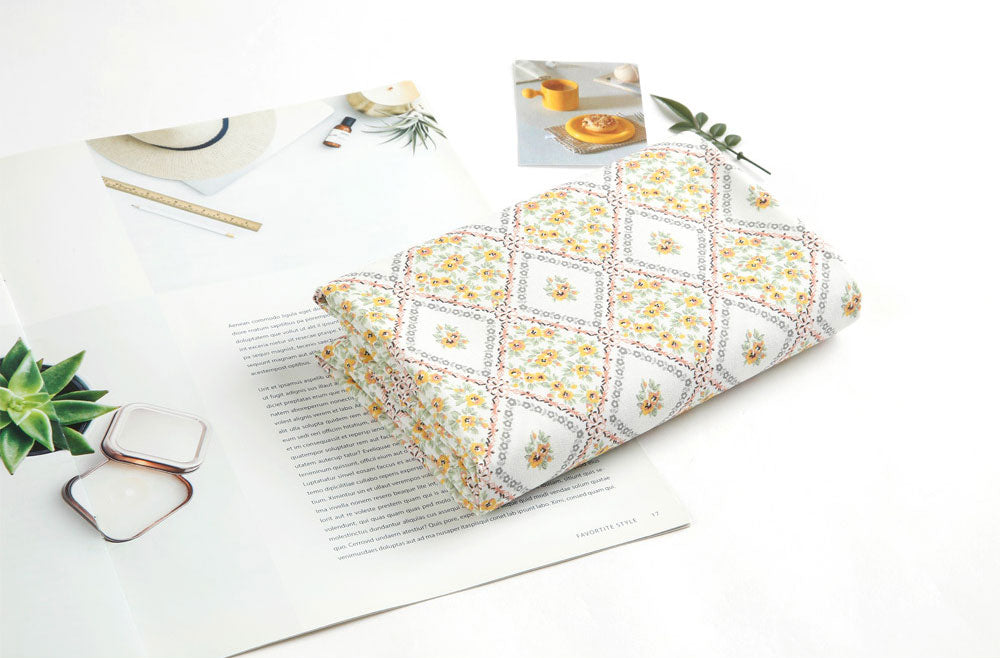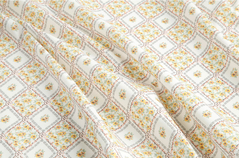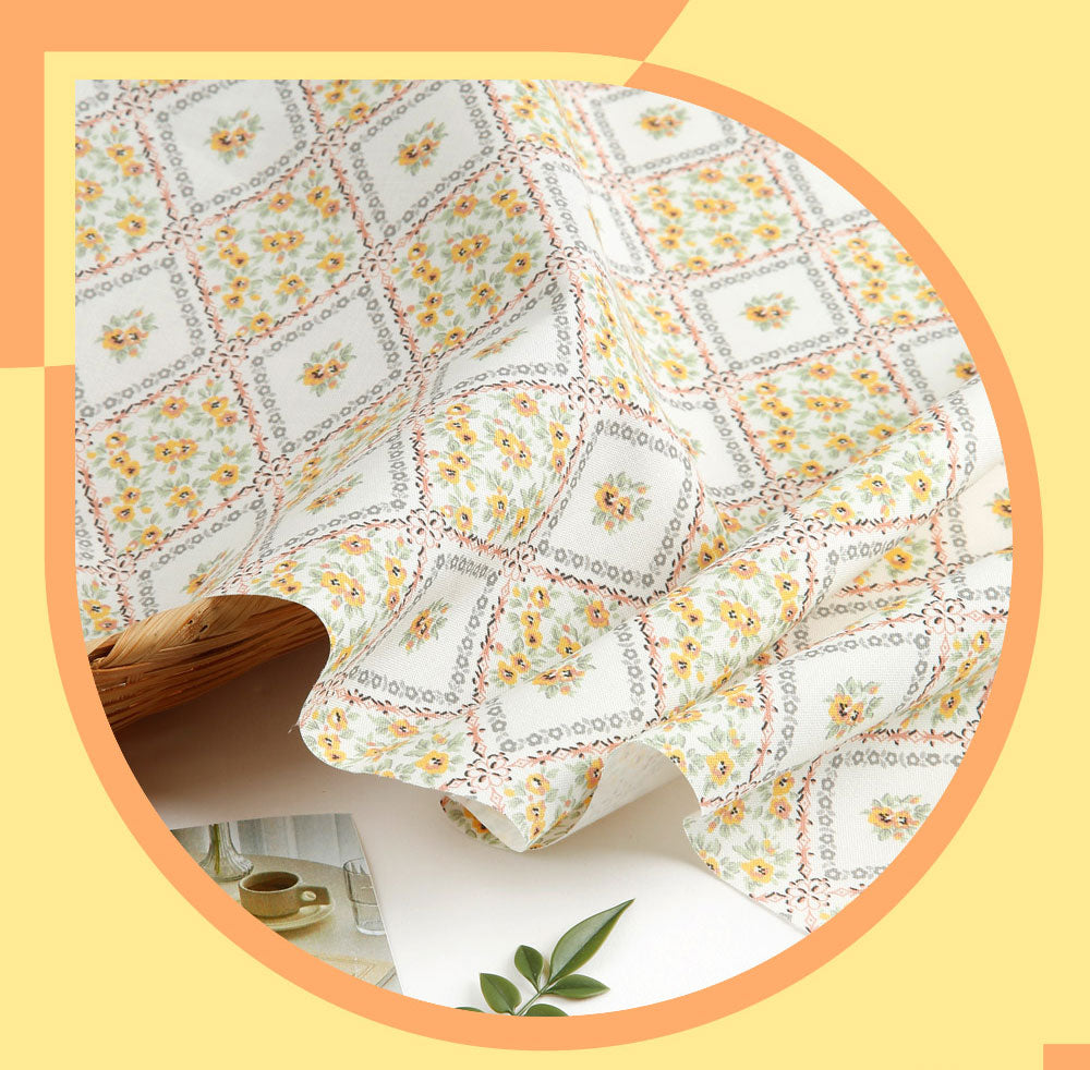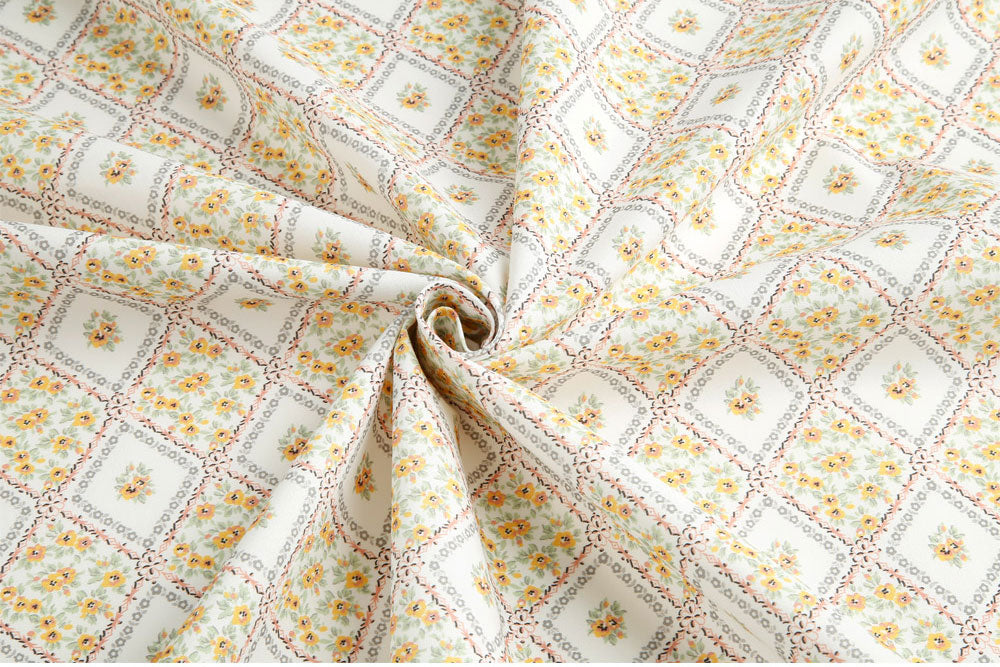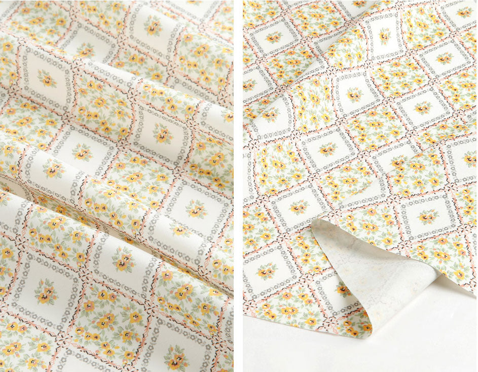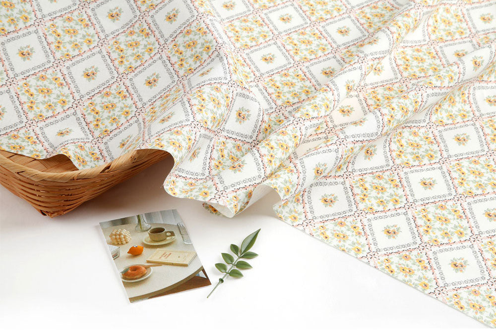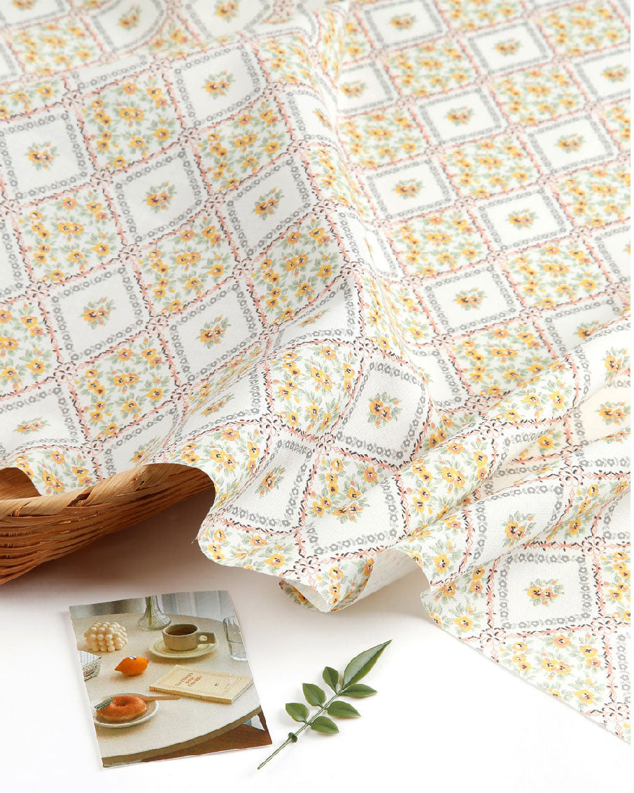Diamond Grid Antique Flower Garden Patterned fabric - Korean Fabric