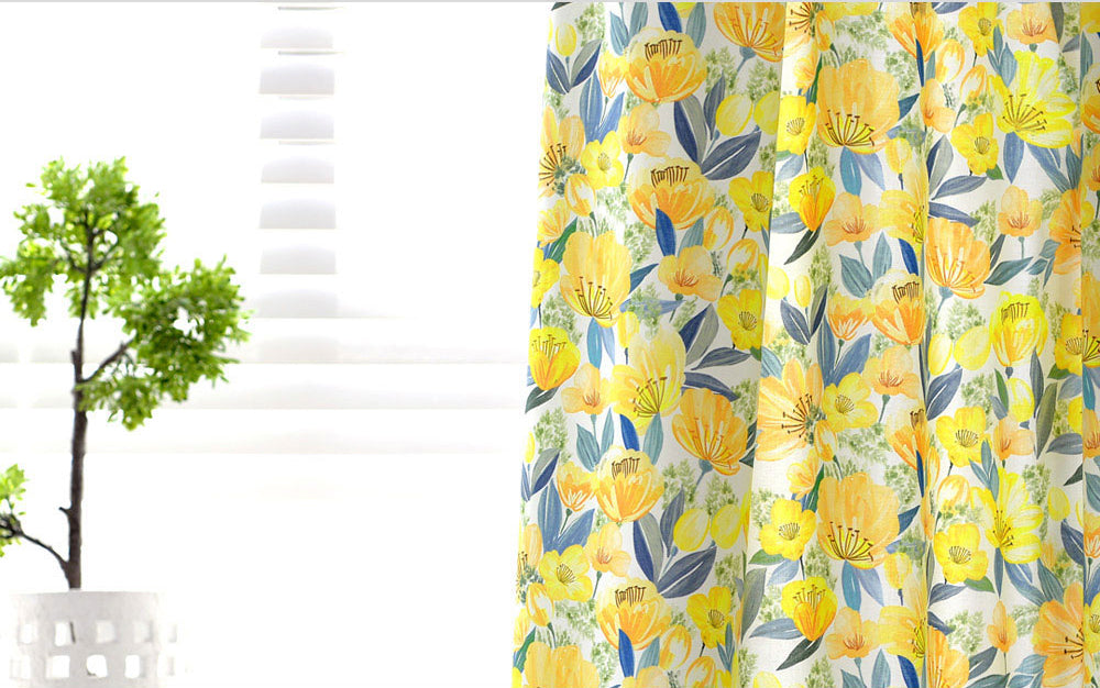 Yellow Flower Garden Patterned fabric - Korean Fabric