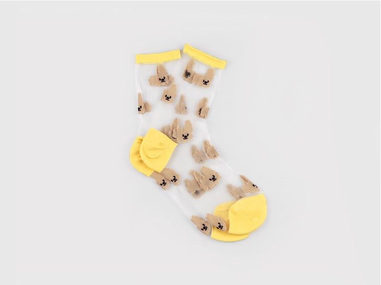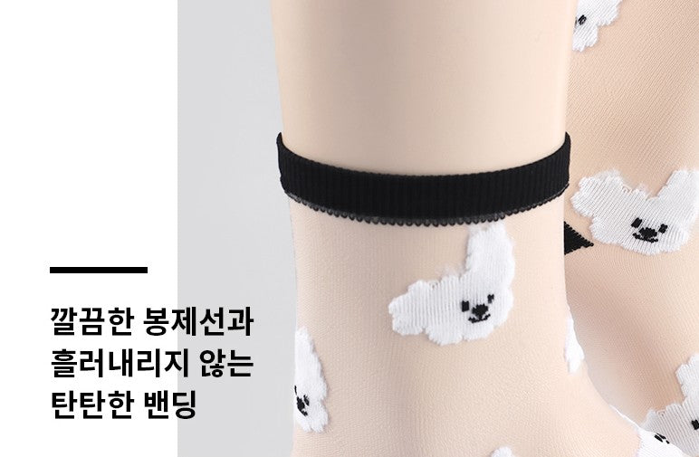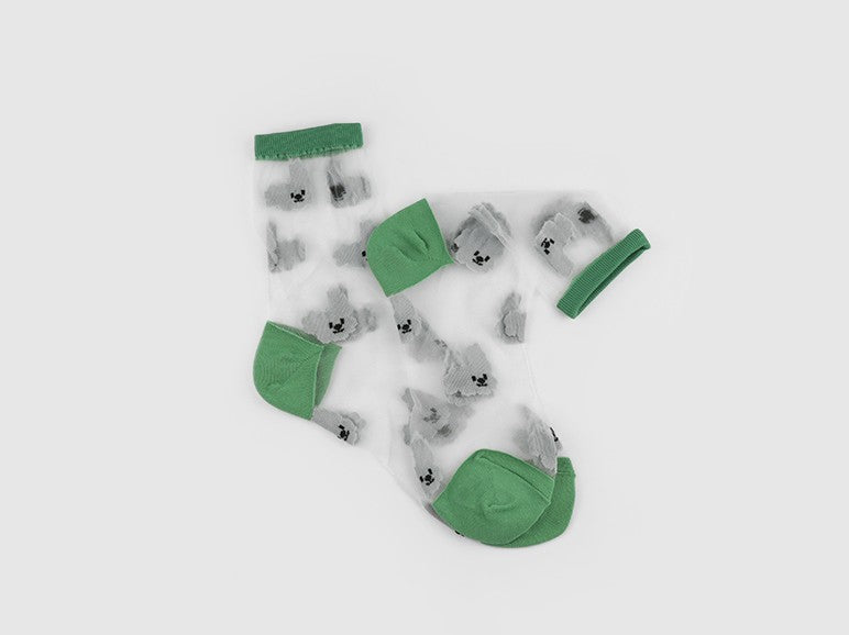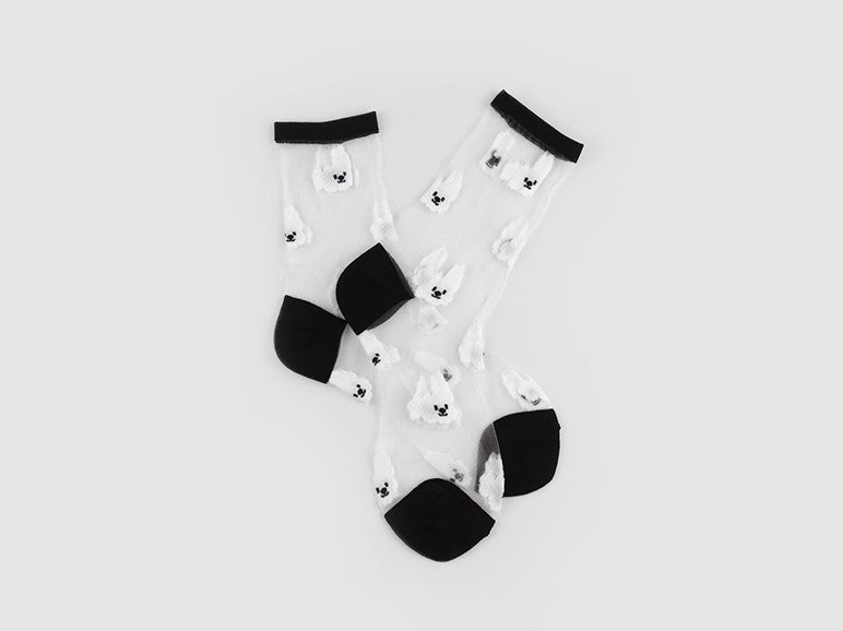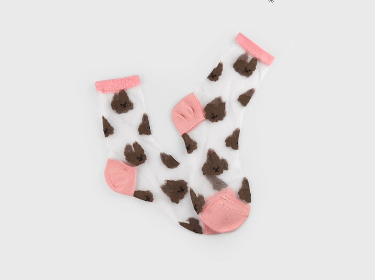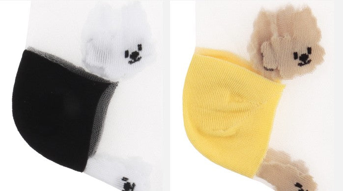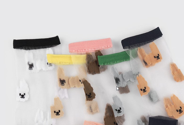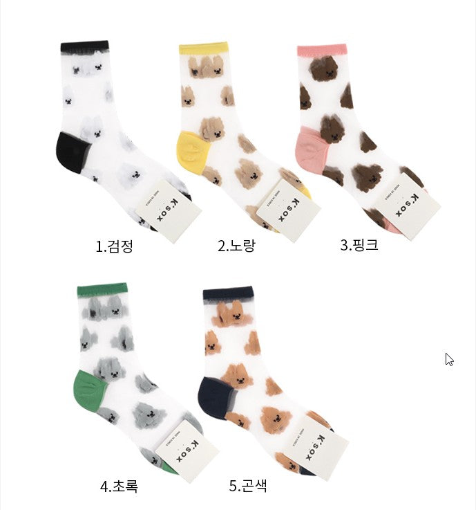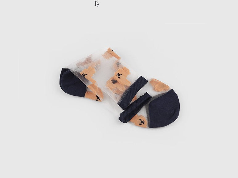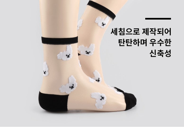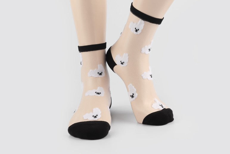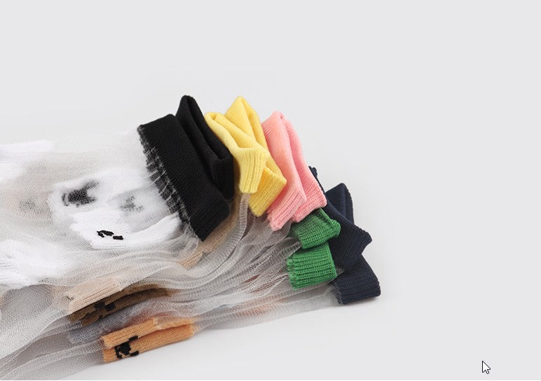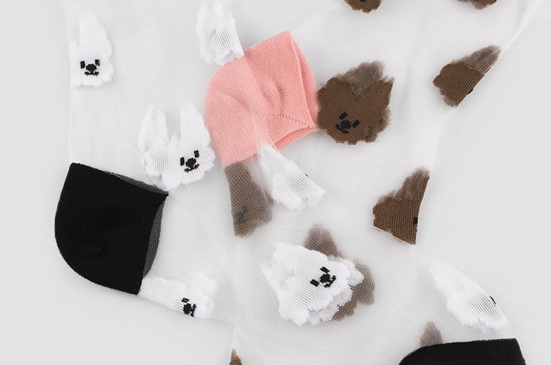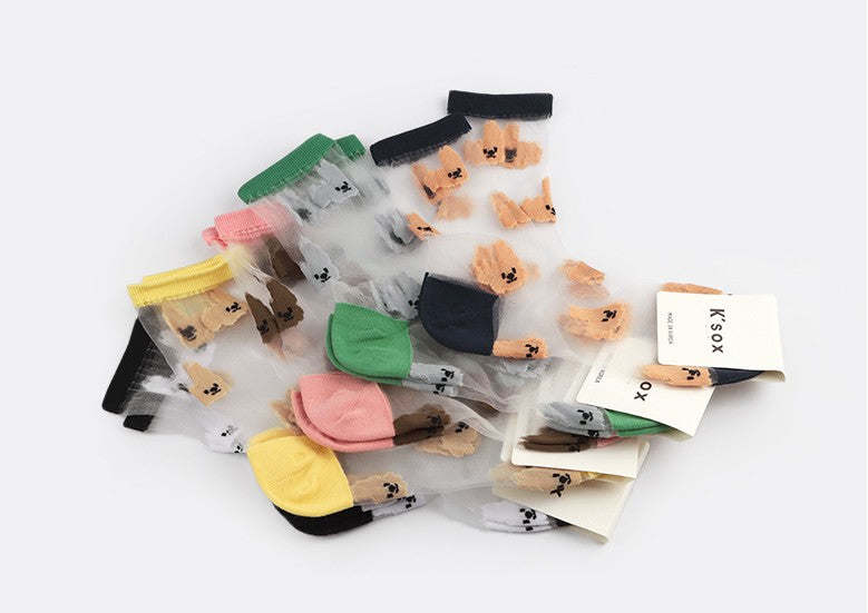 5 Pairs of Animal Face Patterned See-Through Ankle Socks for Women