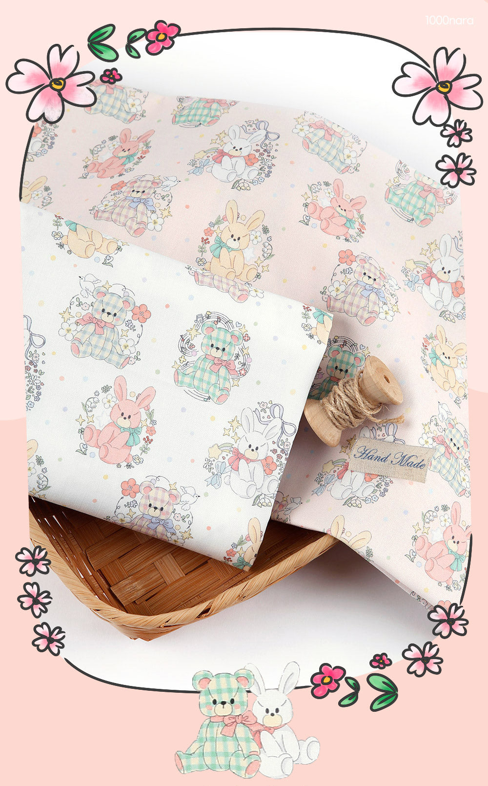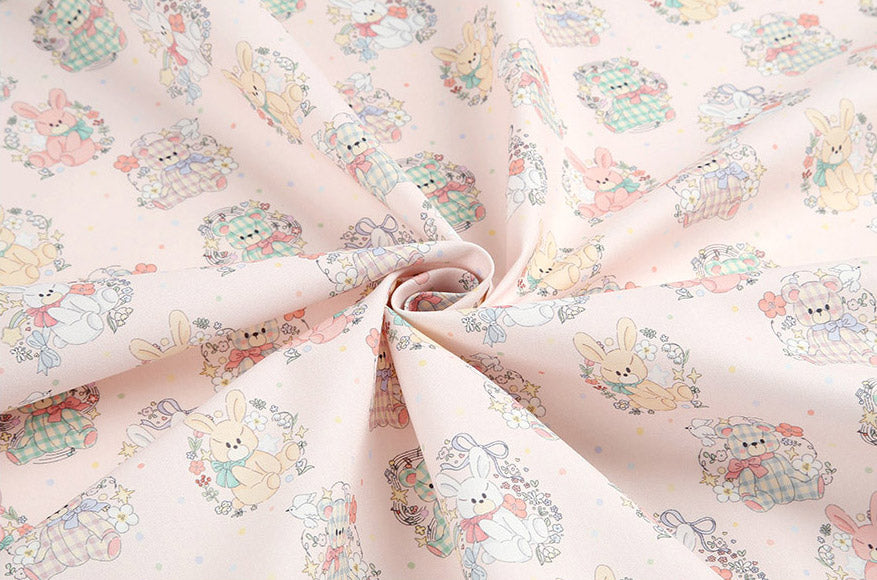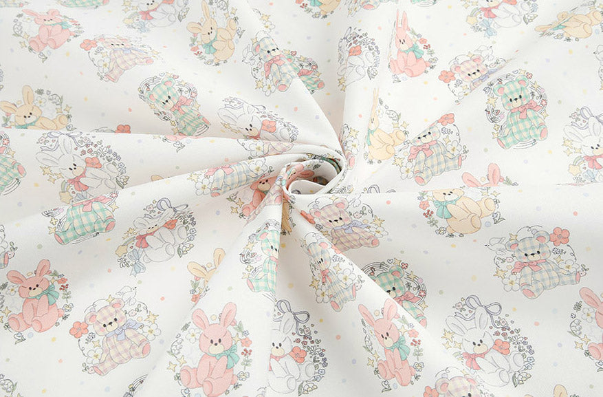兔子泰迪熊圖案布料 - 韓國布料