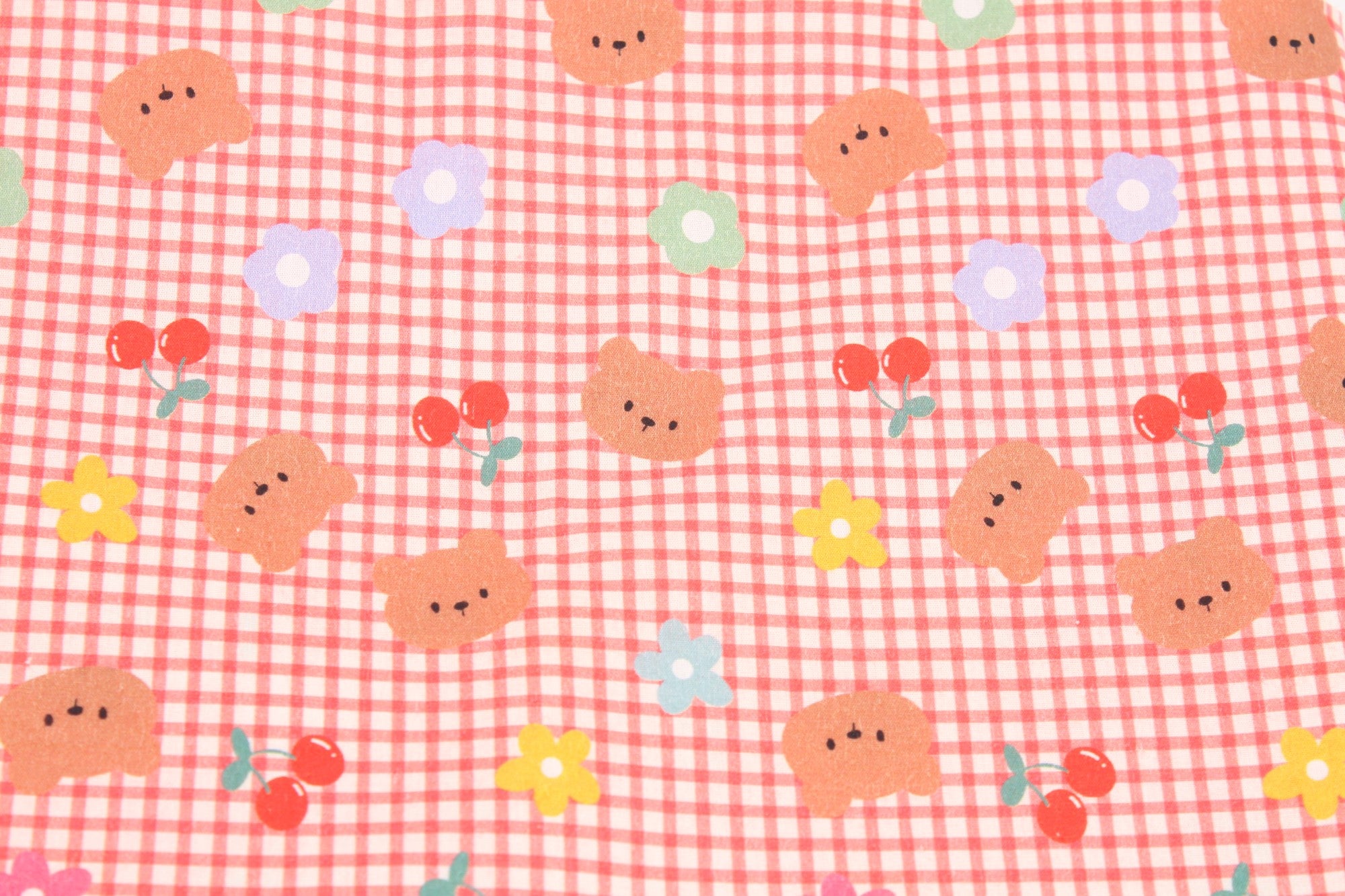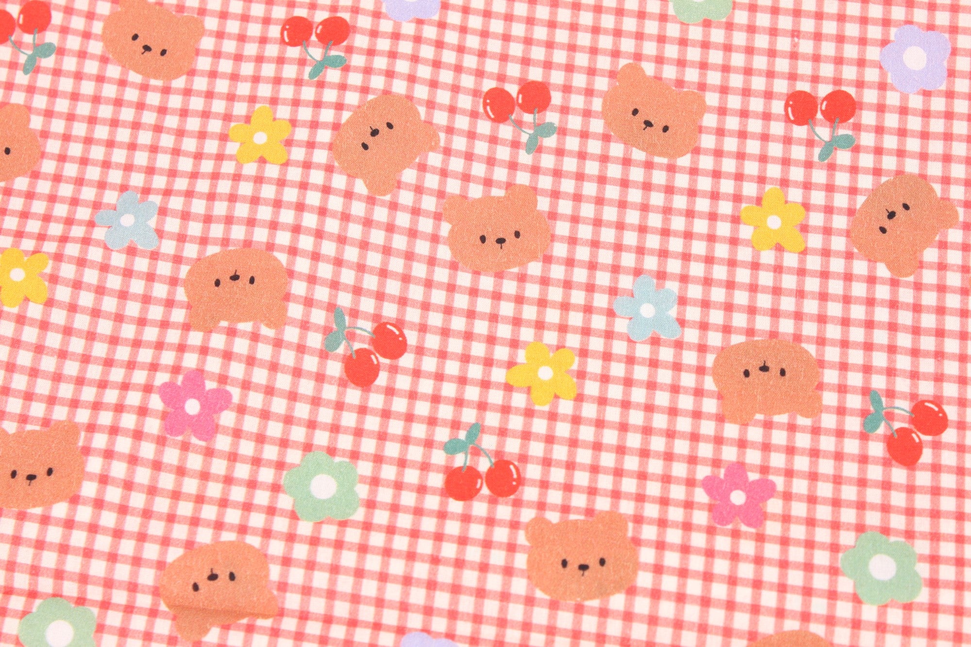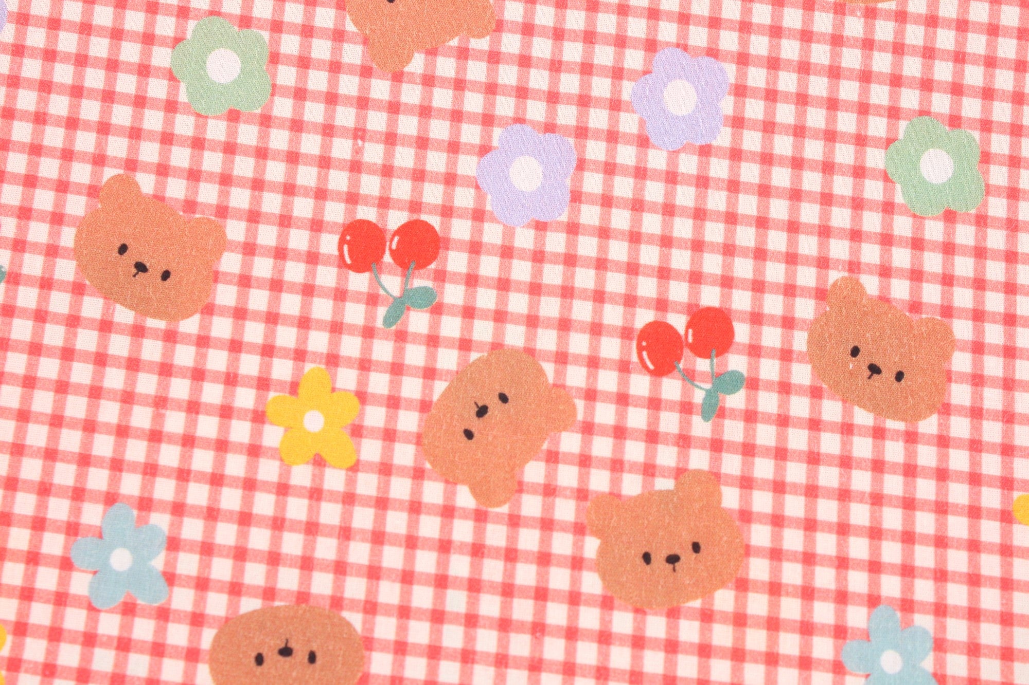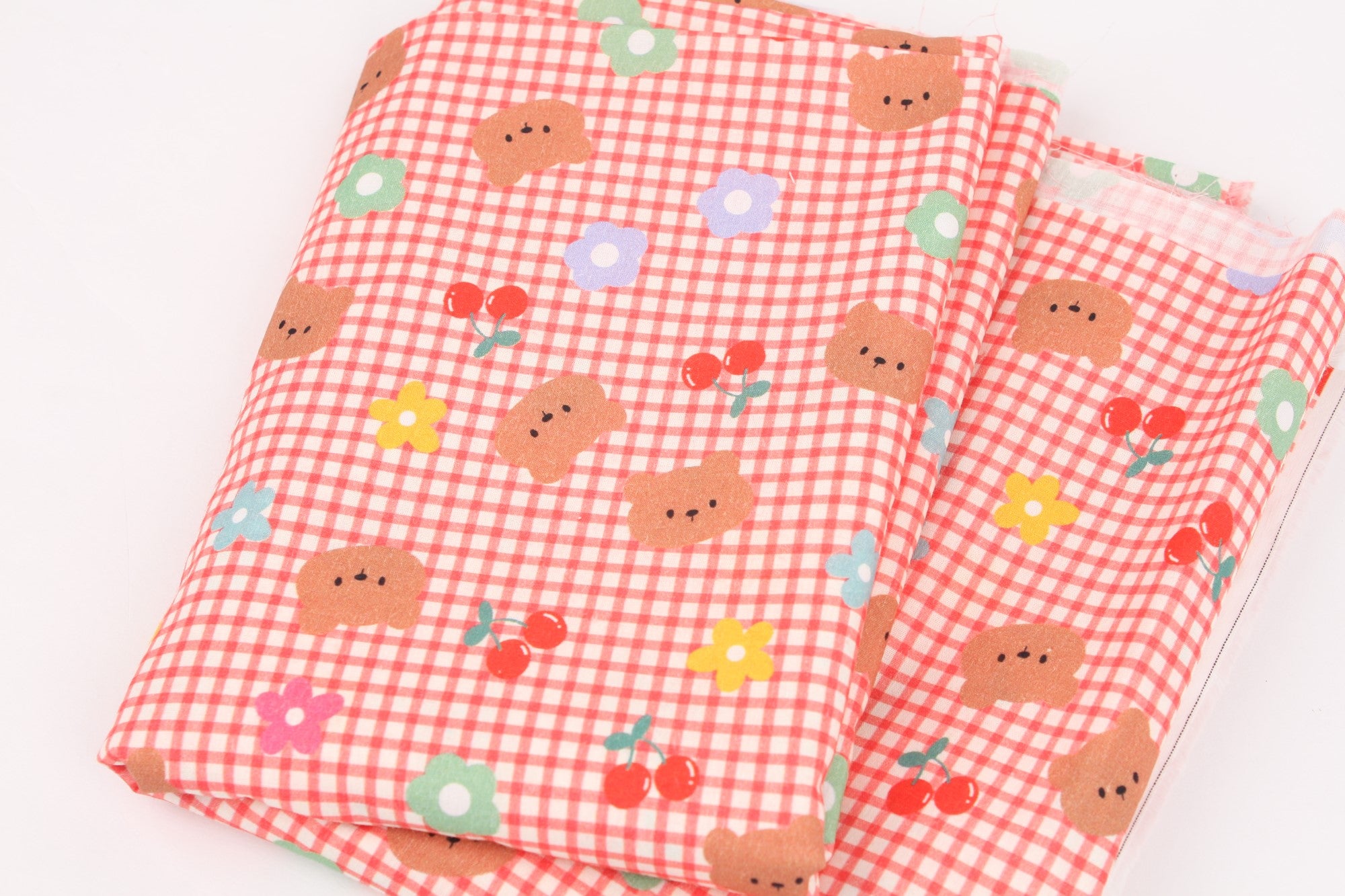小熊兔草莓圖案布料,可愛,兒童,縫紉,被子 - 韓國布料