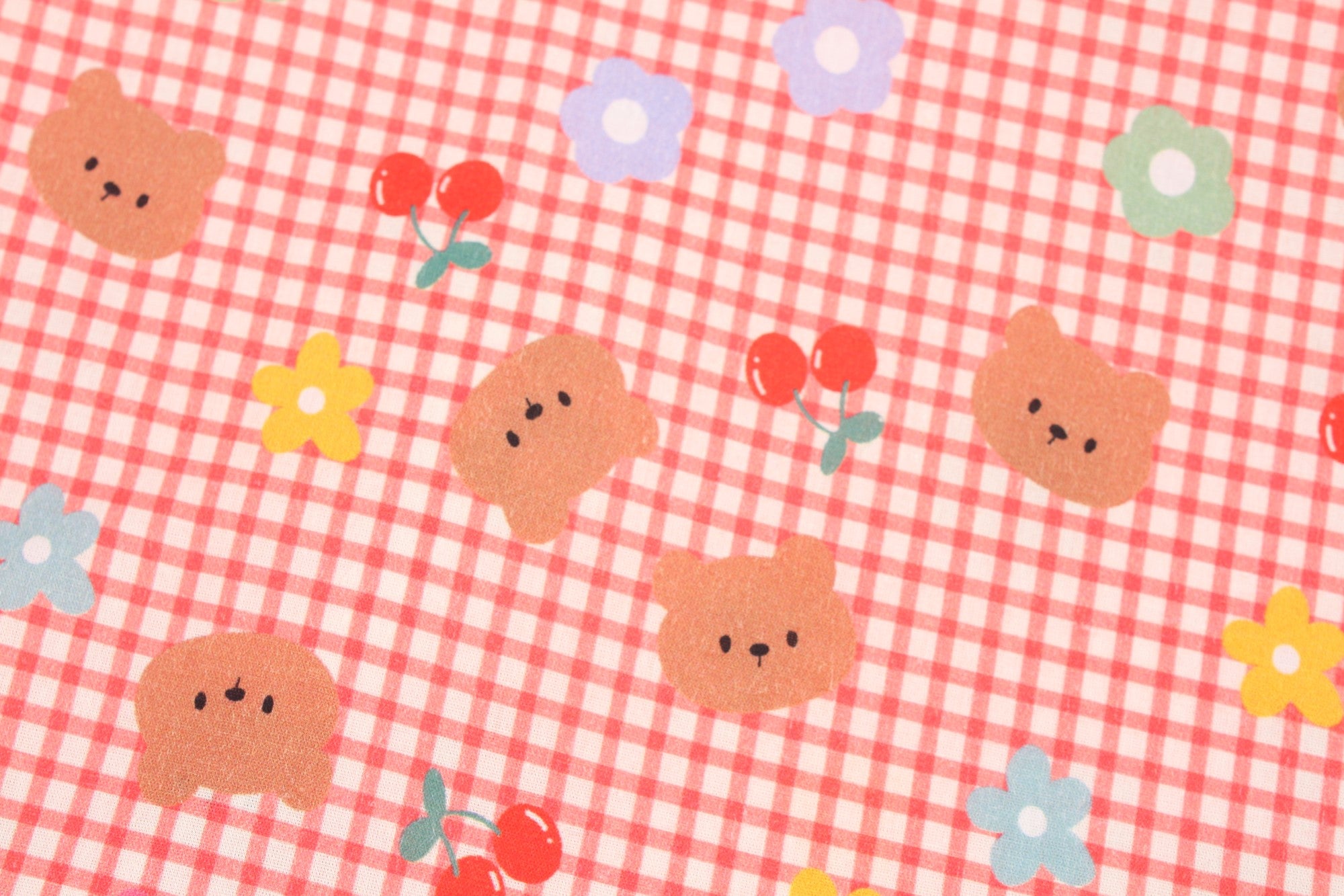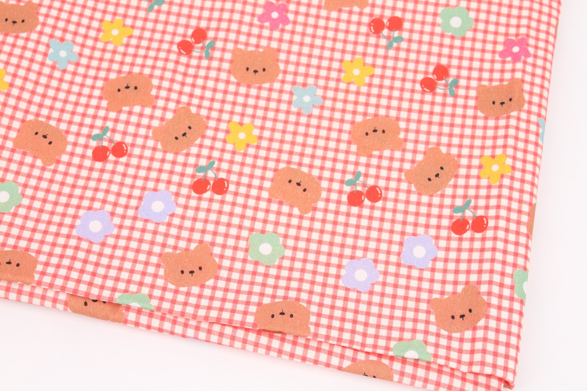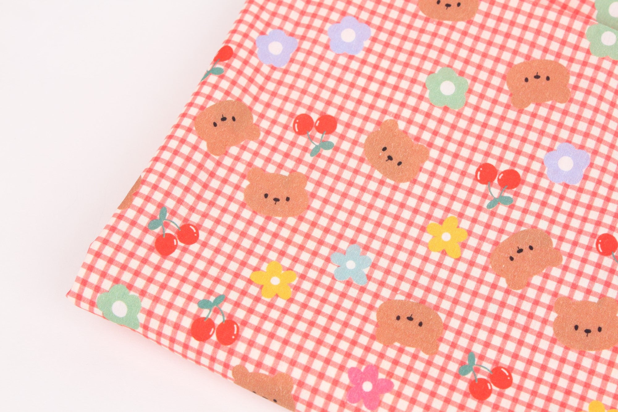 小熊兔草莓圖案布料,可愛,兒童,縫紉,被子 - 韓國布料