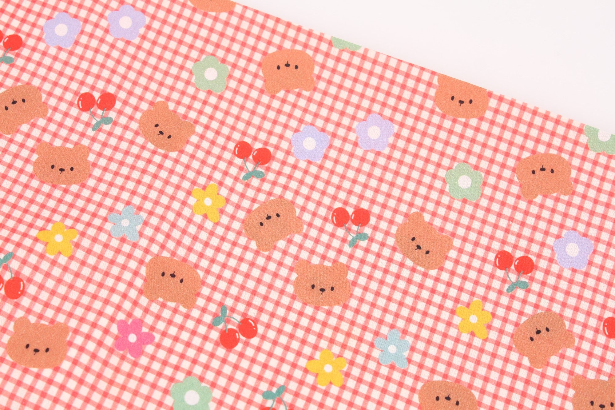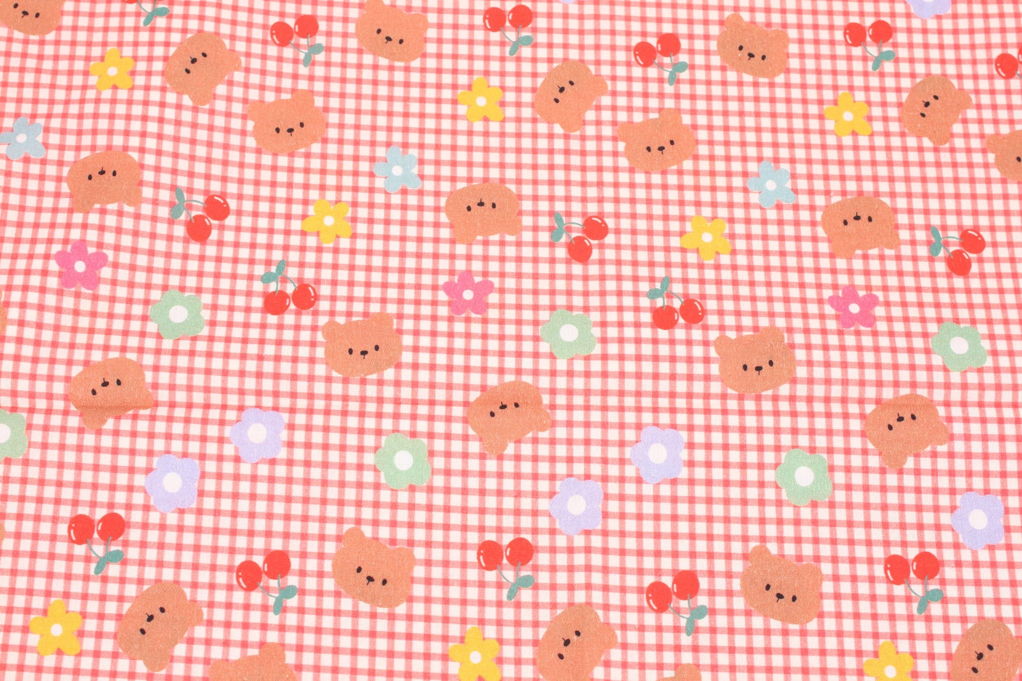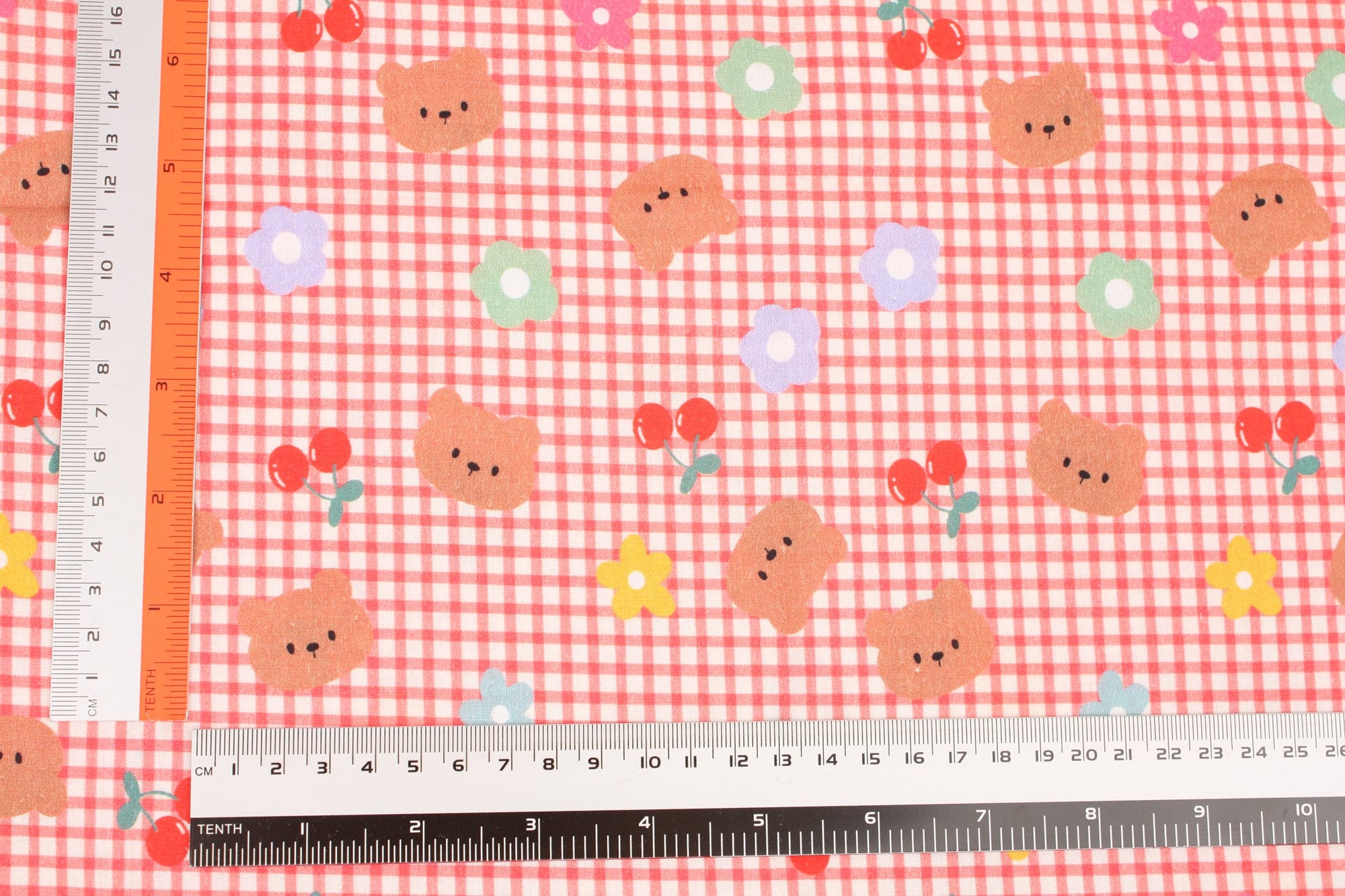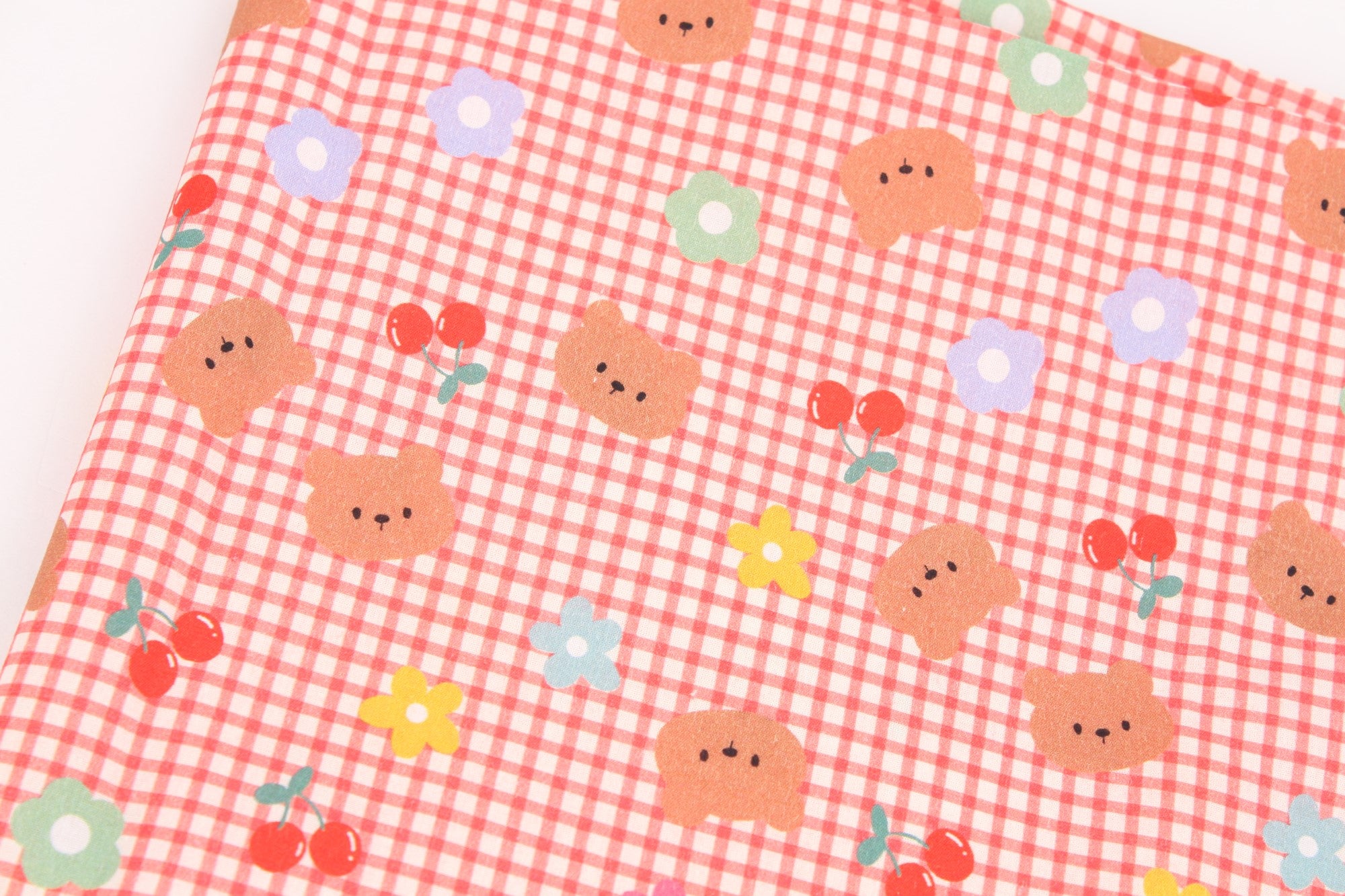 小熊兔草莓圖案布料,可愛,兒童,縫紉,被子 - 韓國布料