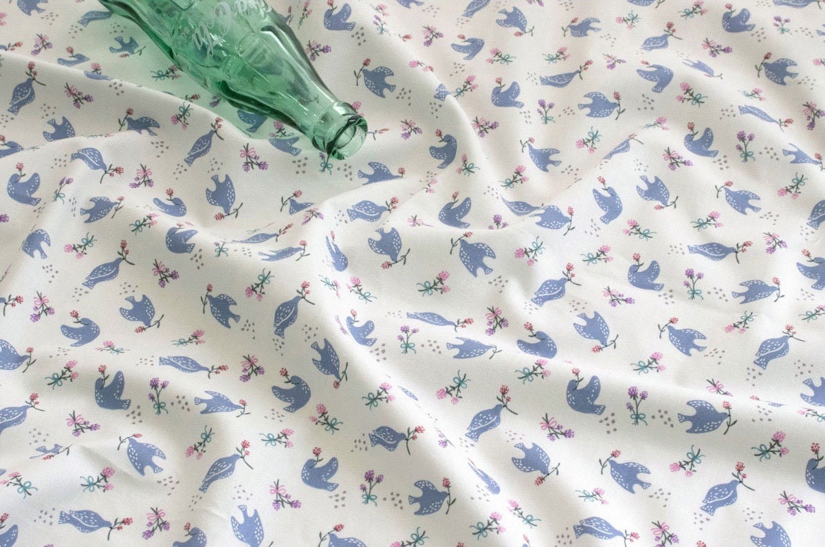 藍鳥圖案布料,可愛,兒童,縫紉,被子 - 韓國布料