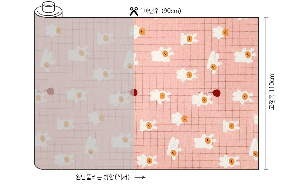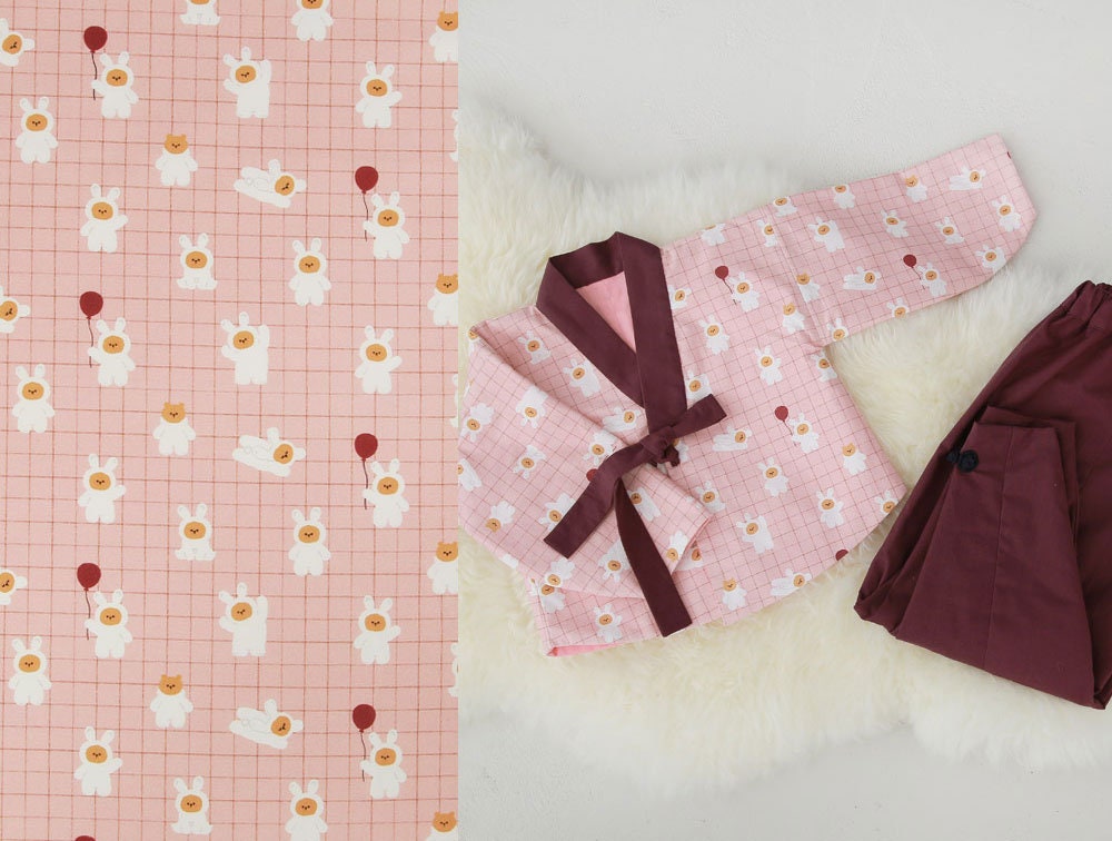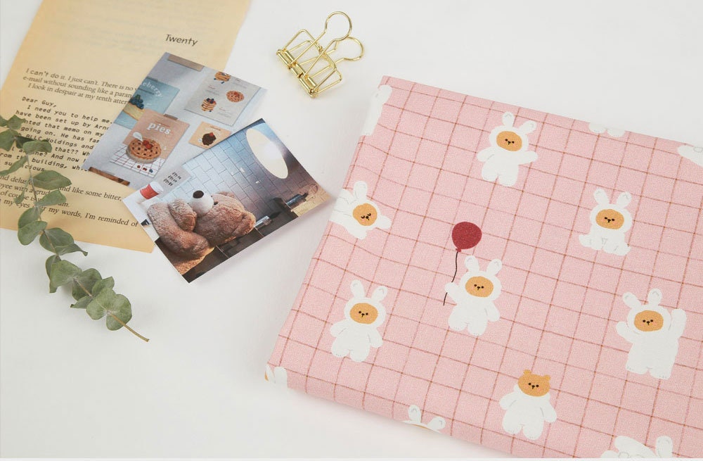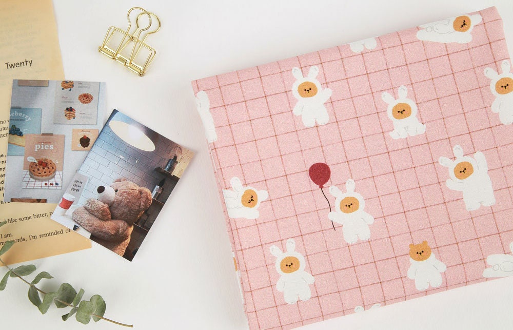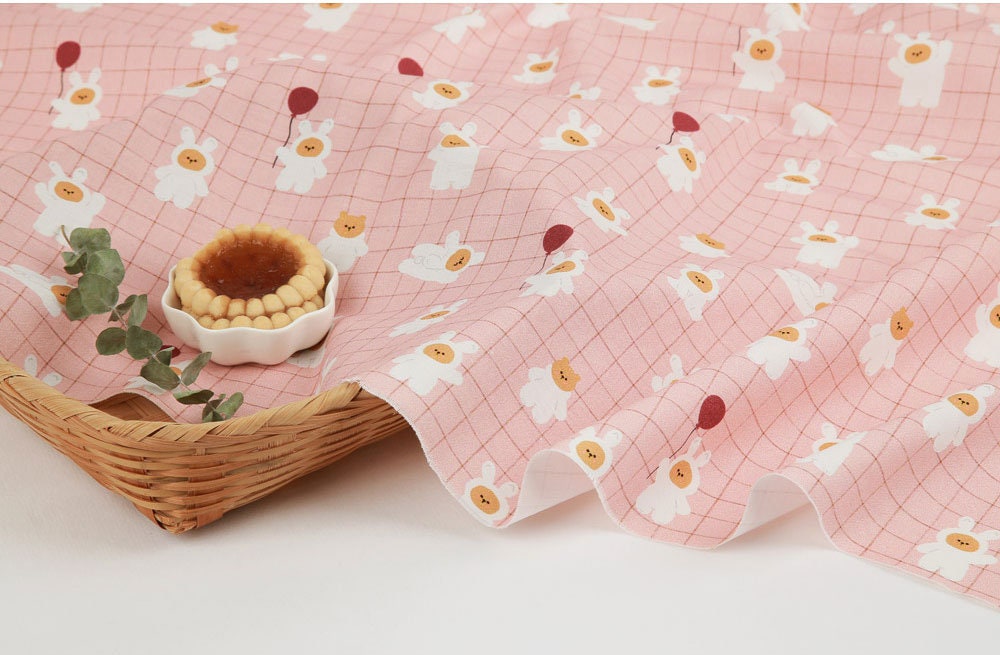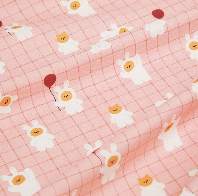 可愛熊兔兔子動物圖案布料,可愛,縫紉,被子 - 韓國布料