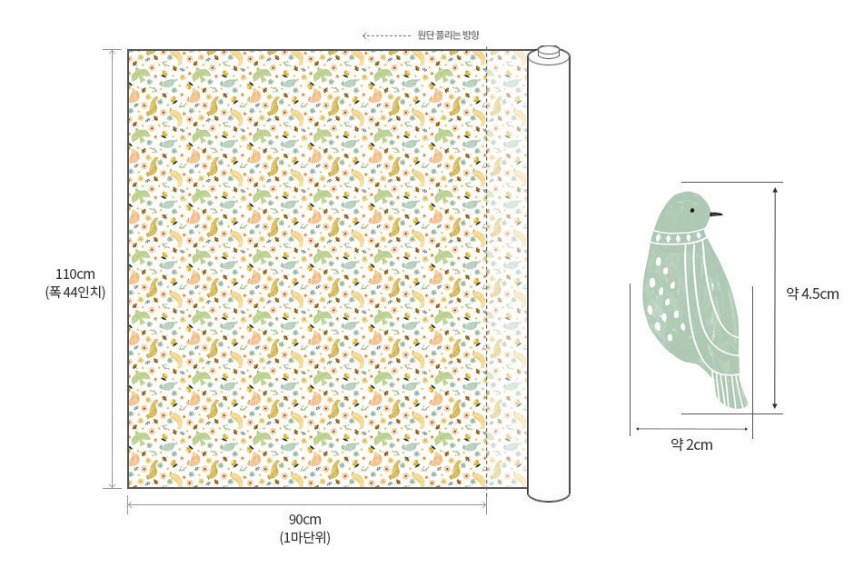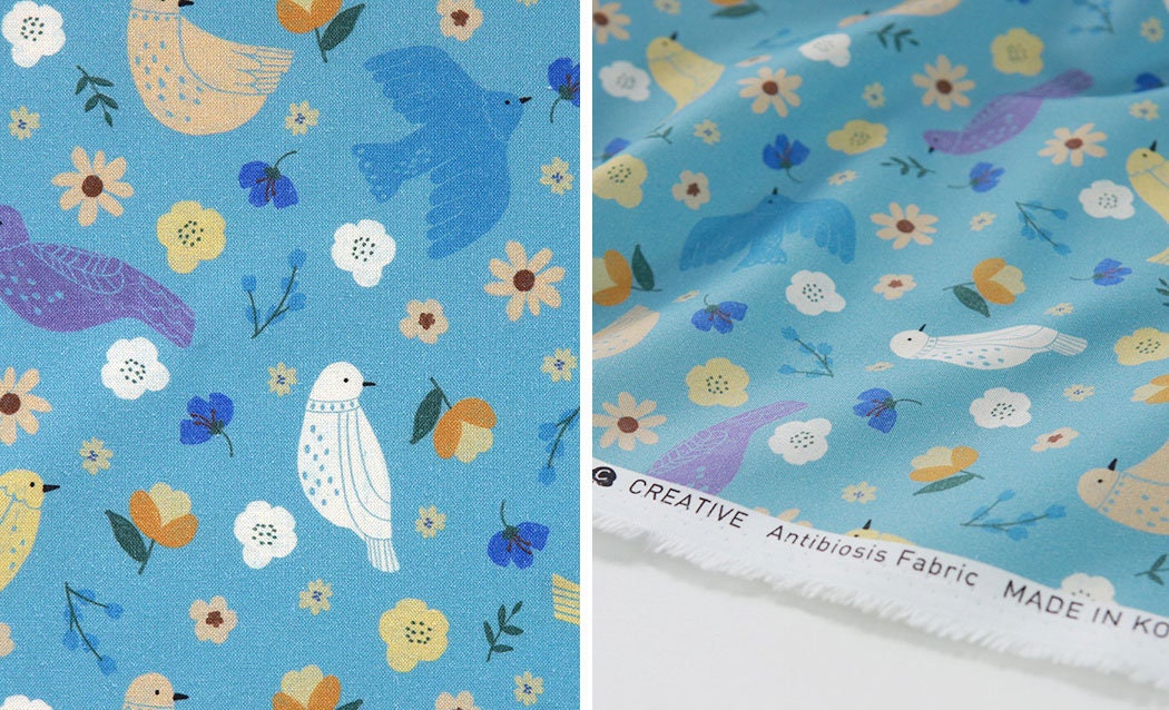 動物鳥圖案布料,可愛,縫紉,被子 - 韓國布料