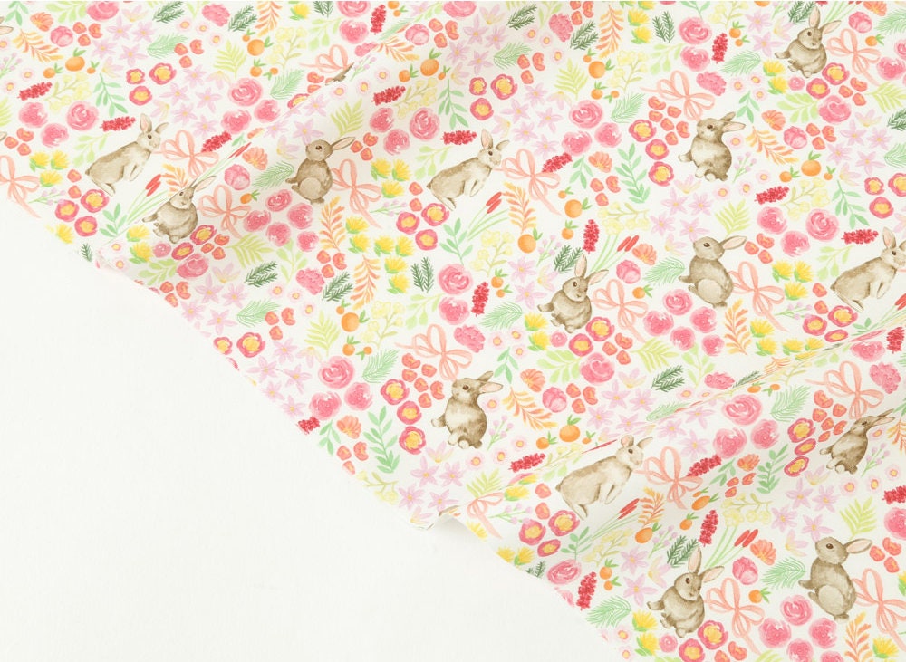兔子和鹿動物圖案布料,動物布料布料 - 韓國布料