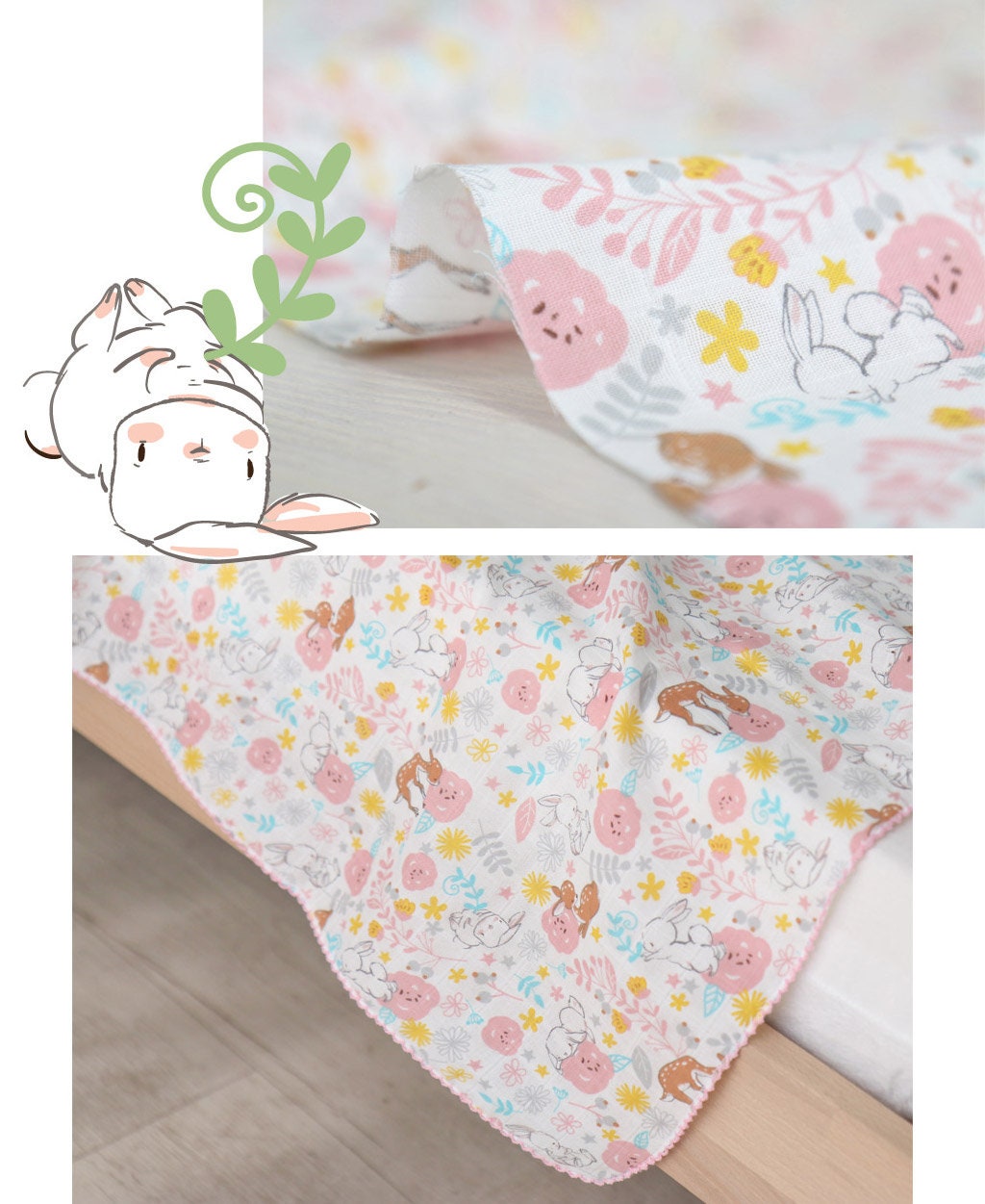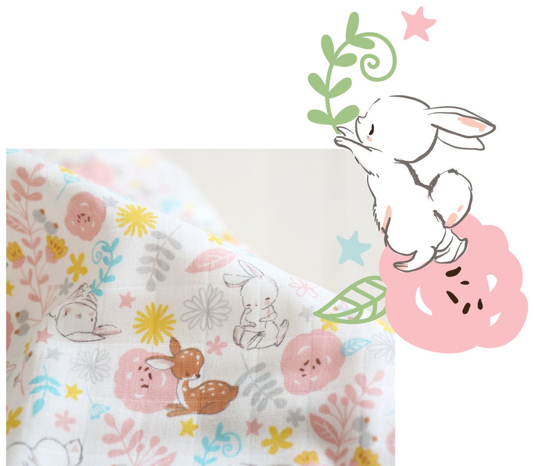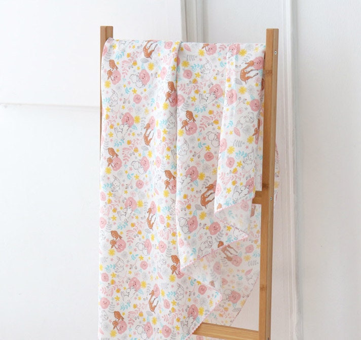 動物森林兔子兔子鹿圖案布料 - 韓國布料