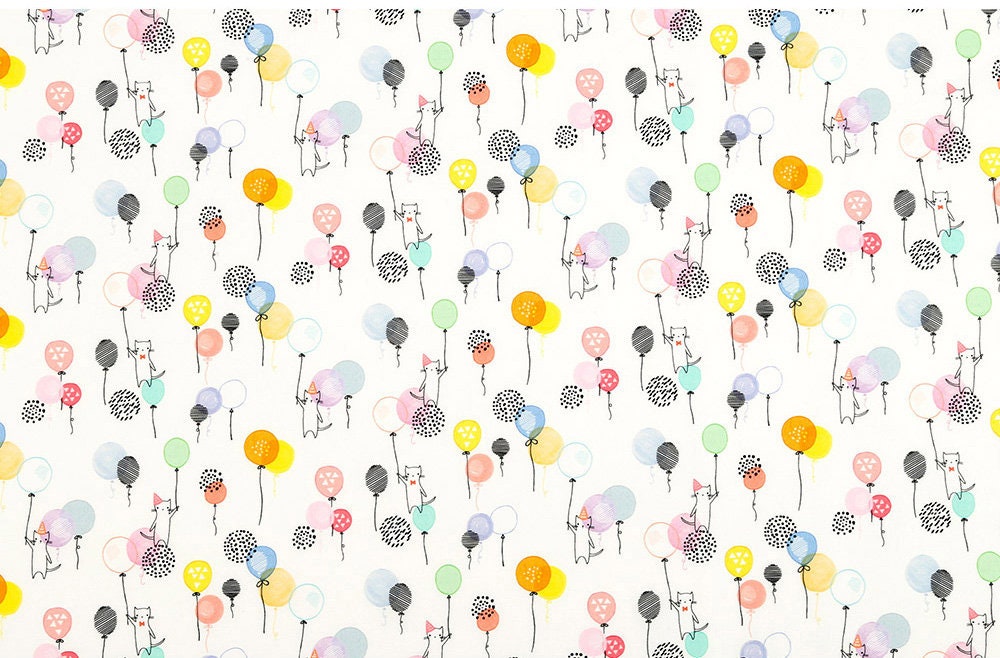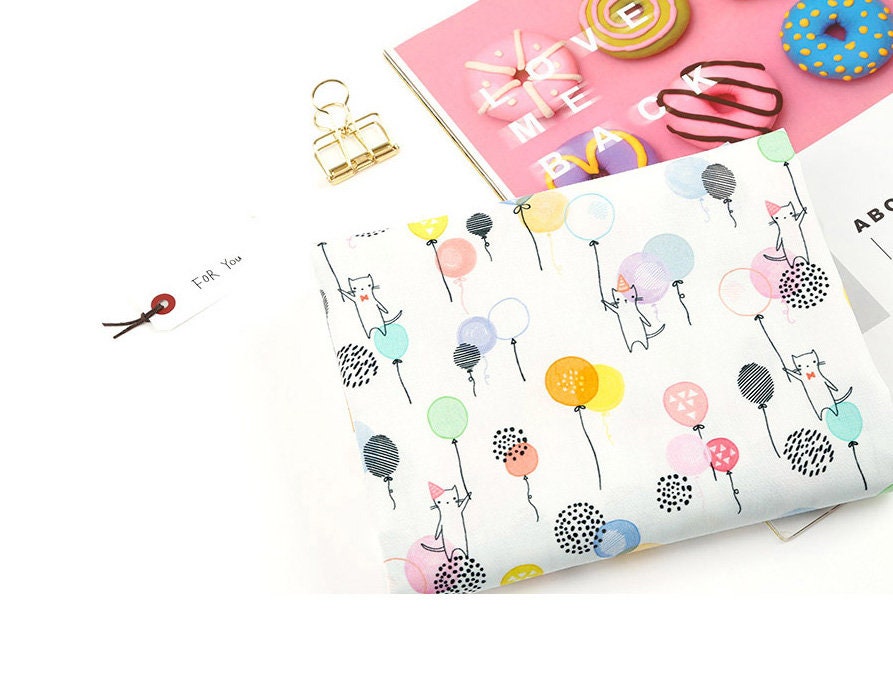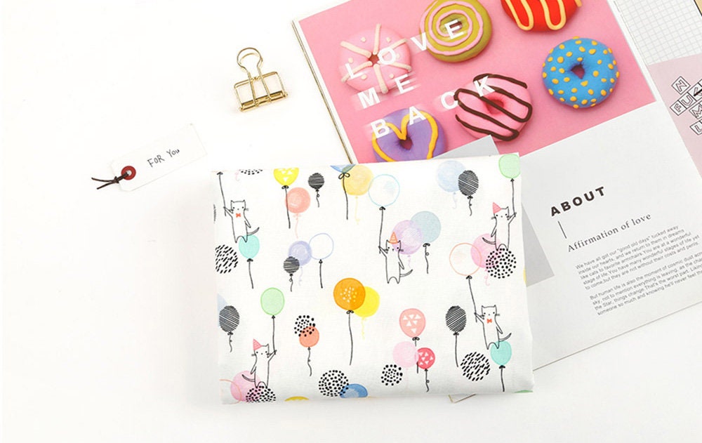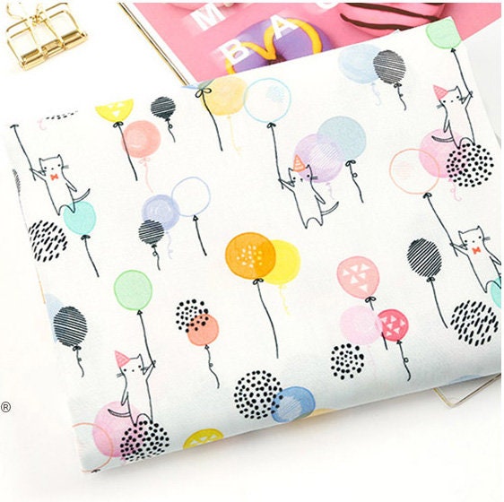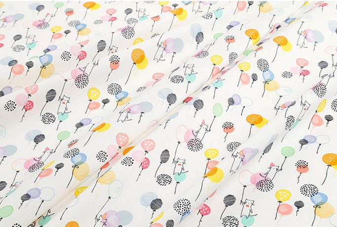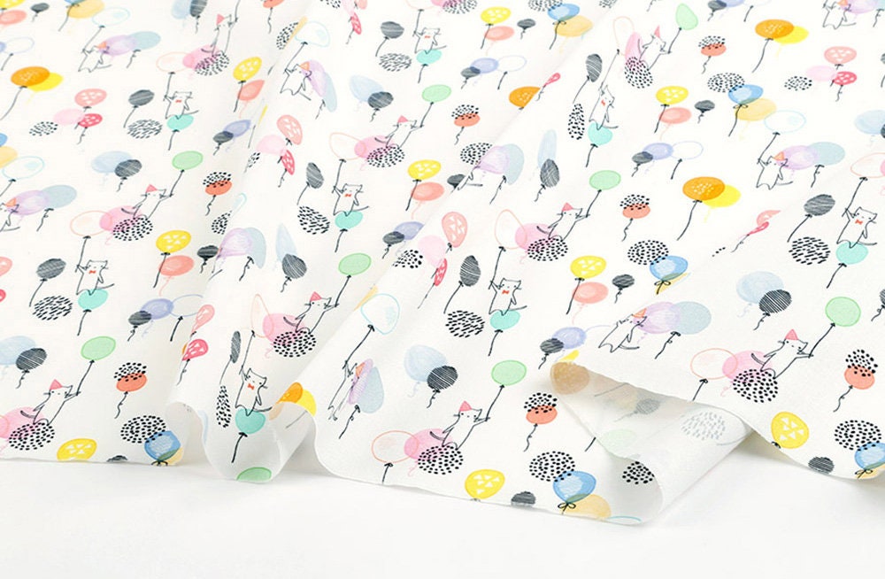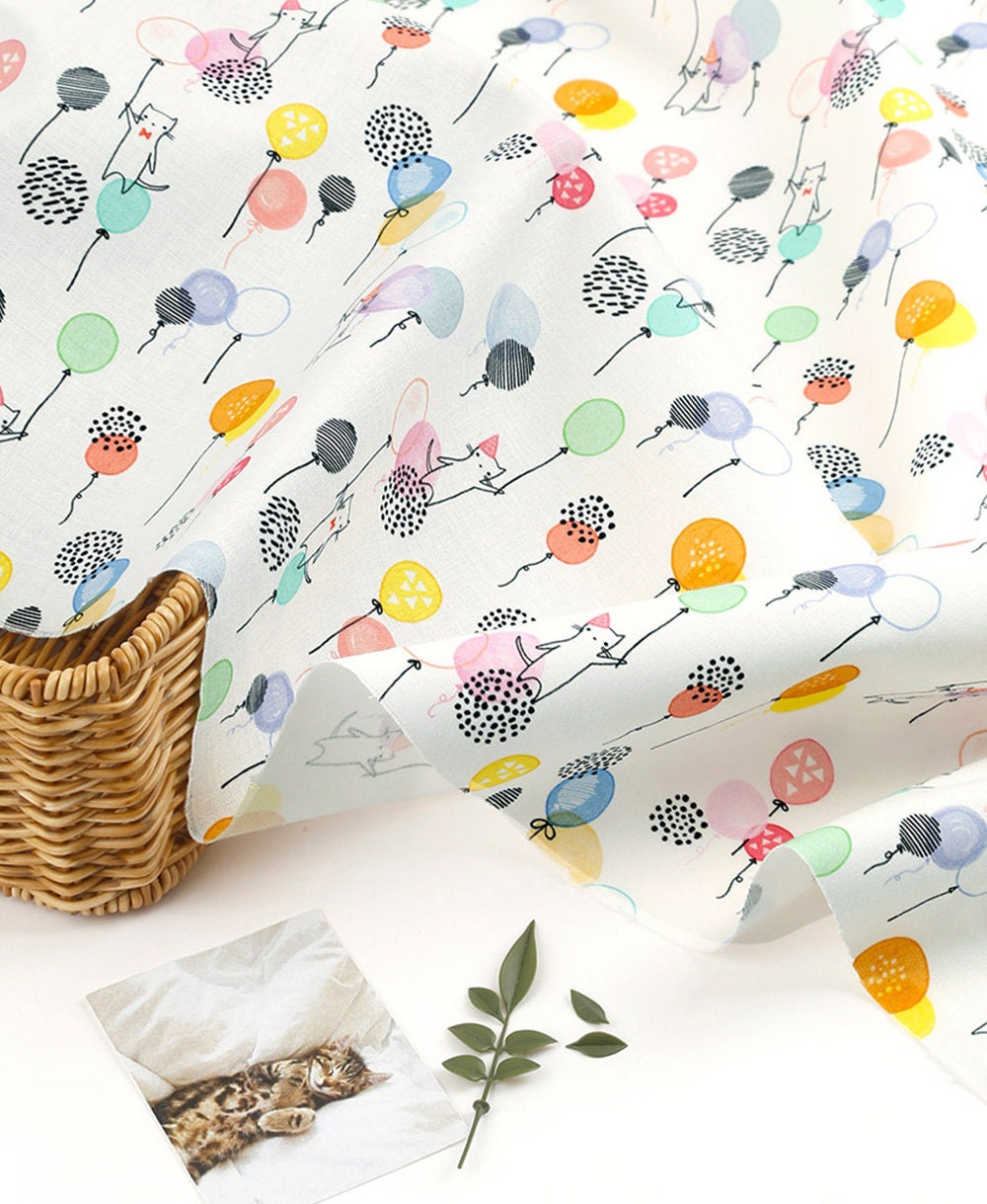 動物貓小貓飛行氣球圖案 - 韓國布料