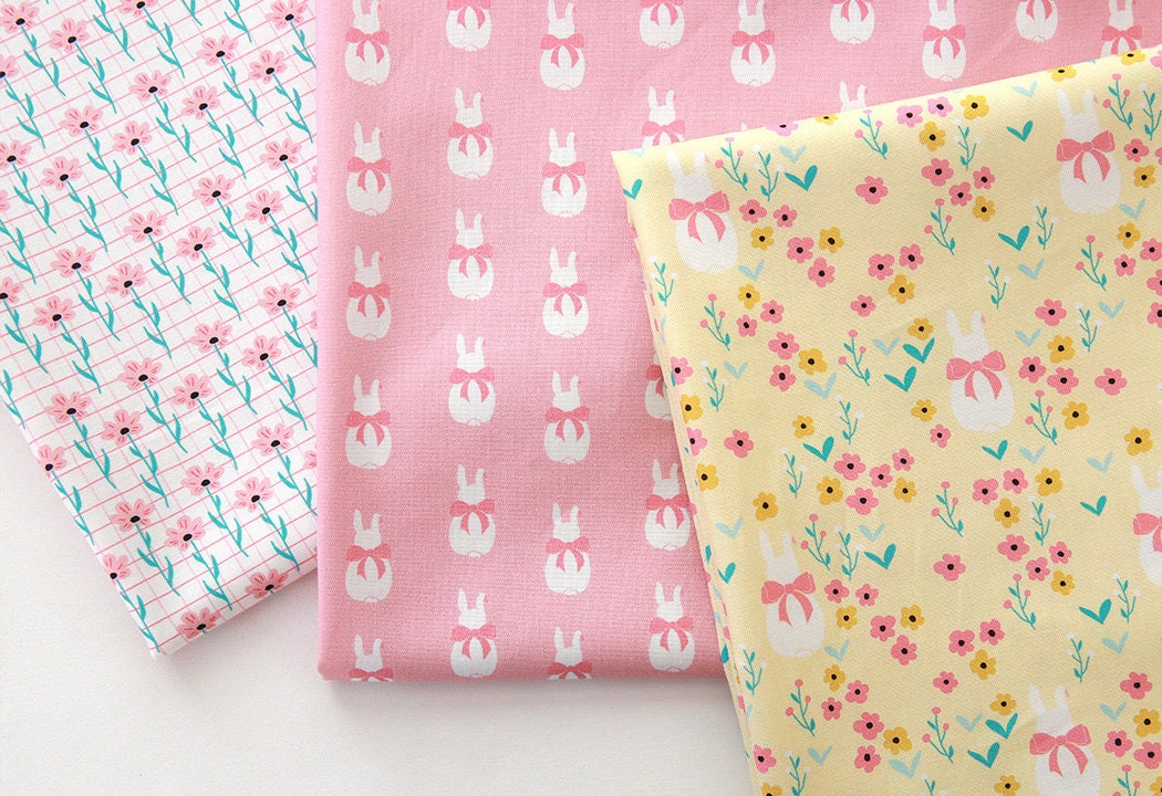 動物兔子兔子土地花園圖案布料 - 韓國布料