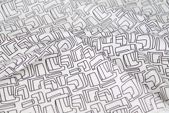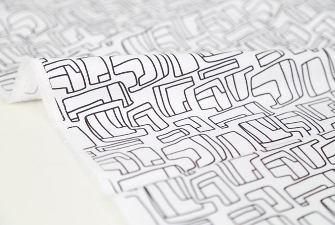 線條黑色圖案布料 - 韓國布料