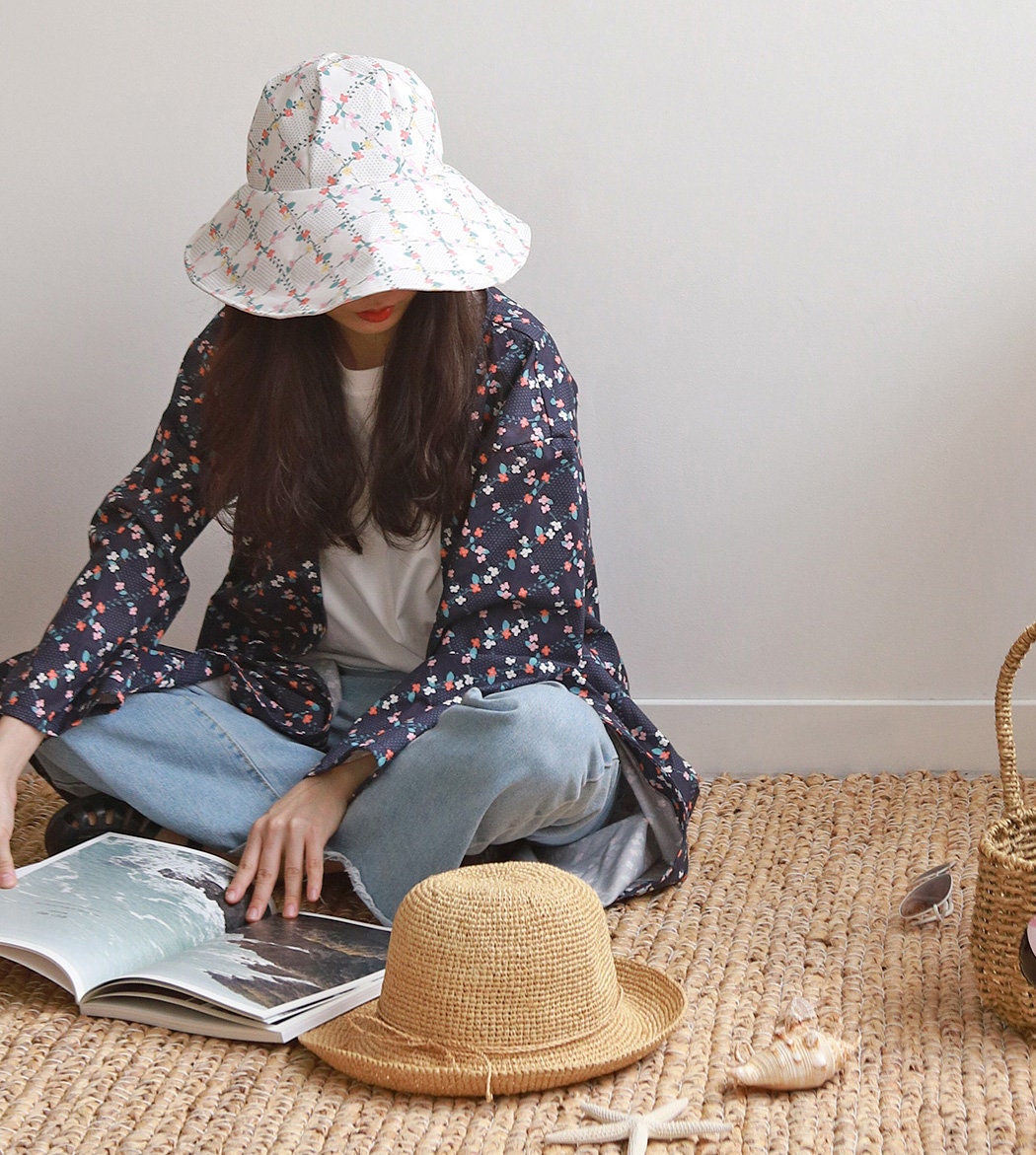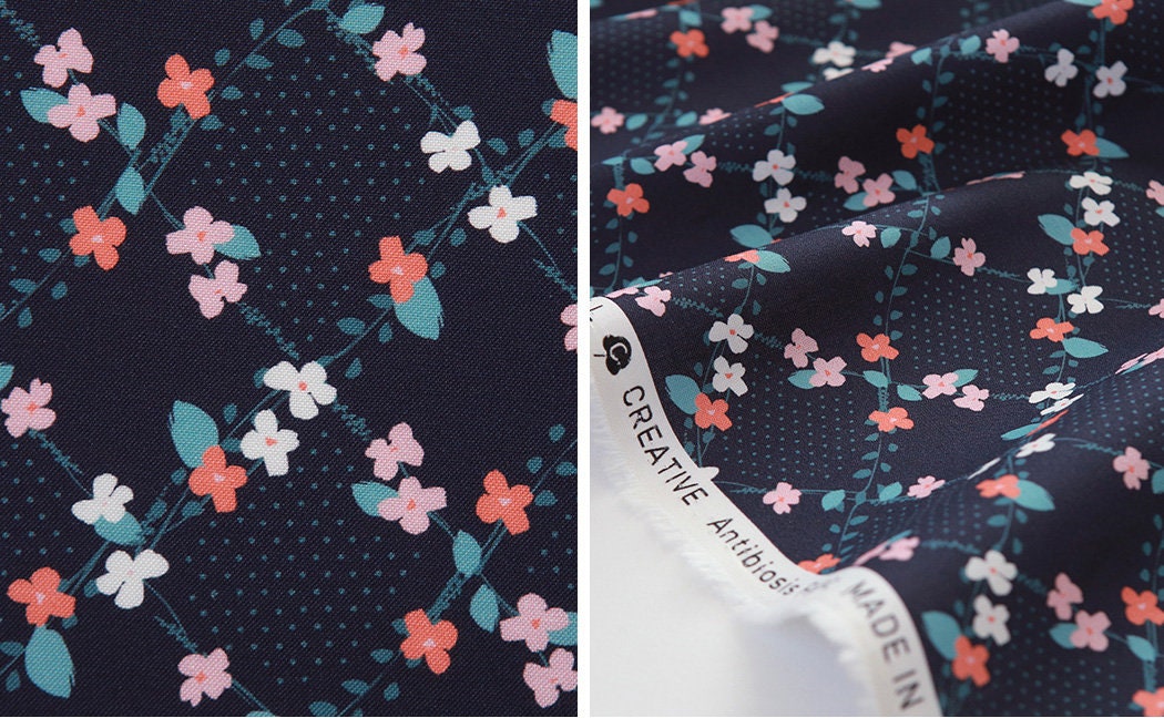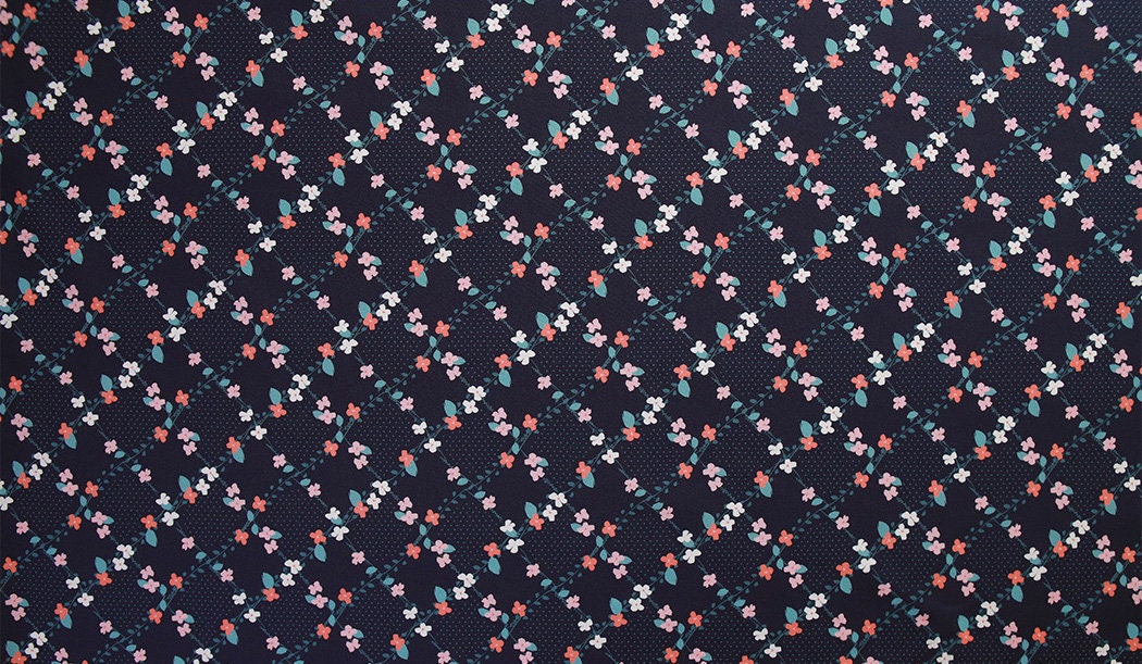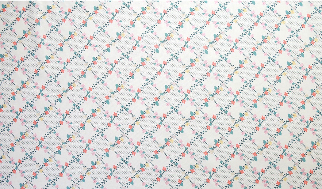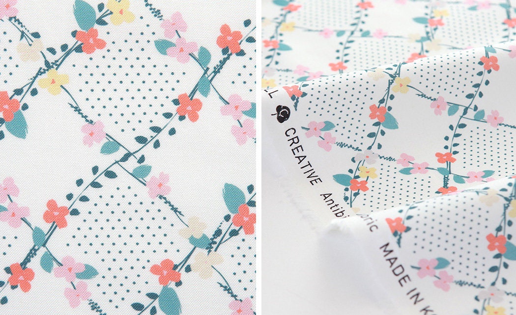 復古格子花卉圖案布料,可愛,縫紉,被子 - 韓國布料
