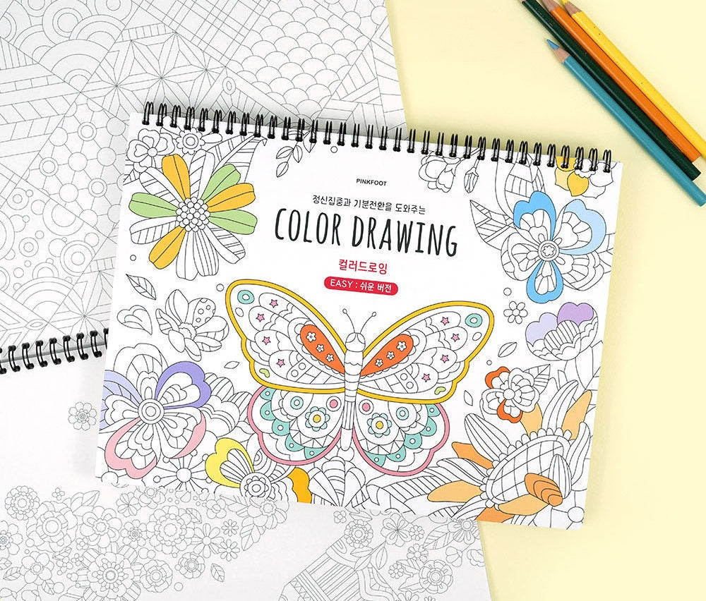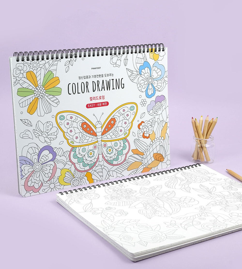 螺旋筆記本著色本 - 韓國彩色繪圖書簡易版