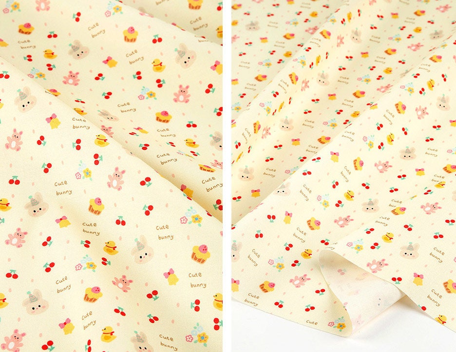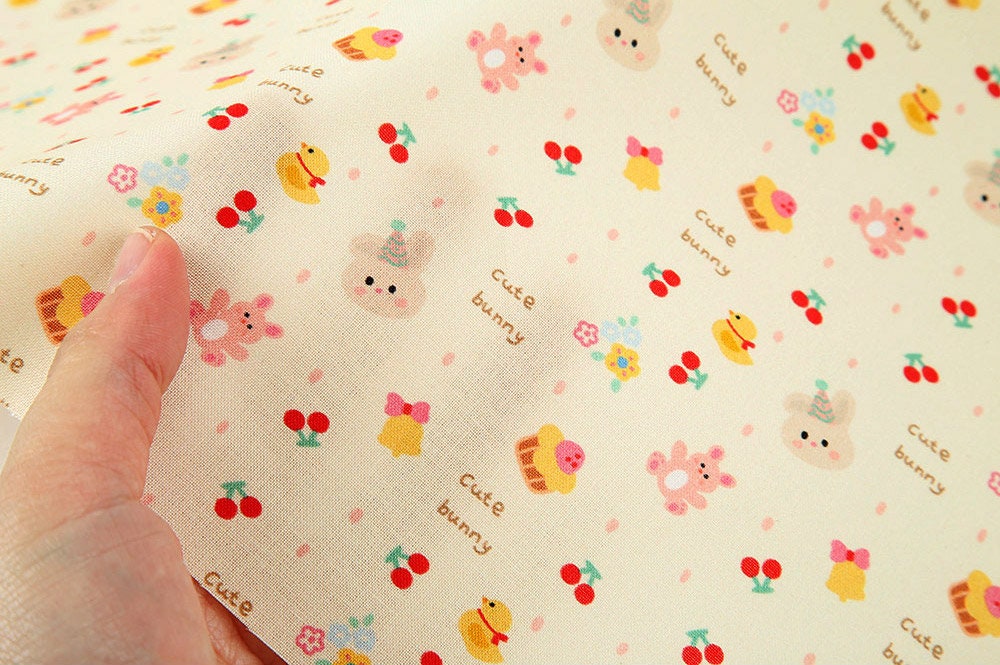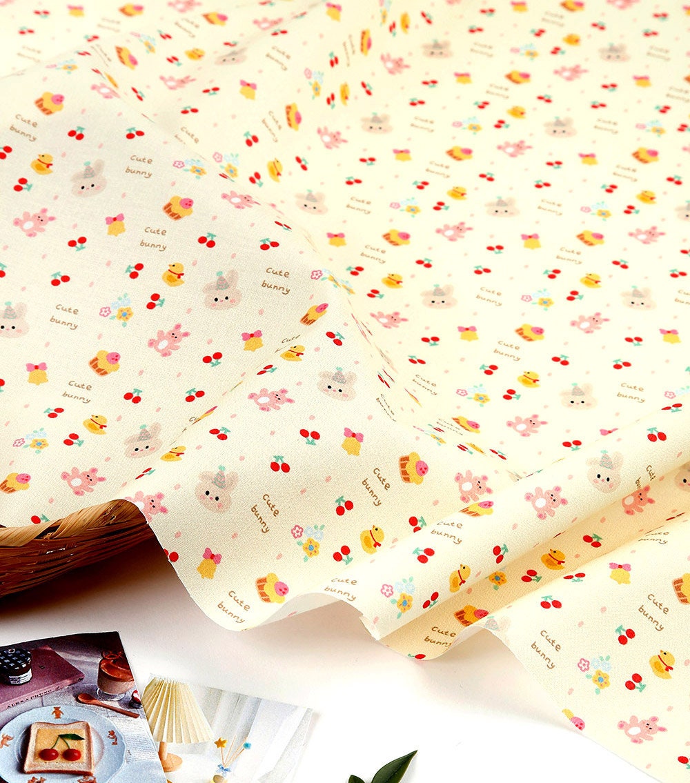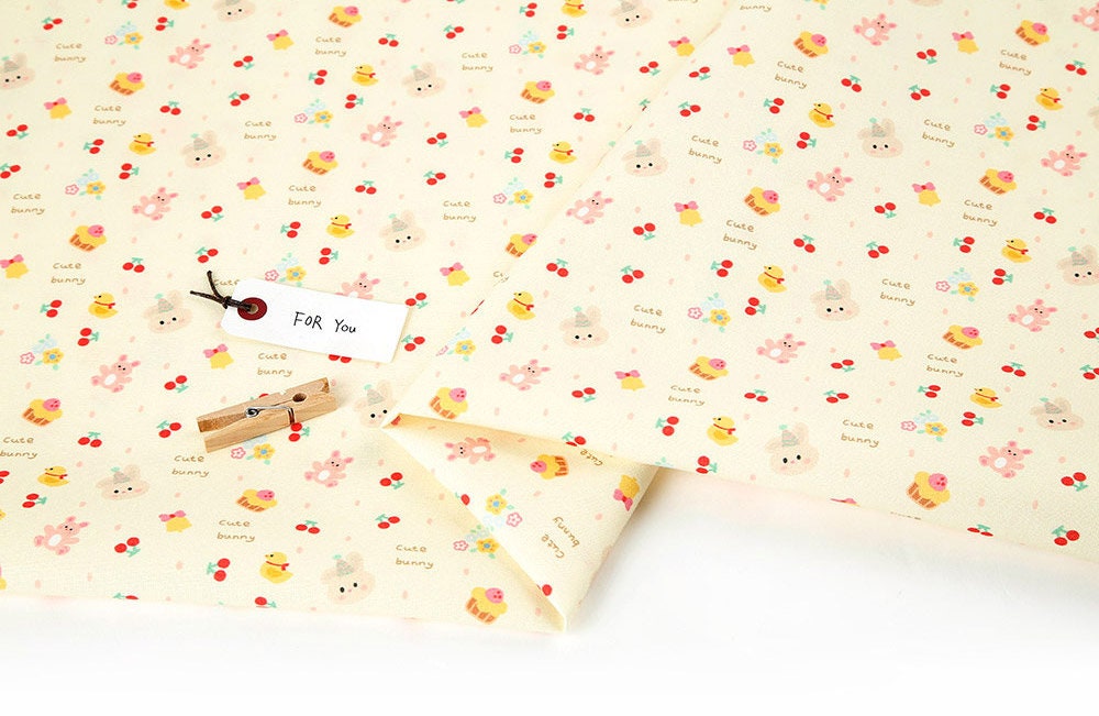 甜美可愛的兔子圖案布料,可愛,兒童,縫紉,被子 - 韓國布料