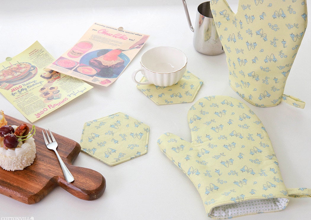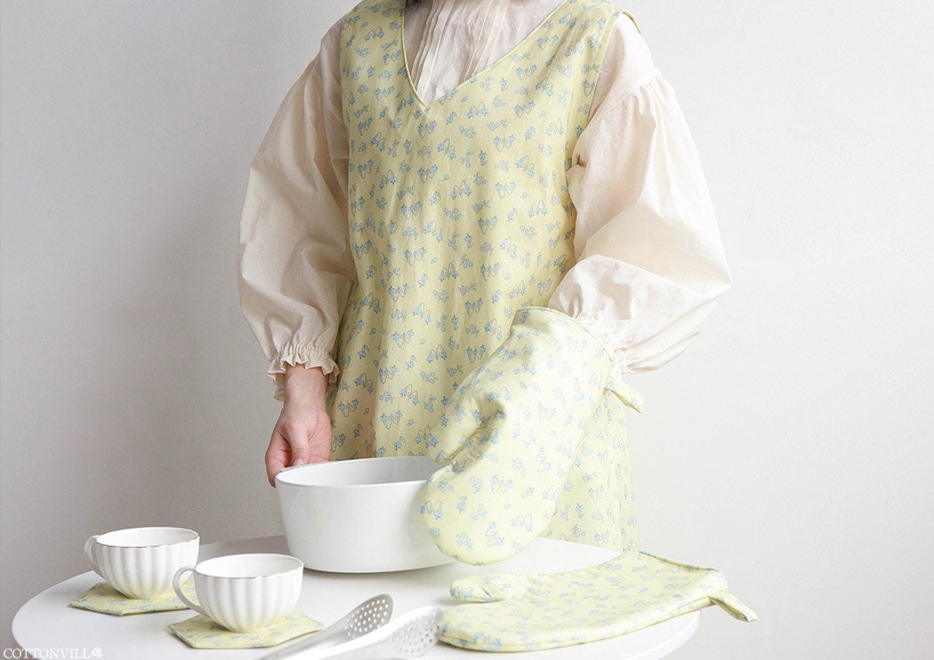有機 30 年代 Bebe 檸檬花卉花園圖案面料 - 韓國面料