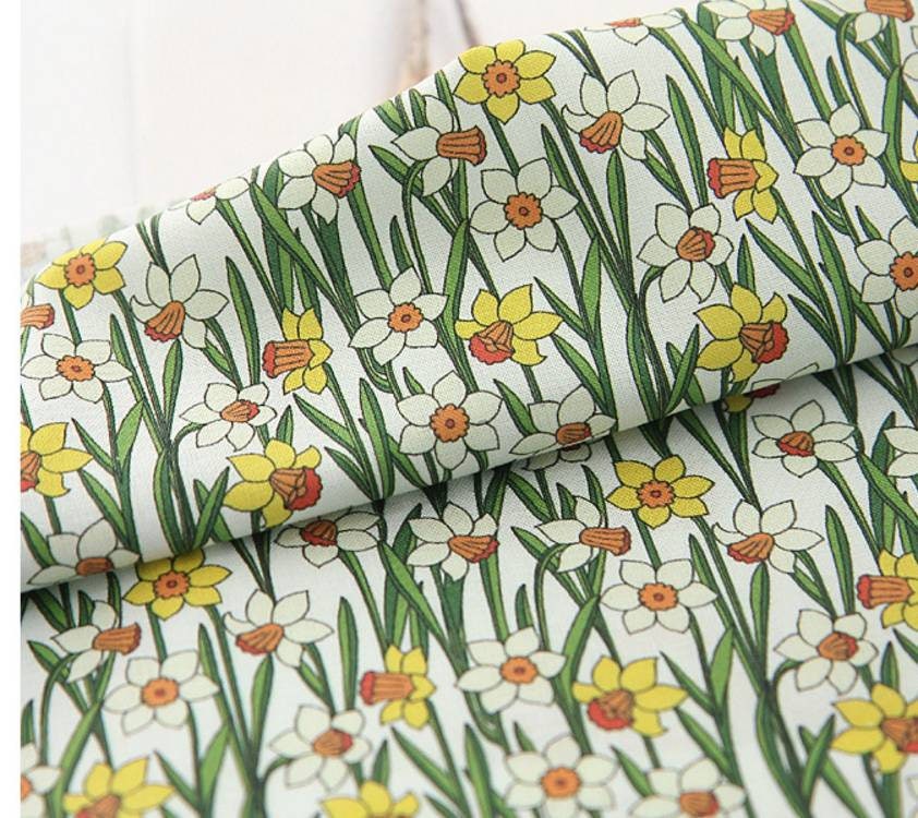 水仙水仙花圖案布料,可愛,縫紉,被子 - 韓國布料