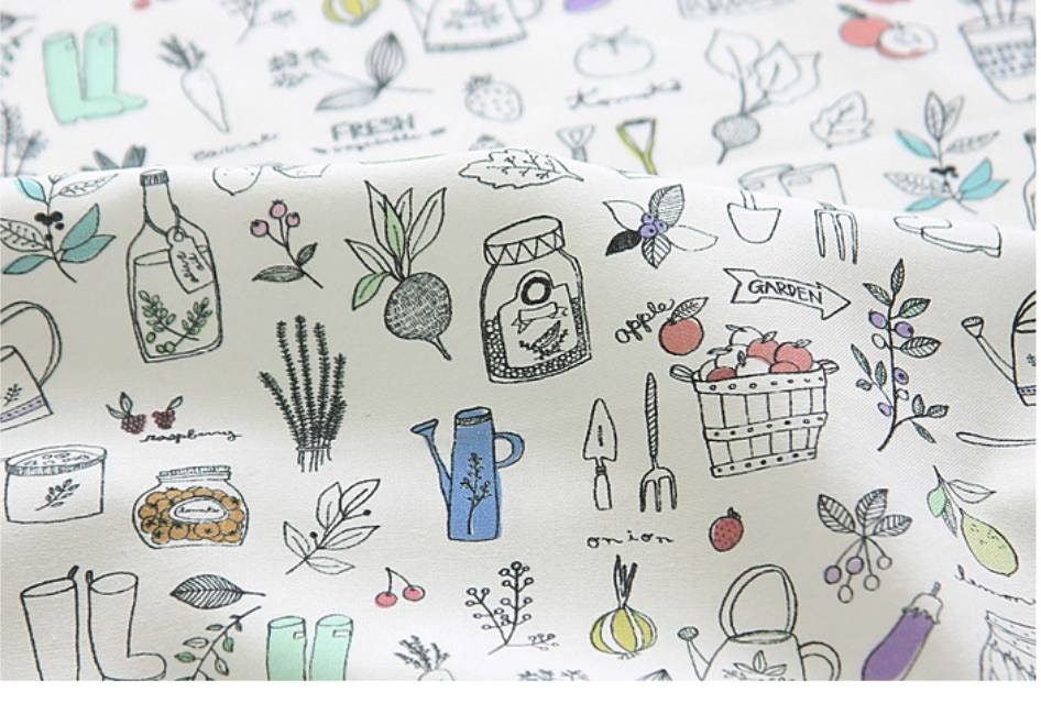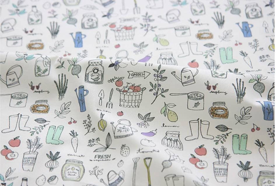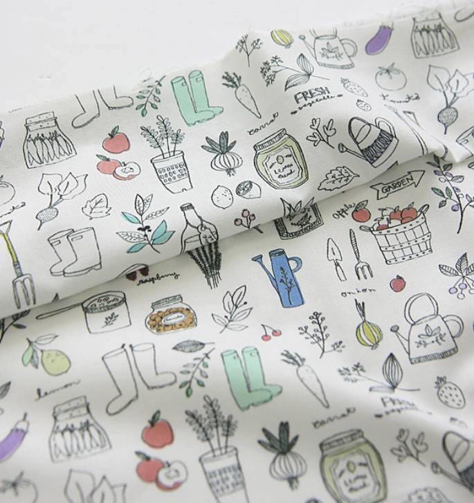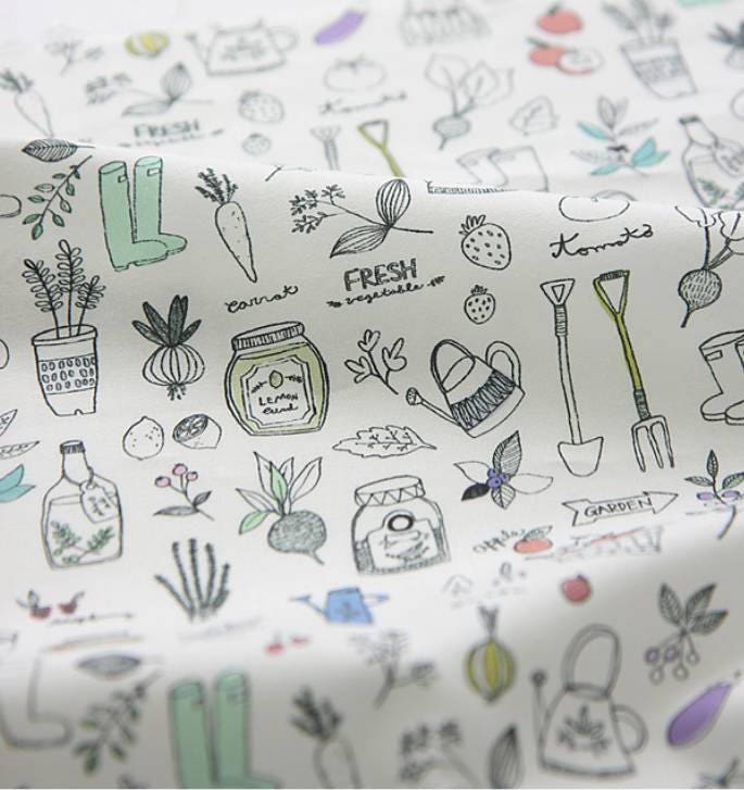 農場蔬菜圖案布料,可愛,兒童,縫紉,被子 - 韓國布料