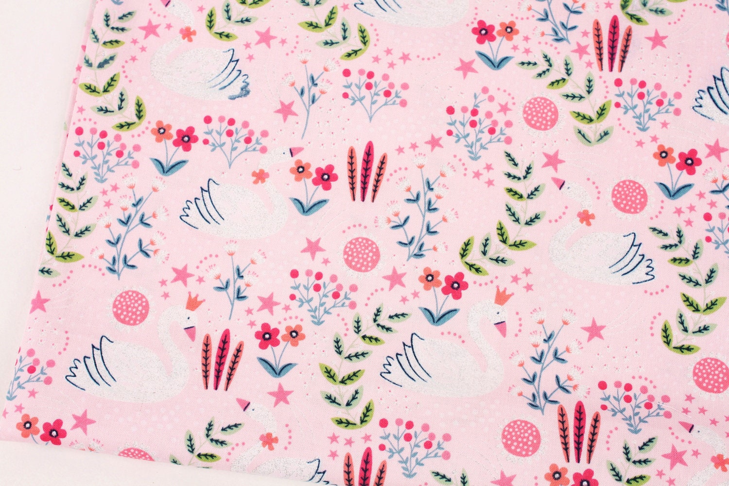 閃光天鵝印花布料